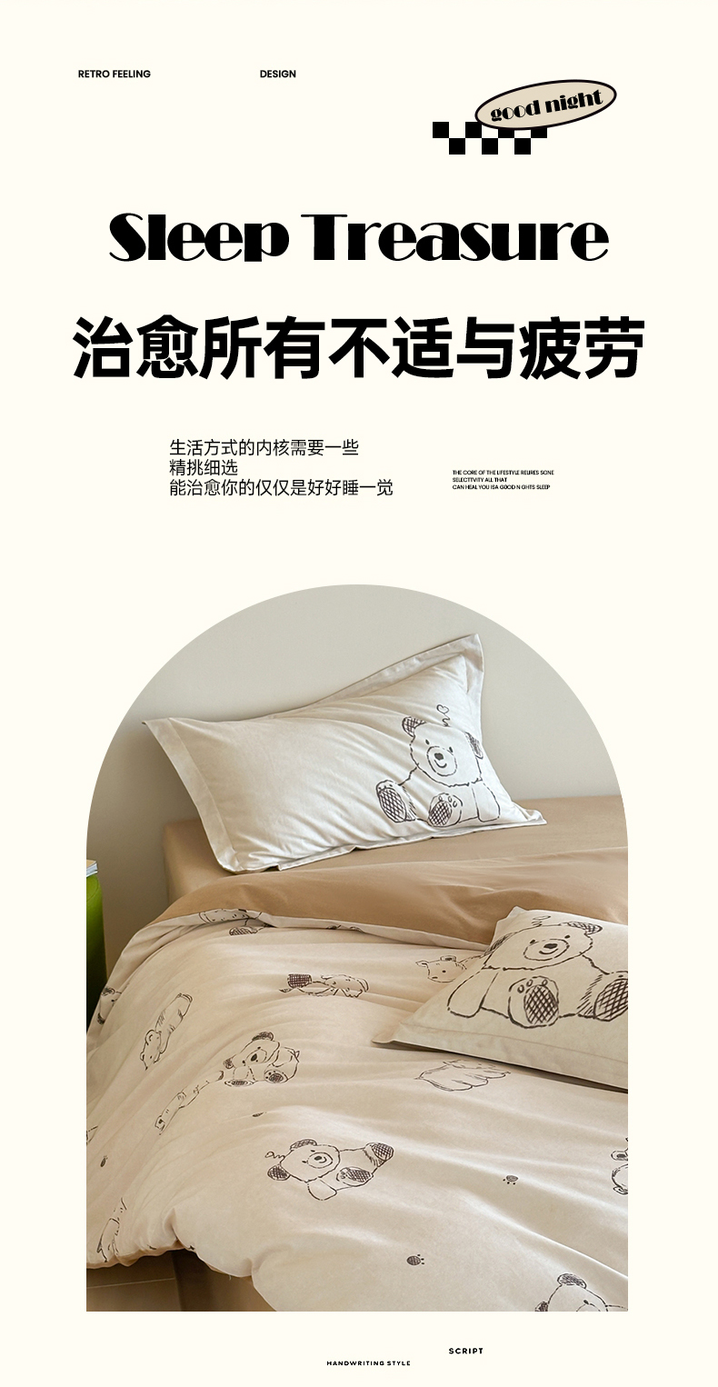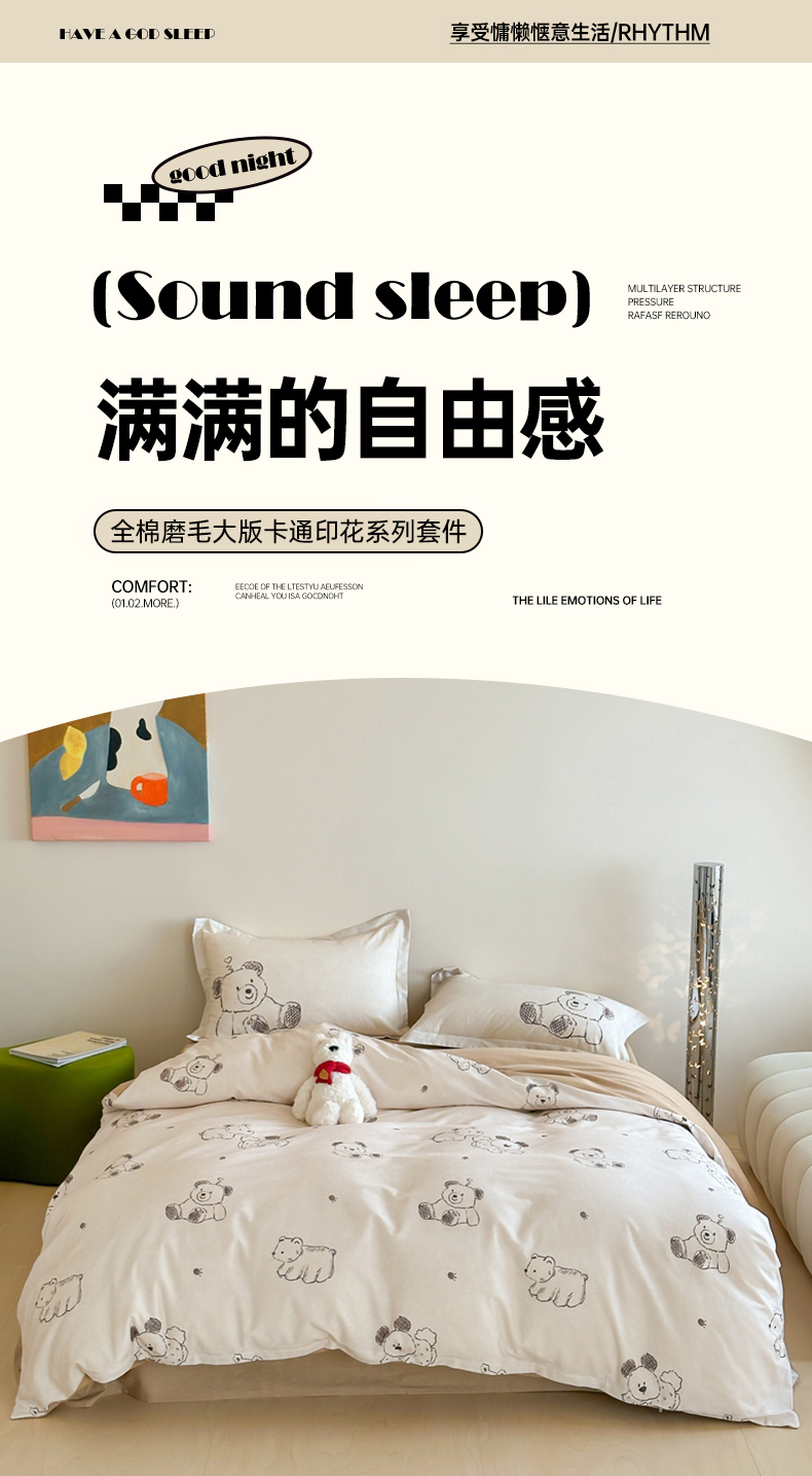 时年家纺 2025新款全棉磨毛大版卡通印花系列套件 趣味熊