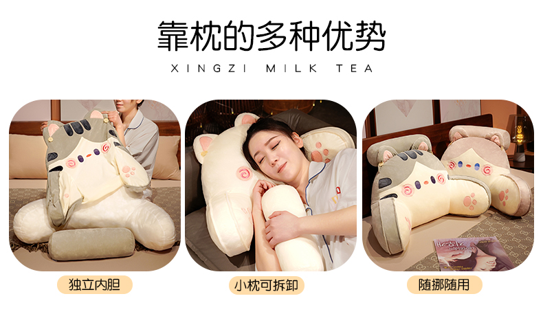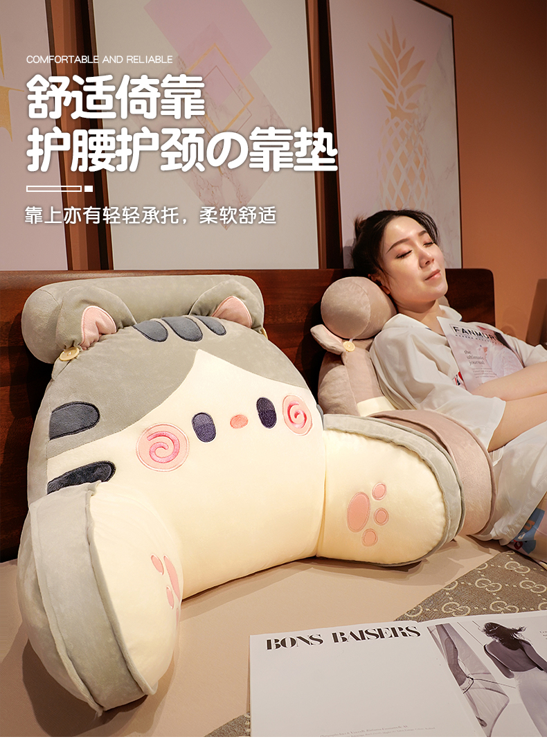 商品名称:仟亿莱 2025新款超柔水晶绒铃铛猫拥抱式腰靠 拥抱灰猫