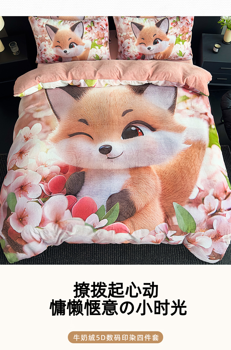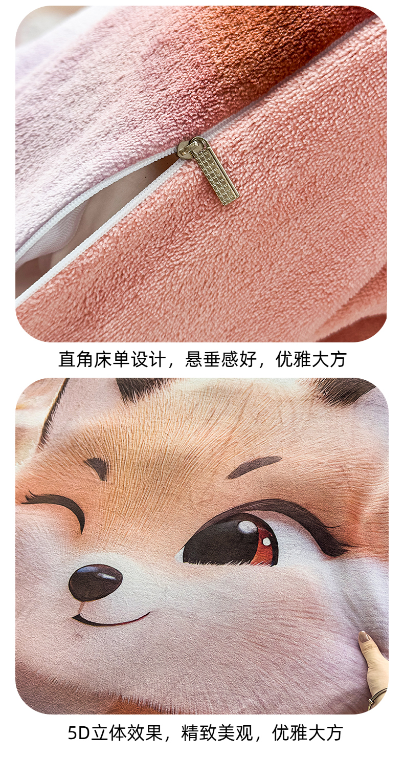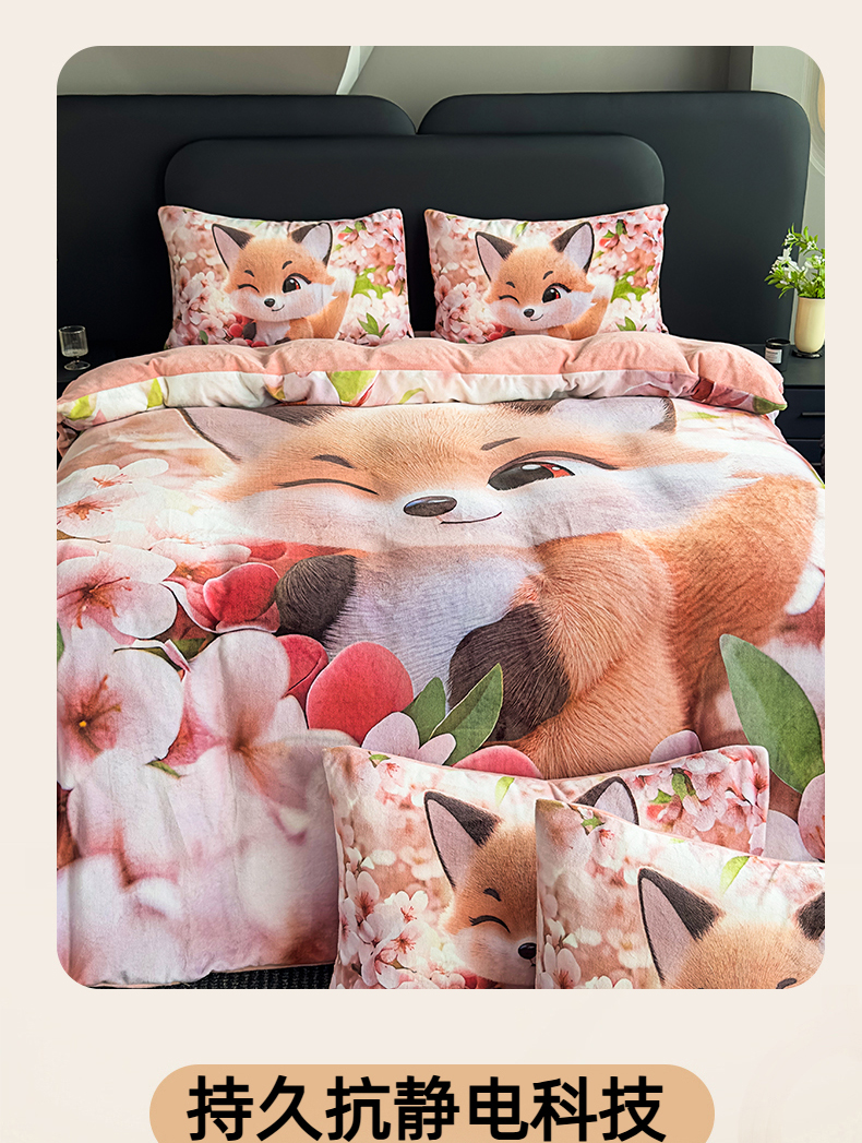 当前位置: 91家纺网 > 商品网购 > 床品套件 > 四件套 > 法莱绒四件套 > 宝薇 2025新款5D数码印染大卡通牛奶绒四件套 阿狸