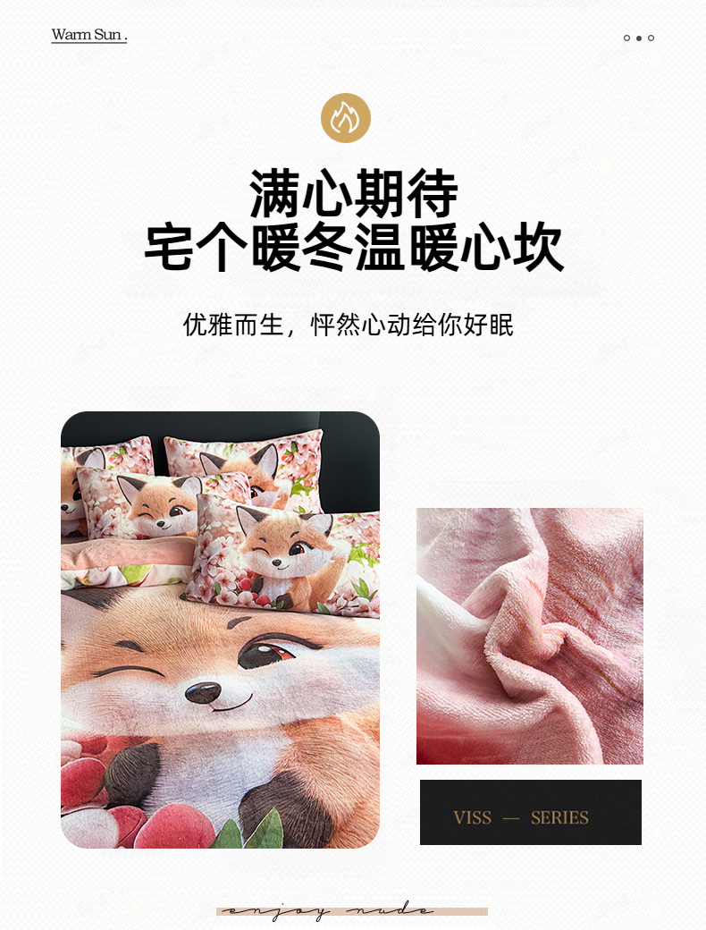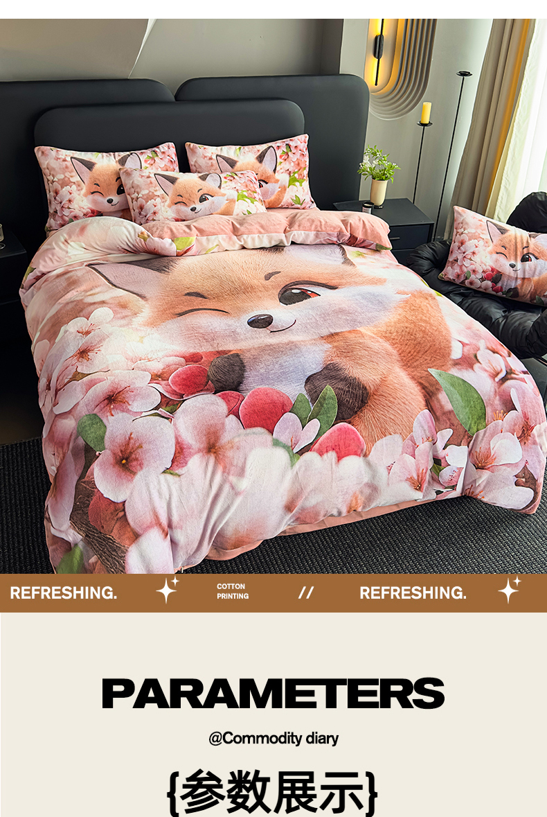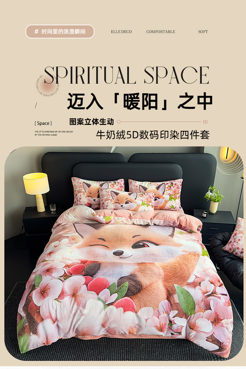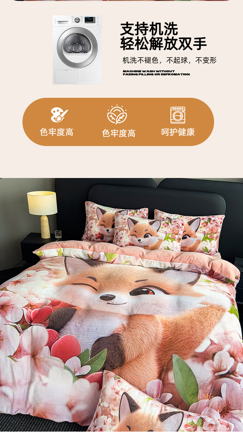 当前位置: 91家纺网 > 商品网购 > 床品套件 > 四件套 > 法莱绒四件套 > 宝薇 2025新款5D数码印染大卡通牛奶绒四件套 阿狸