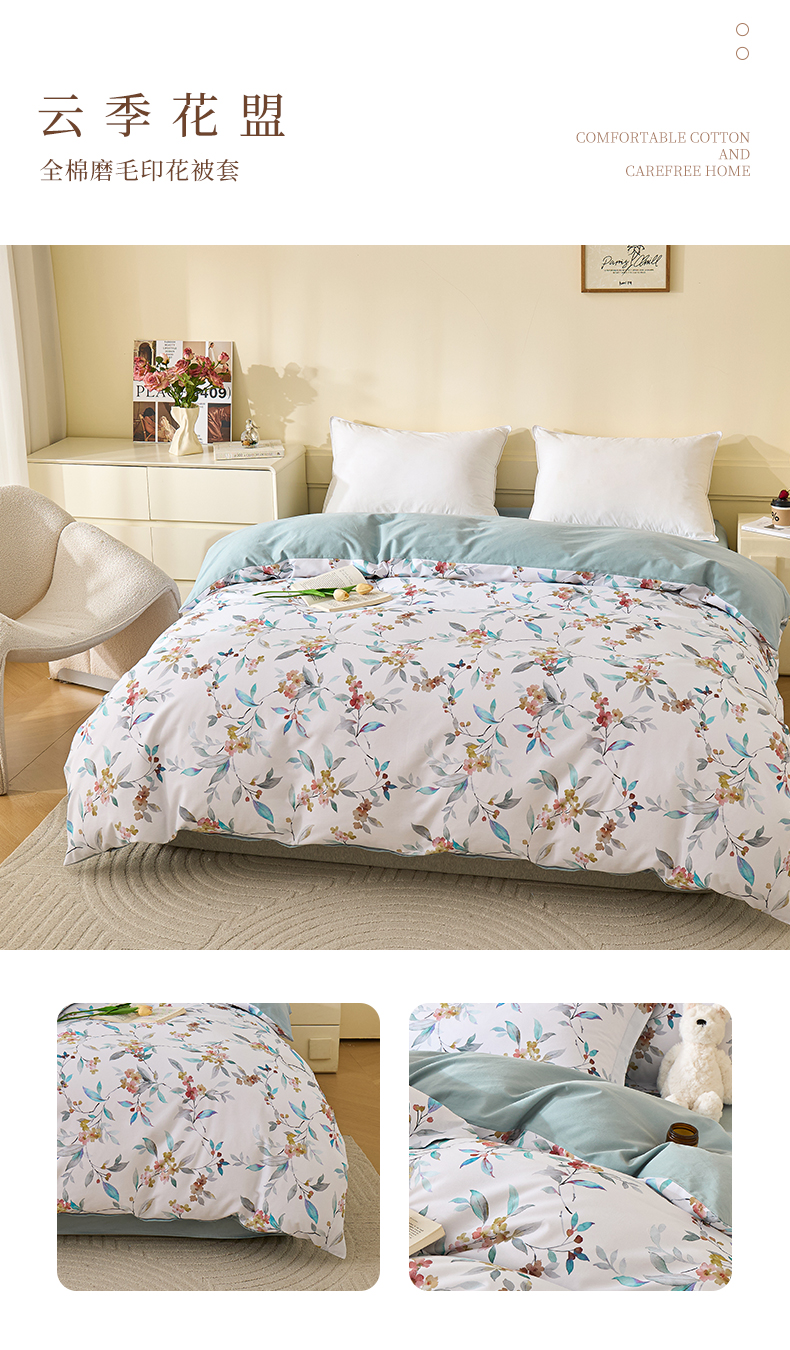 商品名称:元元家居(元元被业) 2025秋冬新款全棉纯棉磨毛印花单被套 爱诺紫