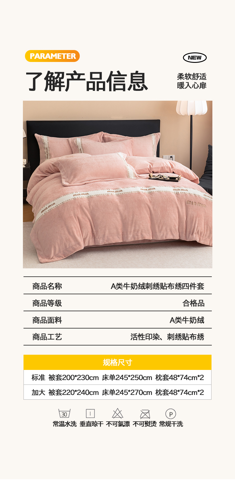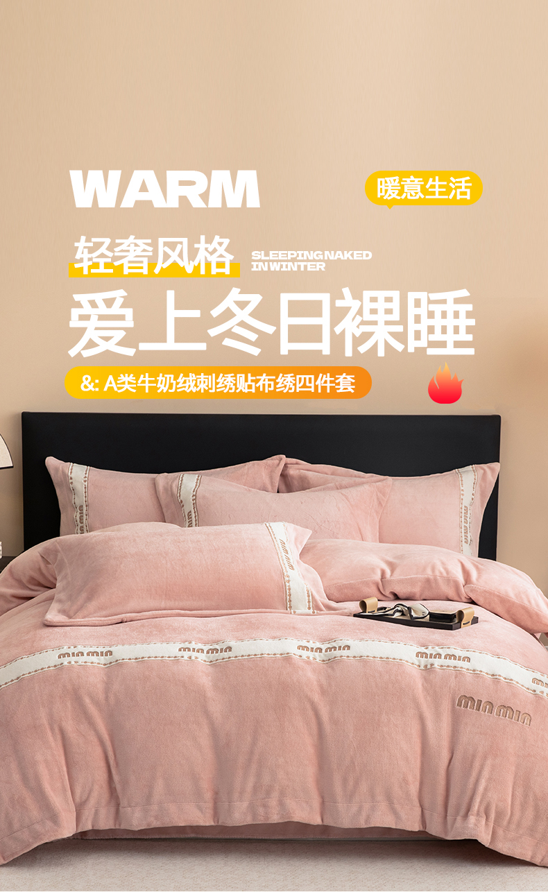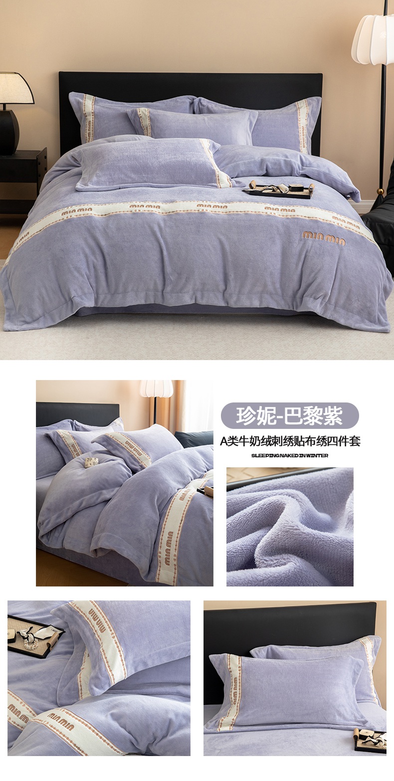 (总)懒猫家纺 2025新款亲肤舒适牛奶绒四件套-可可小姐系列,可可小姐-瓷白,可可小姐-水粉