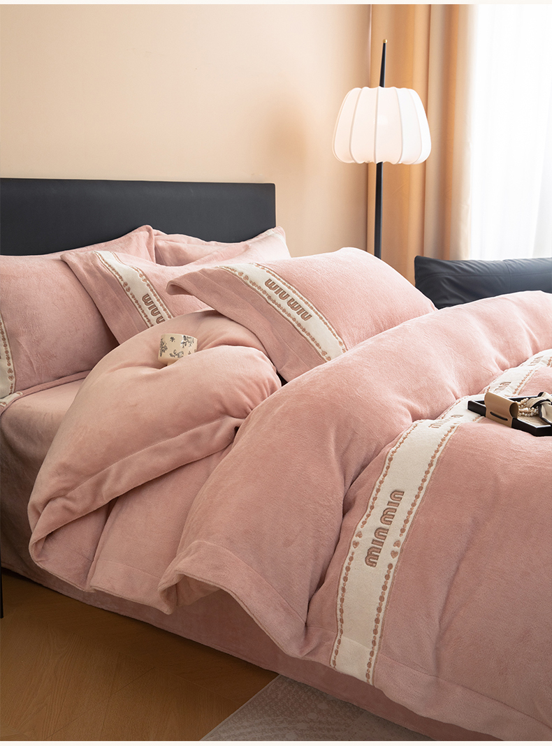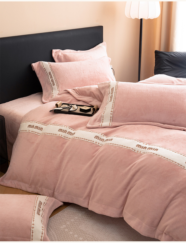 懒猫家纺 2025新款刺绣贴布绣牛奶绒四件套-珍妮 珍妮-苏桃粉