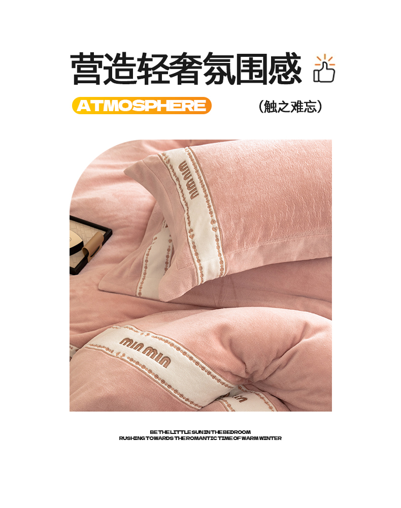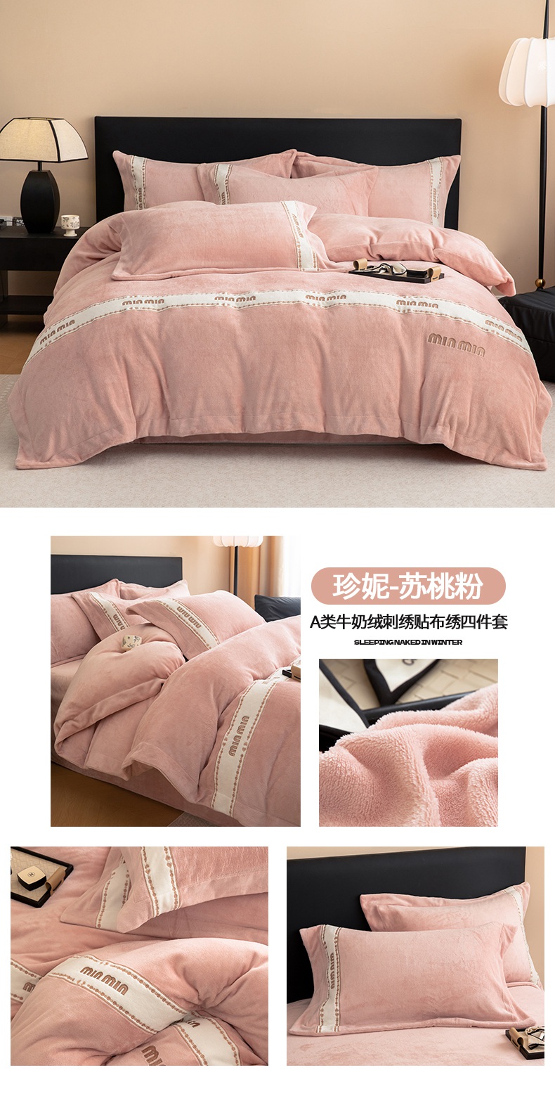 商品名称:懒猫家纺 2025新款刺绣贴布绣牛奶绒四件套-珍妮 珍妮-苏桃粉
