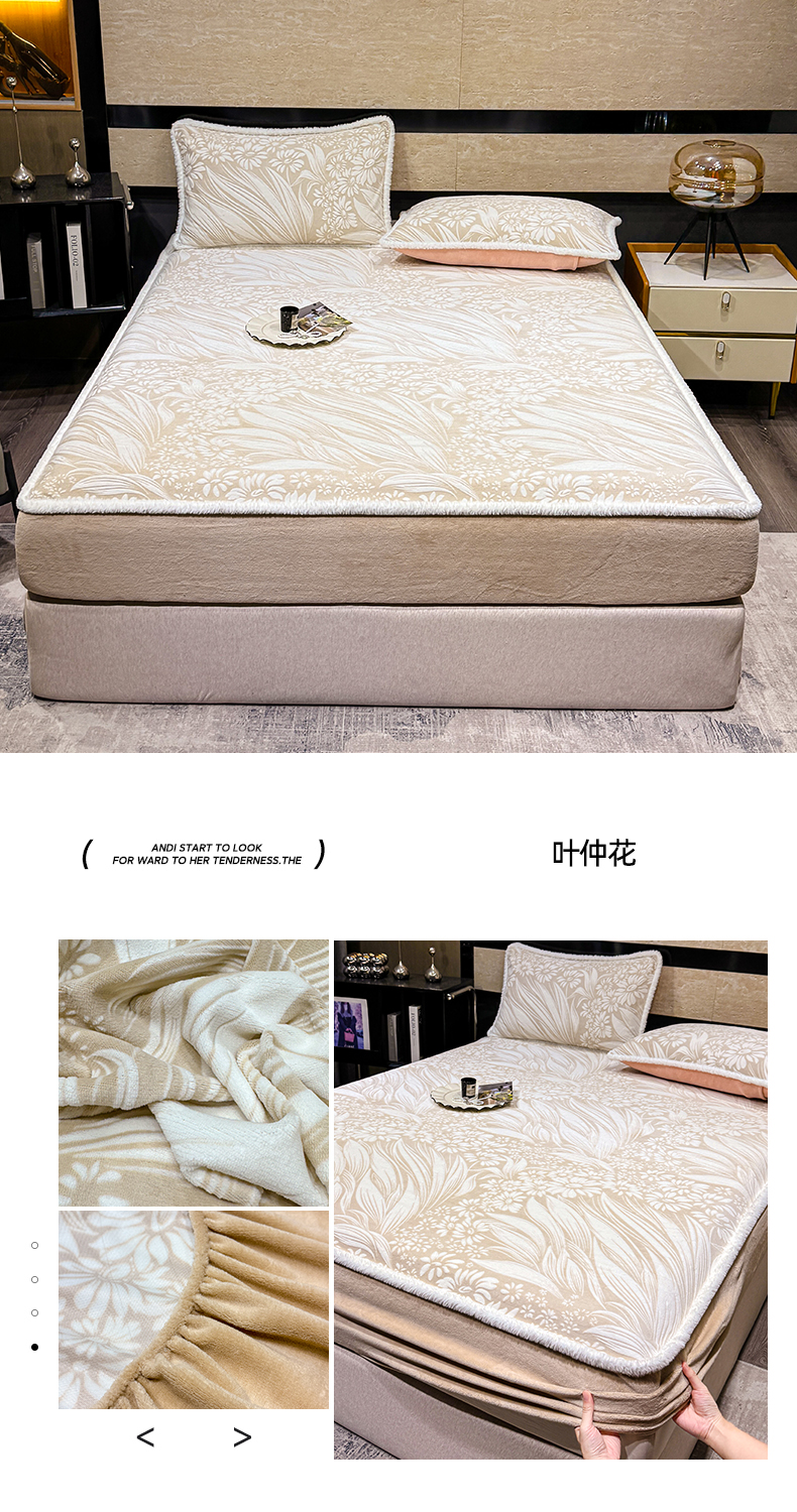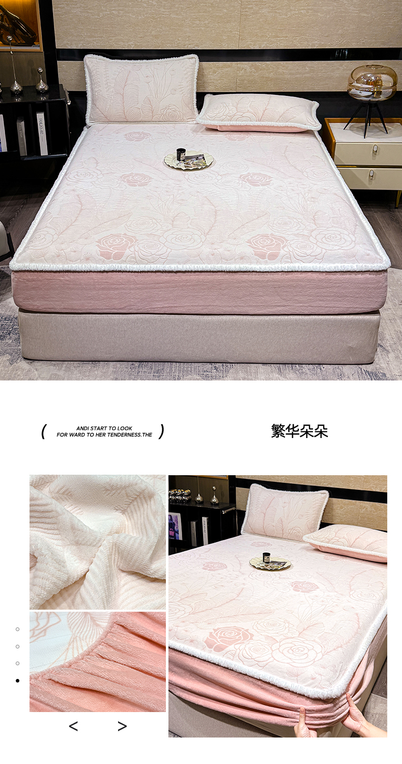 • 91家纺网 家纺一手货源 找家纺 鹿辉家居(原吉欧力) 2025新款牛奶绒雕花兔毛绒包边床笠 画意枝头
