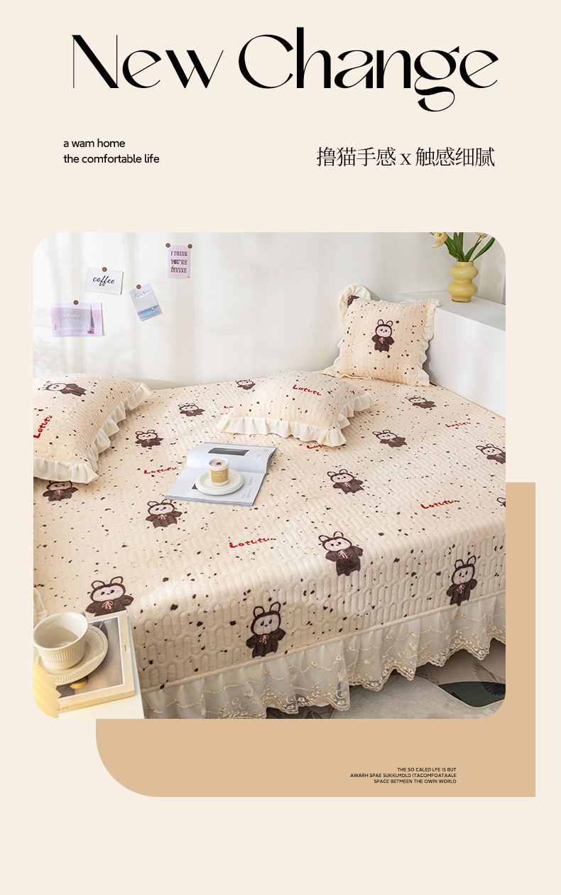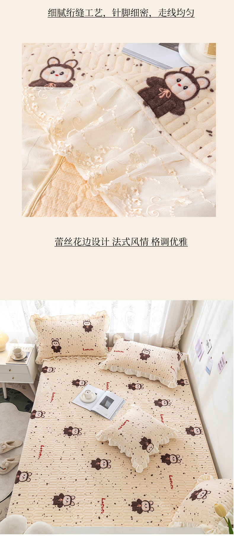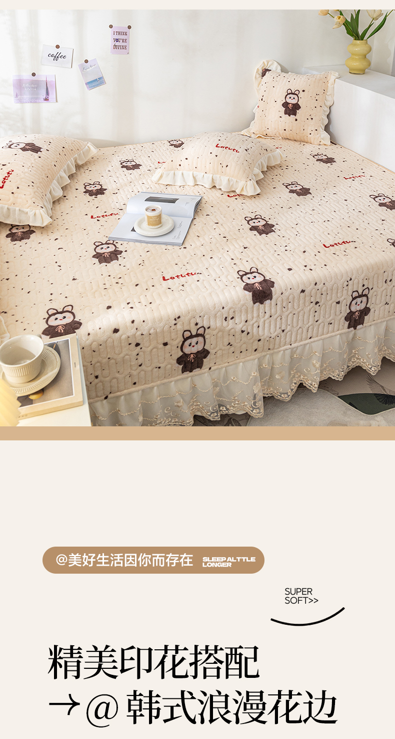 • 91家纺网 家纺一手货源 找家纺 美优兰 2025秋冬新款牛奶绒榻榻米垫床盖(可定制) 拉兔兔