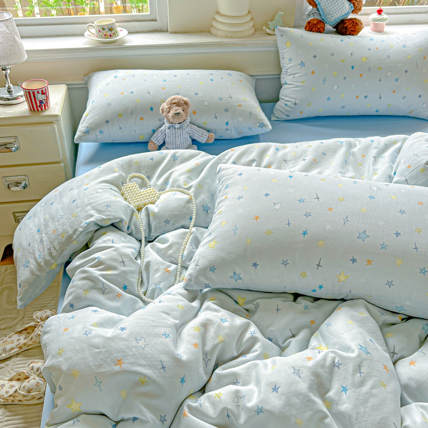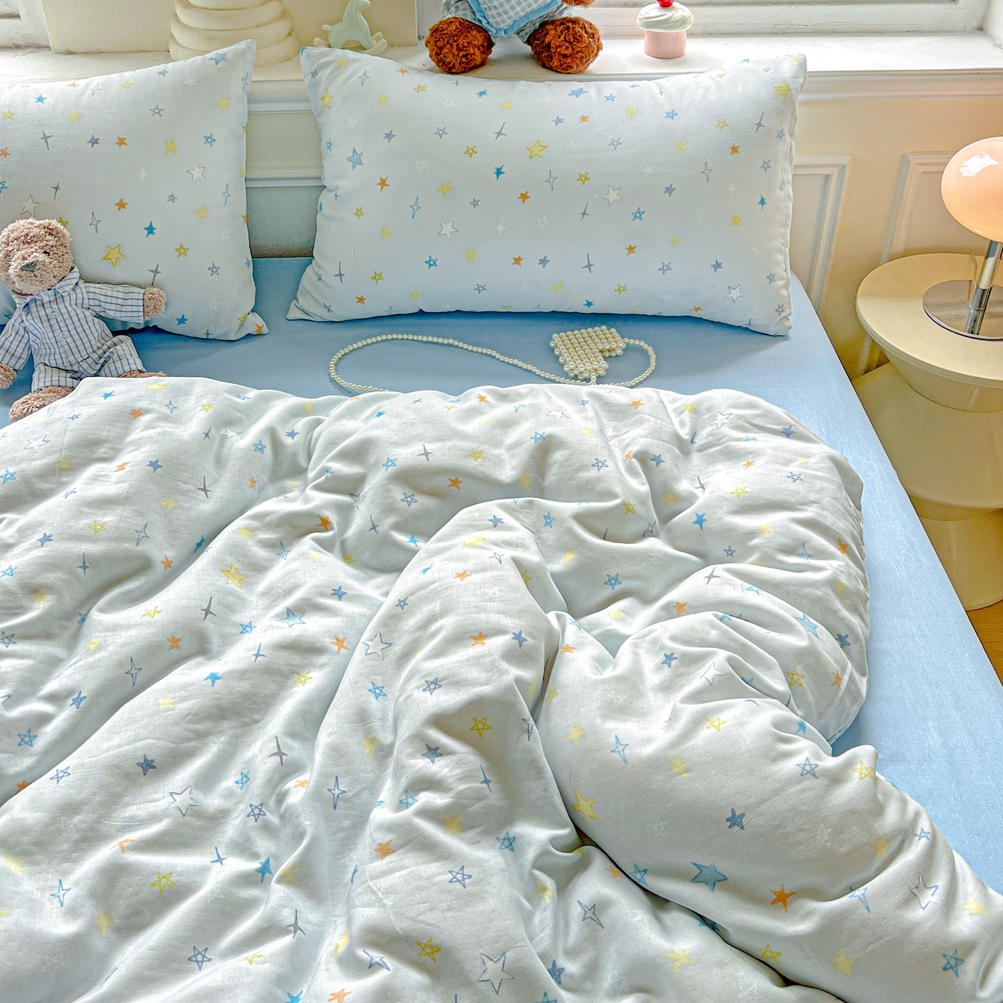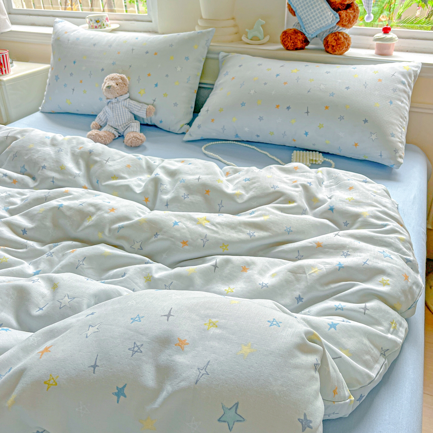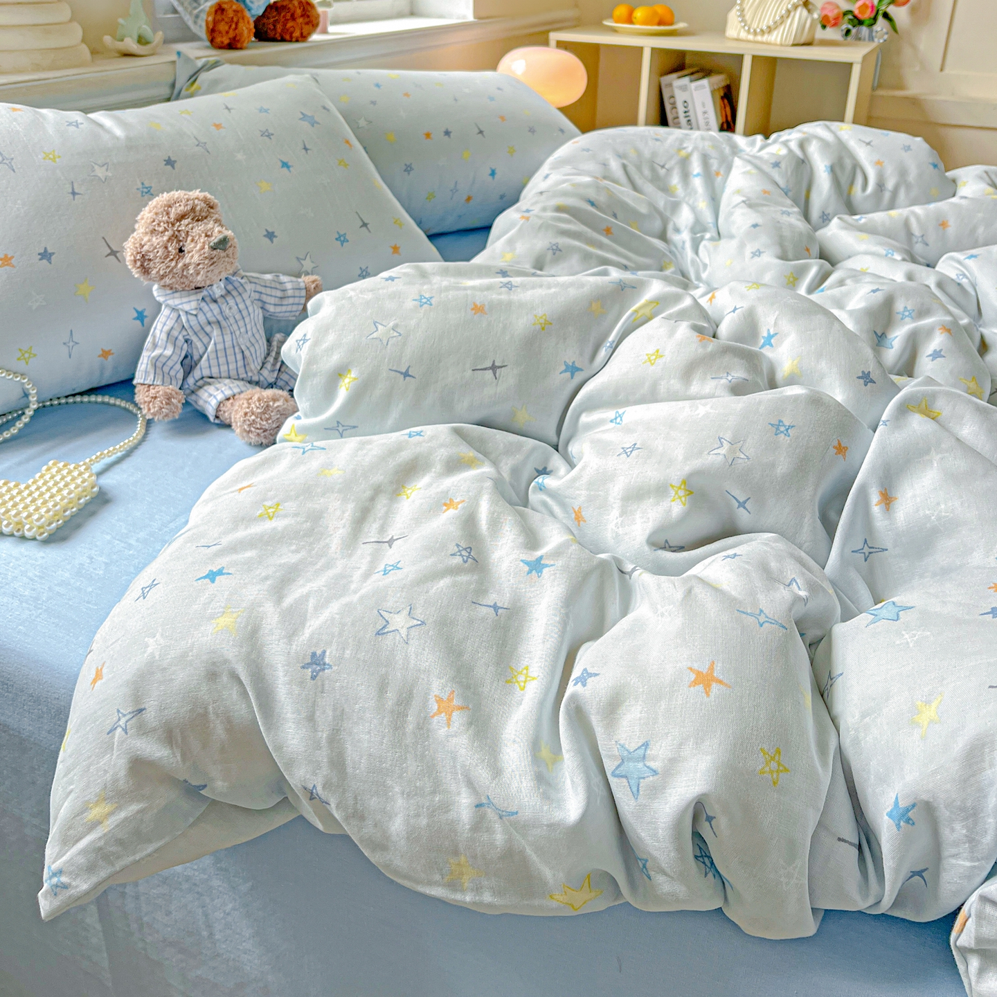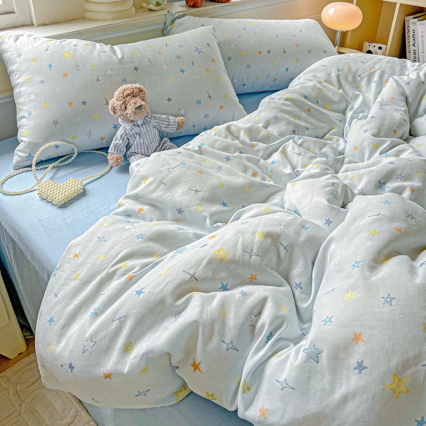 一比一家纺 2025新款全棉双层纱四件套 星星世界