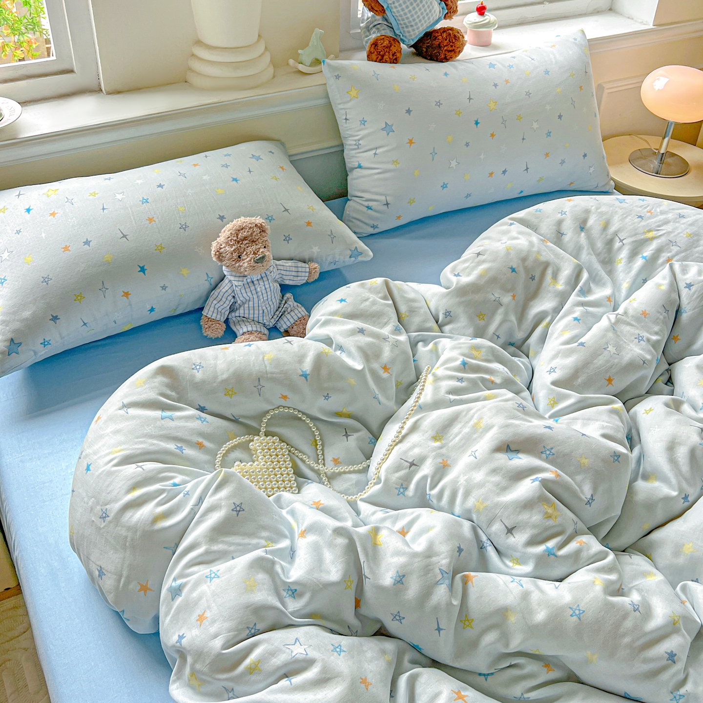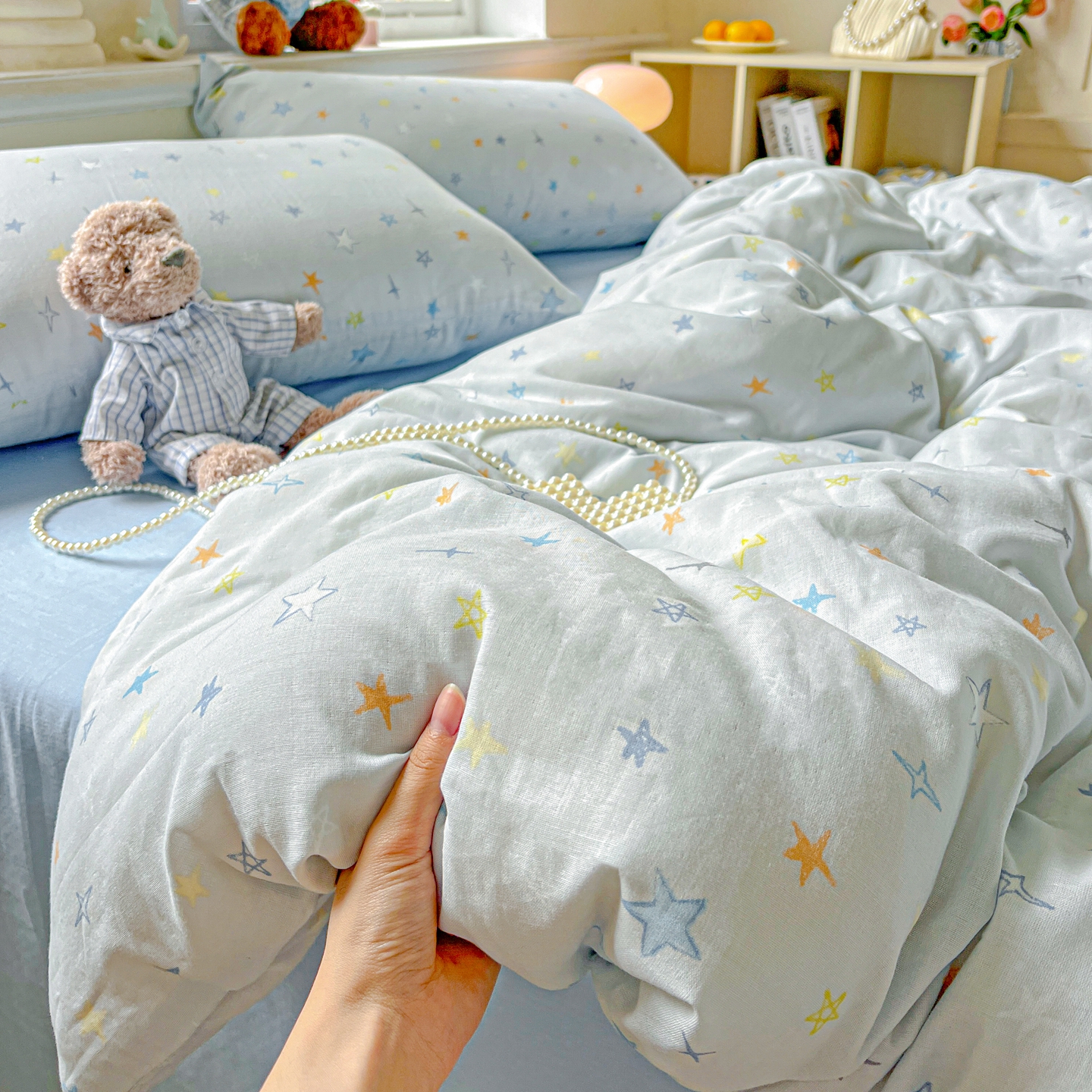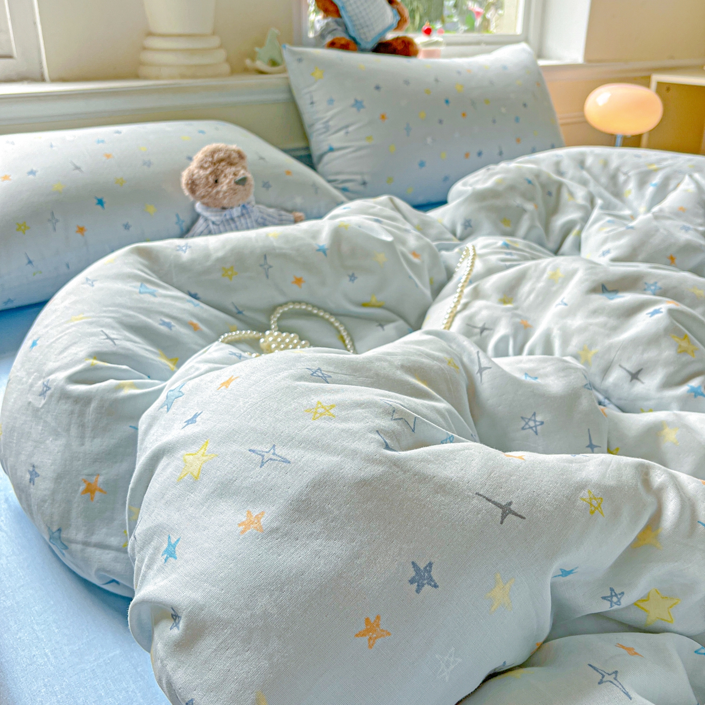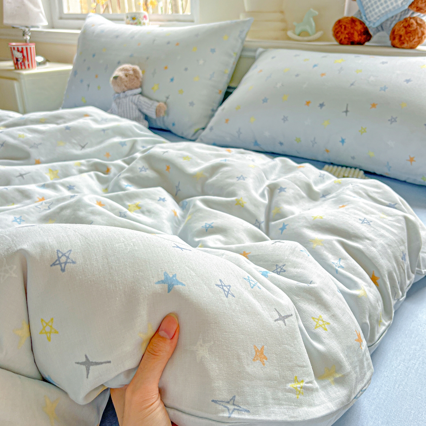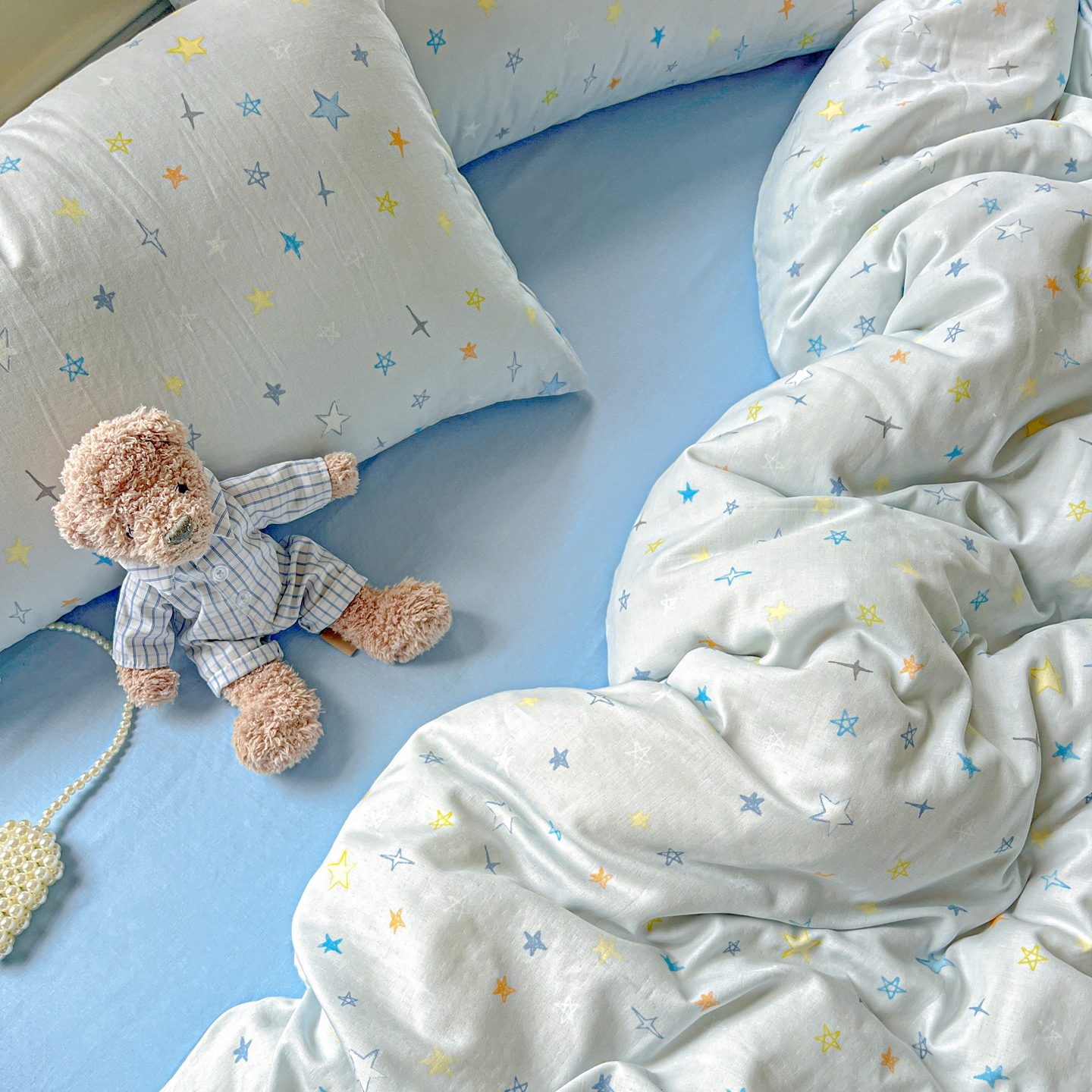 一比一家纺 2025新款全棉双层纱四件套 星星世界