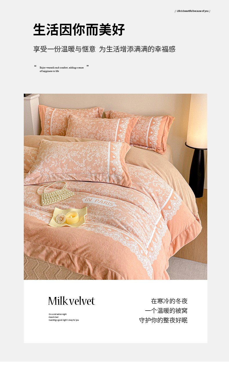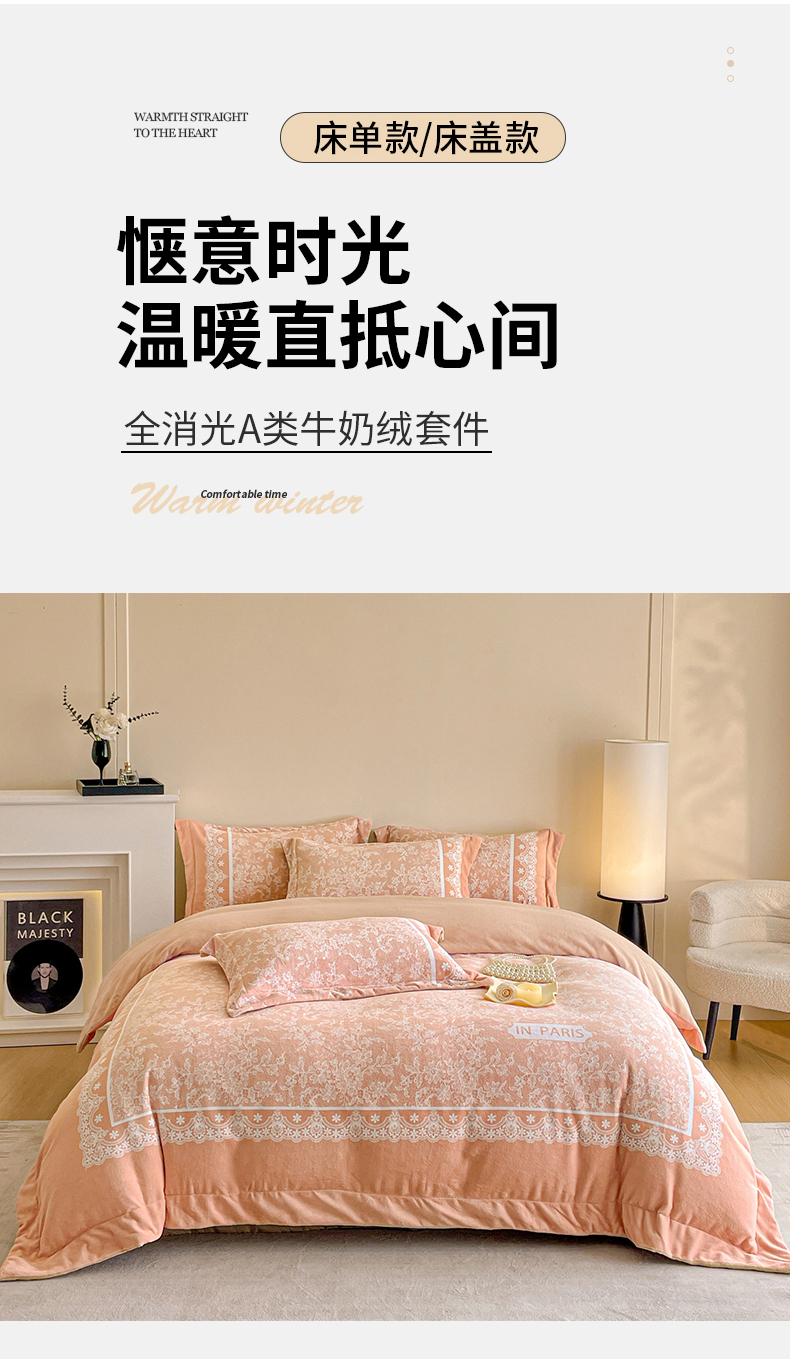 当前位置: 91家纺网 > 商品网购 > 床品套件 > 四件套 > 牛奶绒四件套 > 新方向 2025新款高克重240克A类全消光数码印花牛奶绒四件套-恋语 恋语-香槟