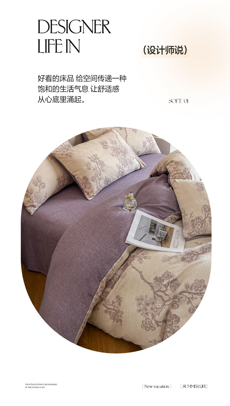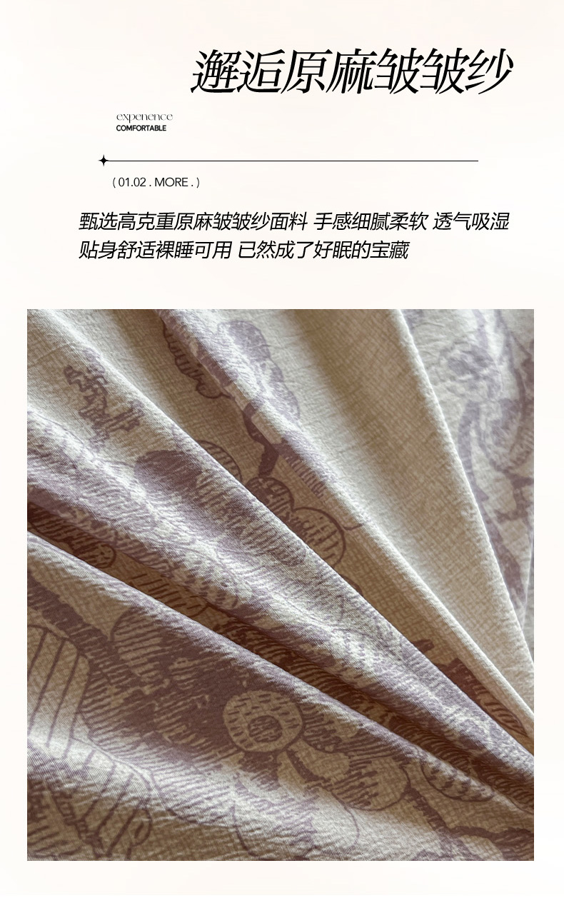 (总)艺玲家纺 2025新款亲肤舒适复古水洗亚麻四件套,扶苏,浮绘花影,海棠花开,青瓷岁月,简粉格,简约线条,满园花开,陌上花开,南城旧梦,佩利斯,花之舞,秋意浓,水木年华,向上花开,紫嫣