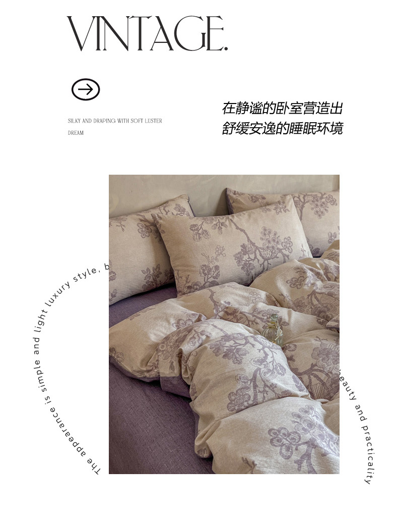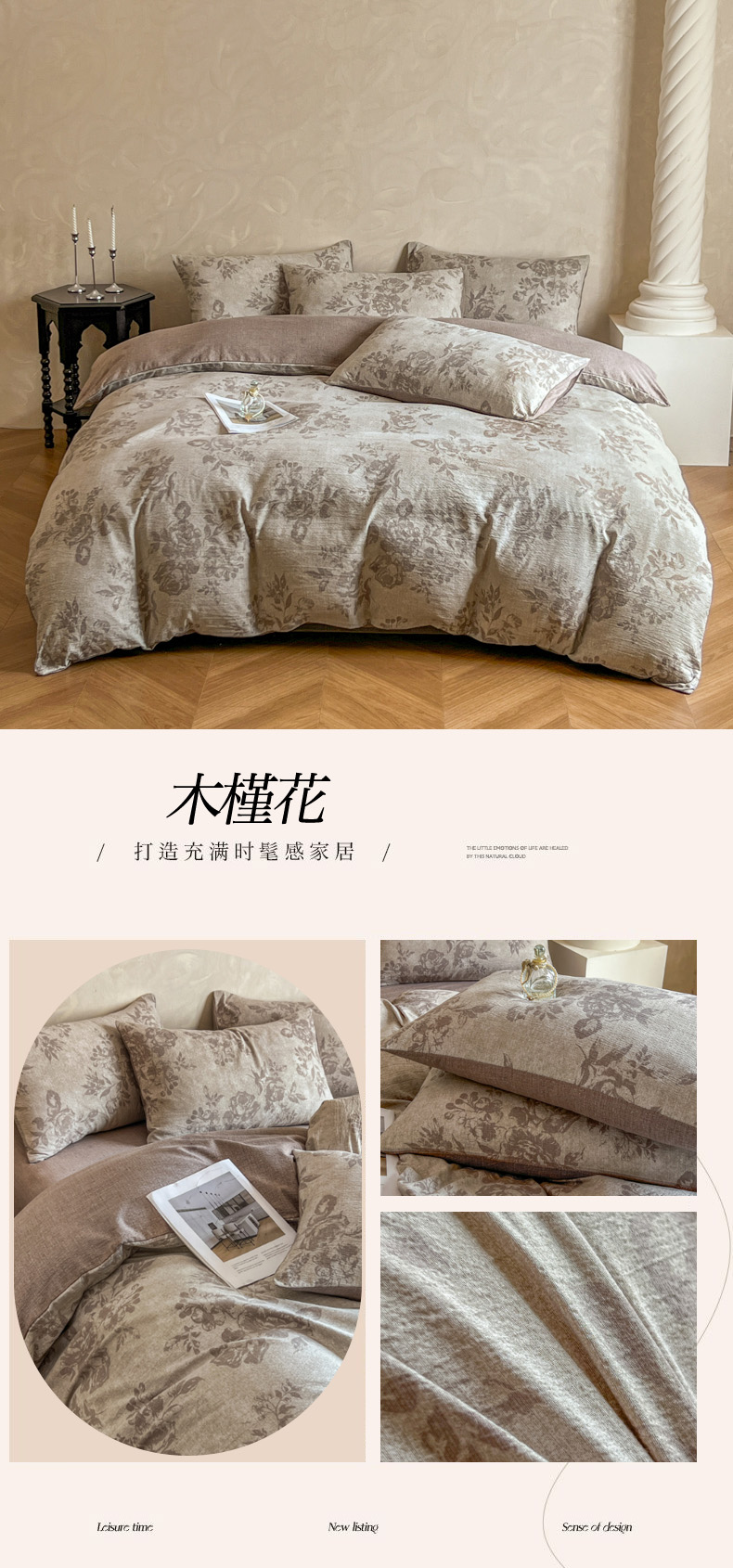 (总)艺玲家纺 2025新款加厚高克重原麻复古风亚麻印花四件套,繁华入梦,蝶影,花田里,锦瑟,迷迭绿,摩卡,墨染,木槿花,南栀,青黛,山野,烟棠紫,岩间絮,组合图仅供参考不可下单