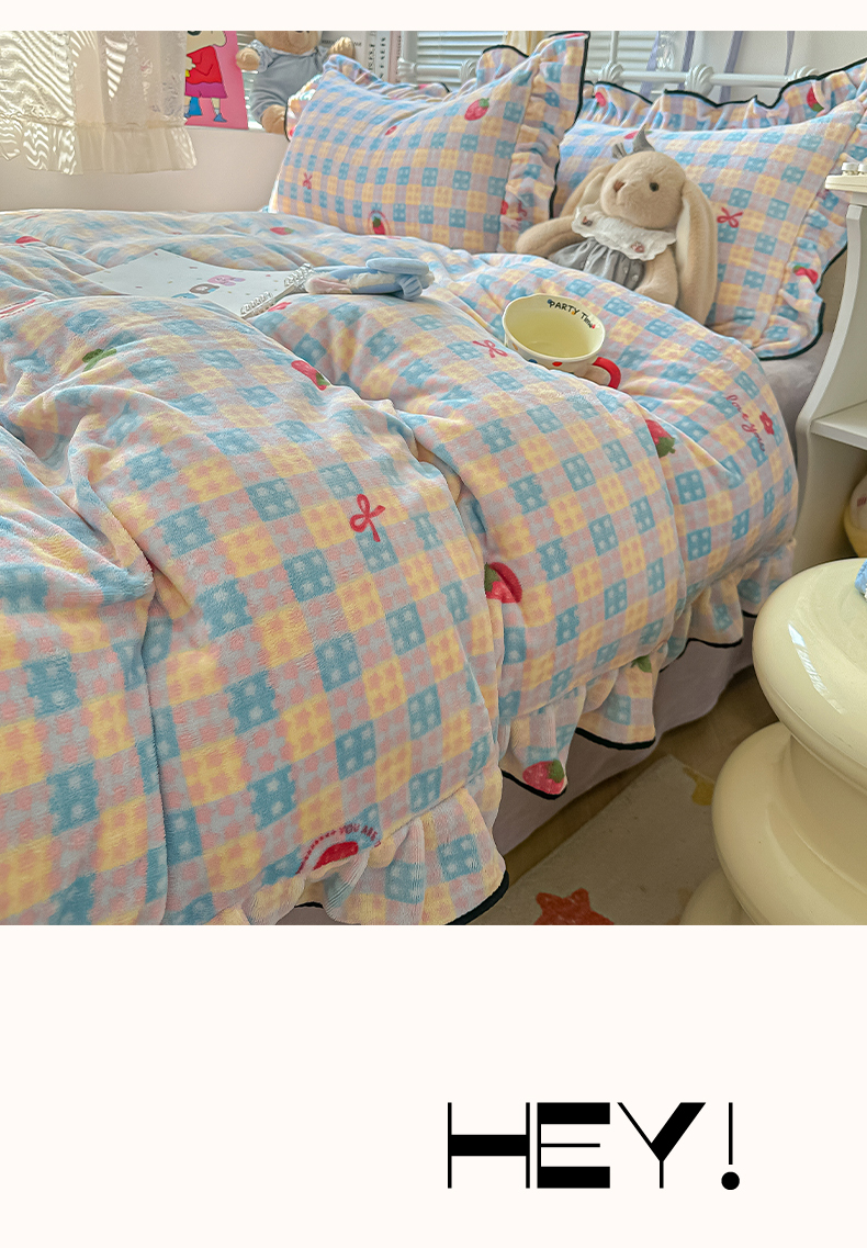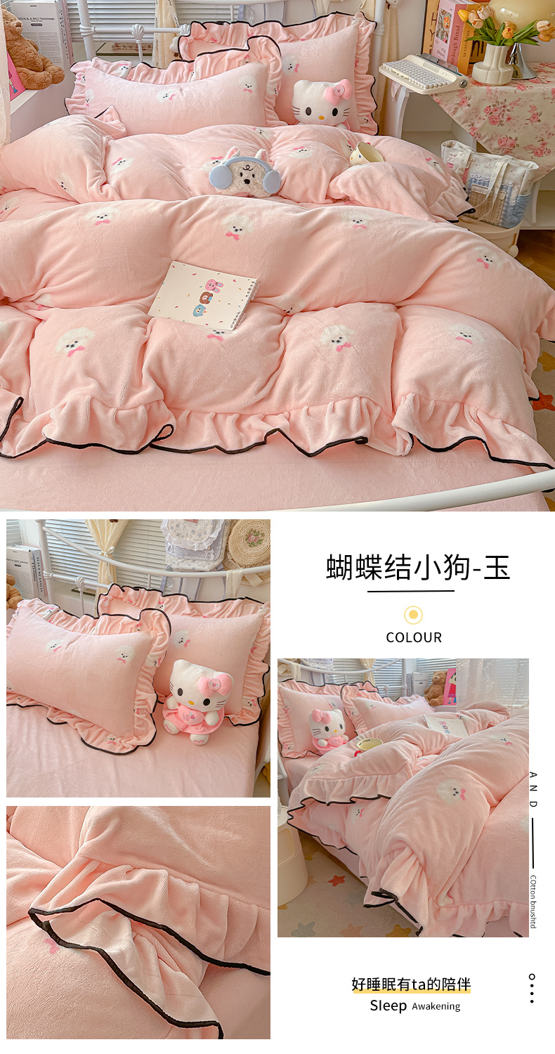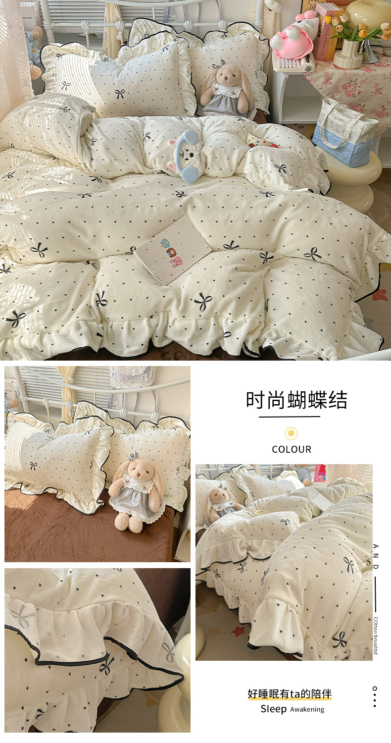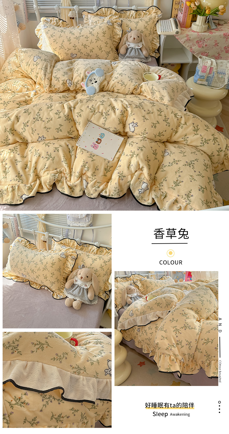当前位置: 91家纺网 > 商品网购 > 床品套件 > 四件套 > 牛奶绒四件套 > 韩都家居 2025新款亲肤舒适韩版温暖牛奶绒四件套-花边款 治愈女孩