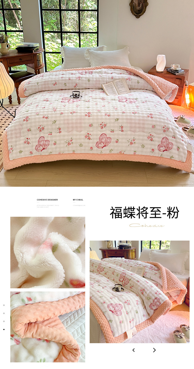 • 91家纺网 家纺一手货源 找家纺 优迈 2025直播热款A+兔兔绒豆豆被三层夹棉加厚毛毯毯子牛奶绒冬被泡泡兔毛绒保暖被子被芯 福蝶将至-粉
