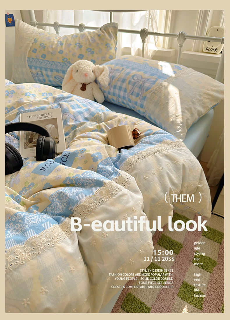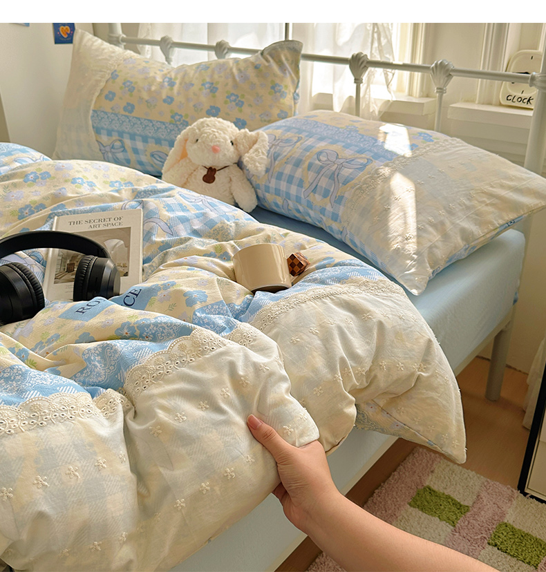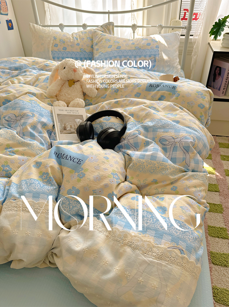 当前位置: 91家纺网 > 商品网购 > 床品套件 > 四件套 > 双层纱四件套 > 花伞家居 2025新款A类韩系蕾丝花边云感木棉双层纱四件套(提供买家秀) 韩系爱洛