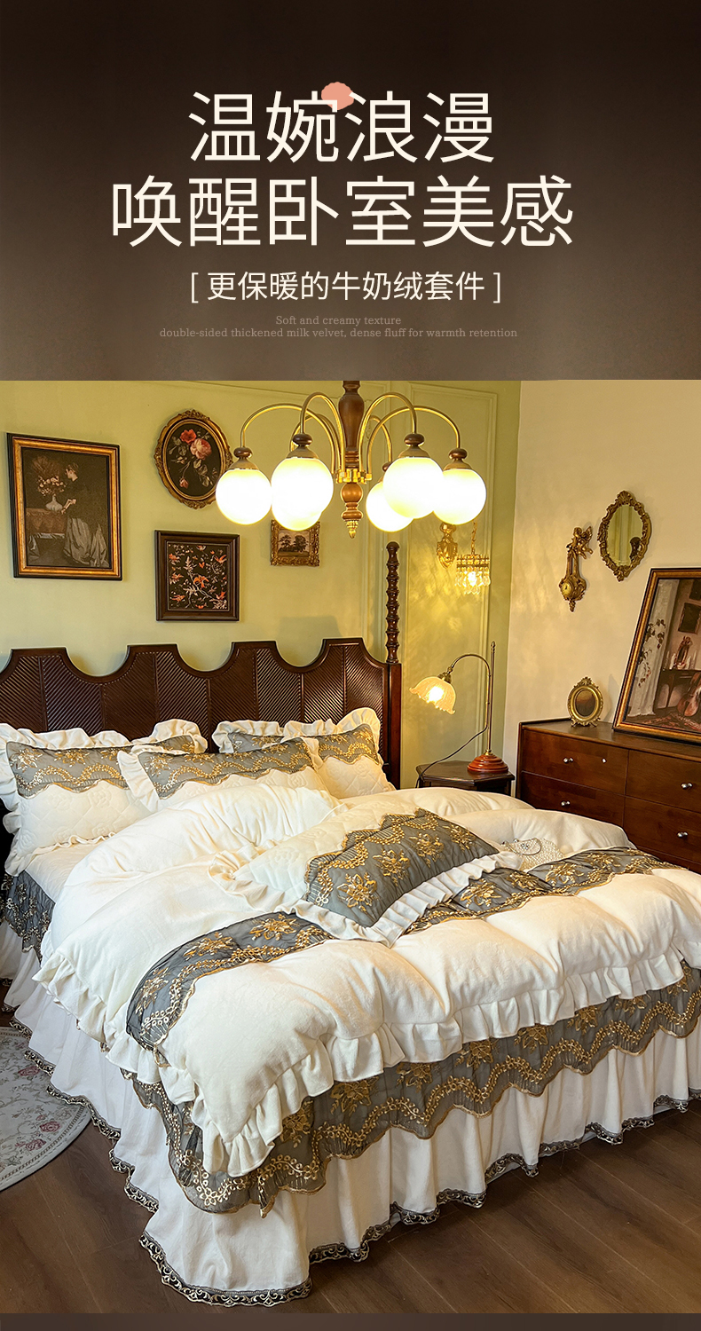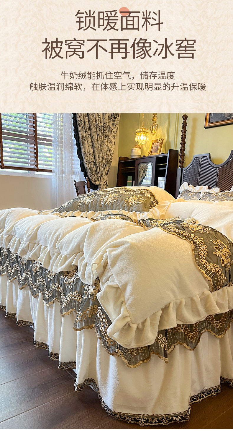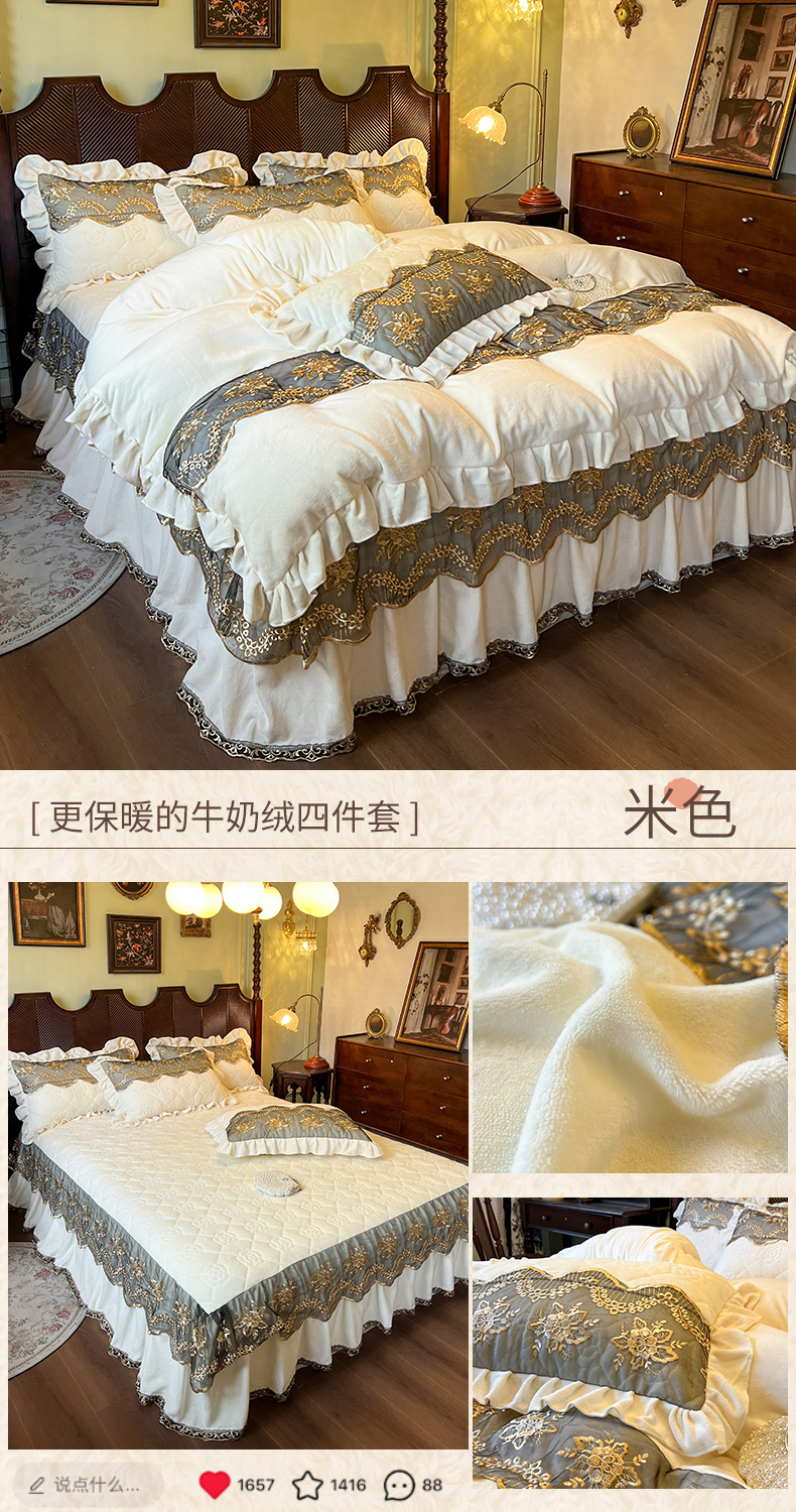 当前位置: 91家纺网 > 商品网购 > 床品套件 > 四件套 > 牛奶绒四件套 > 网红馆(ck家纺) 2025新款高克重牛奶绒床裙四件套-卡妮娜系列 卡妮娜-米色