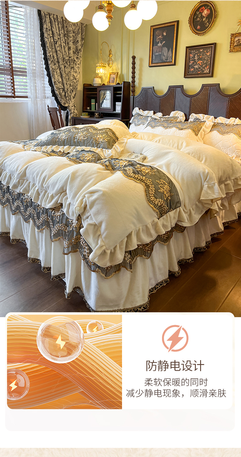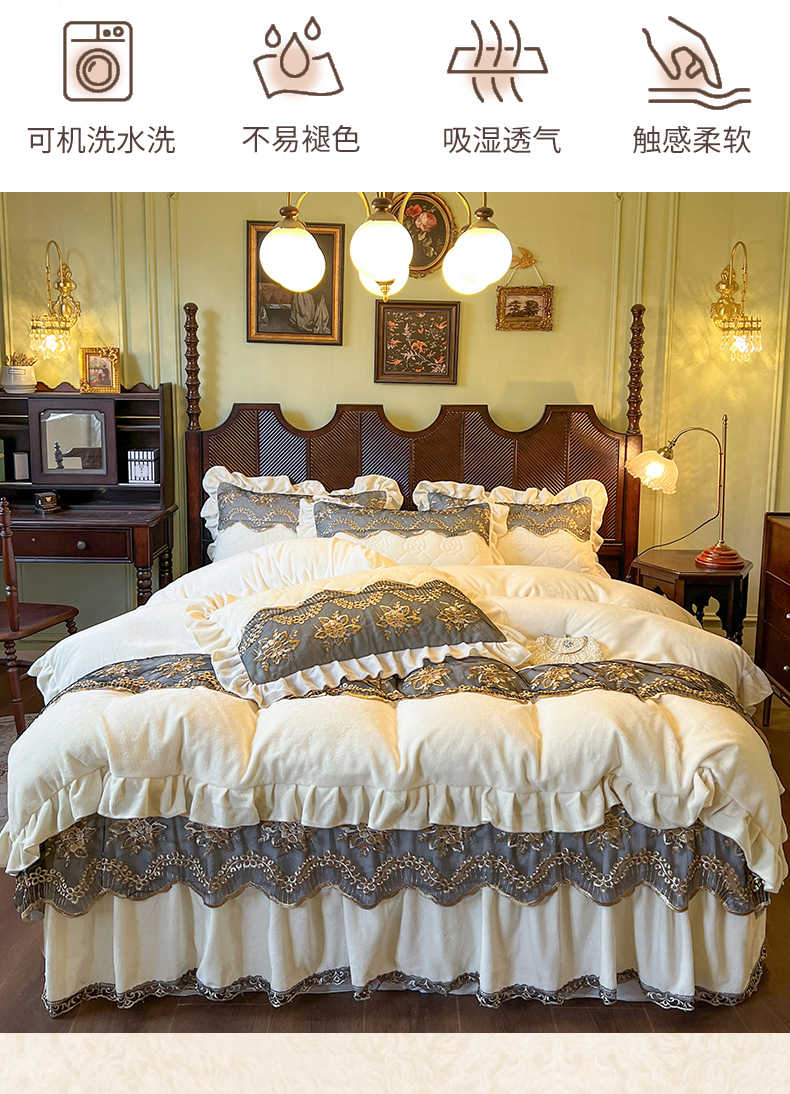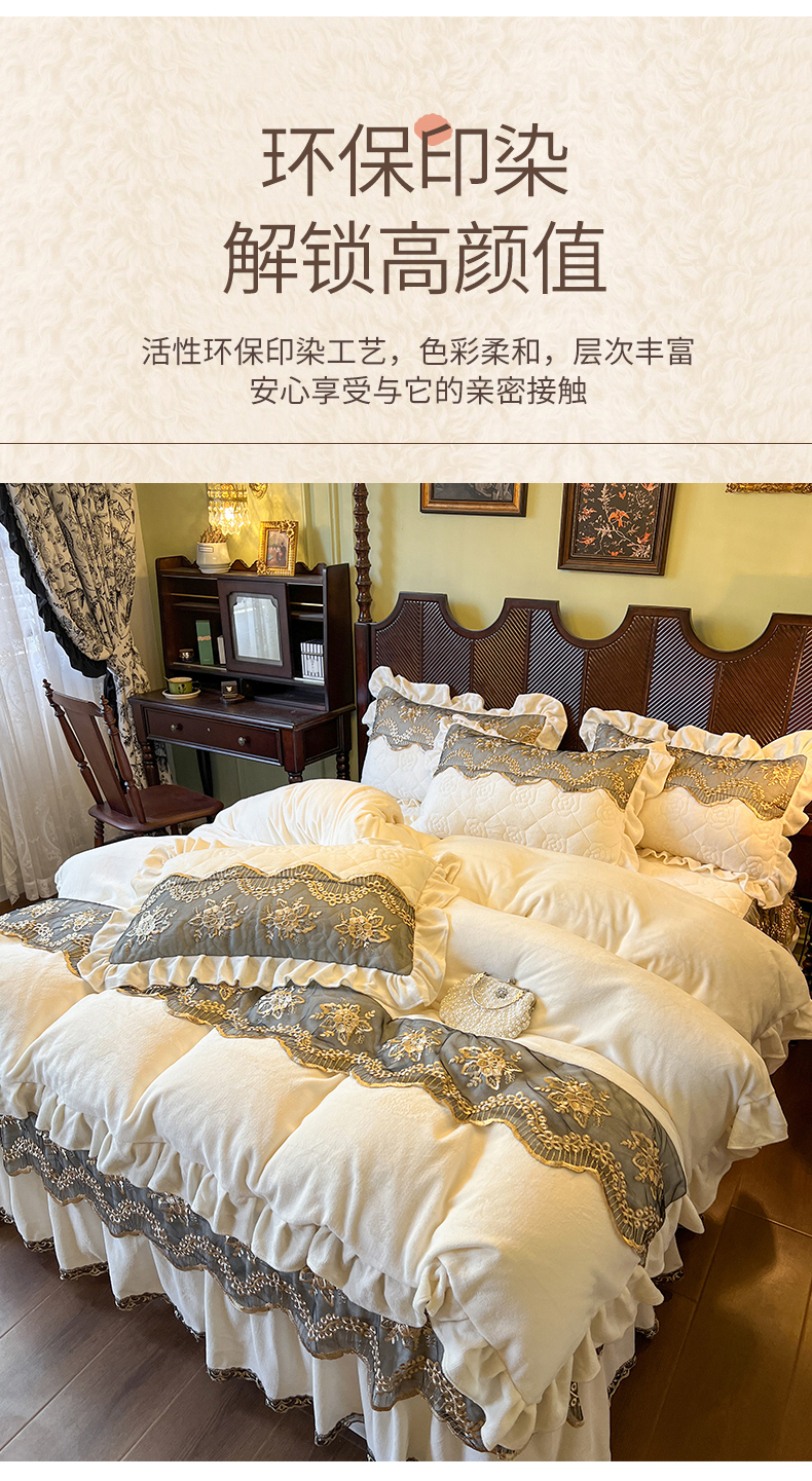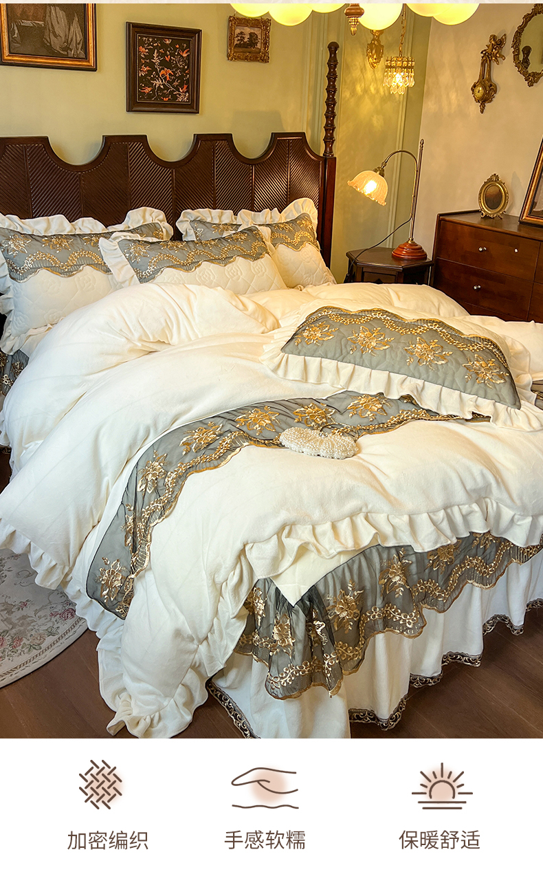 当前位置: 91家纺网 > 商品网购 > 床品套件 > 四件套 > 牛奶绒四件套 > 网红馆(ck家纺) 2025新款高克重牛奶绒床裙四件套-卡妮娜系列 卡妮娜-米色