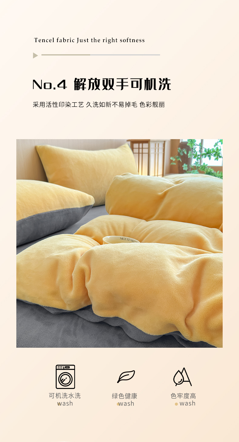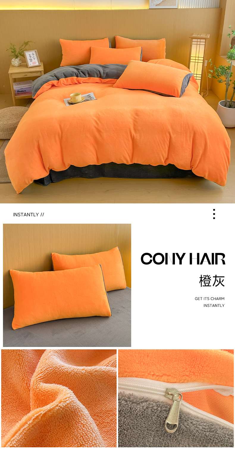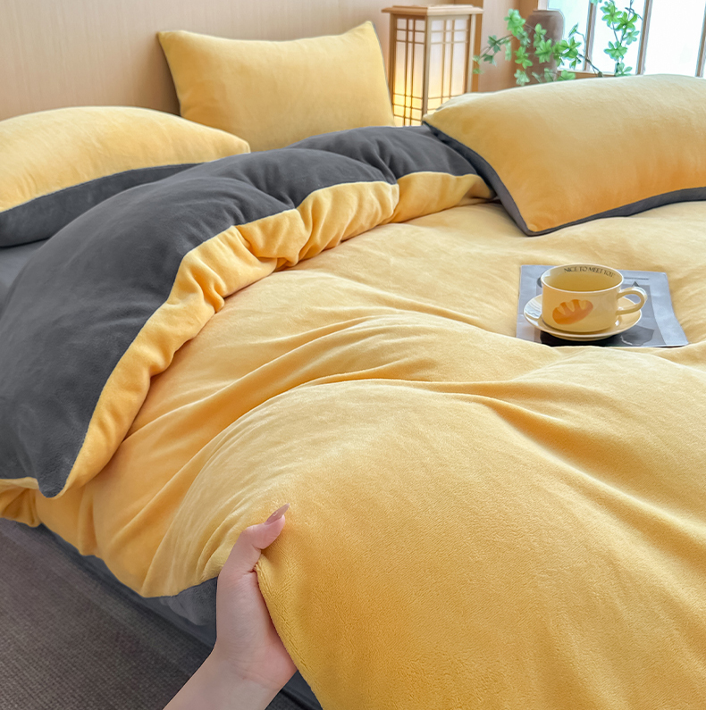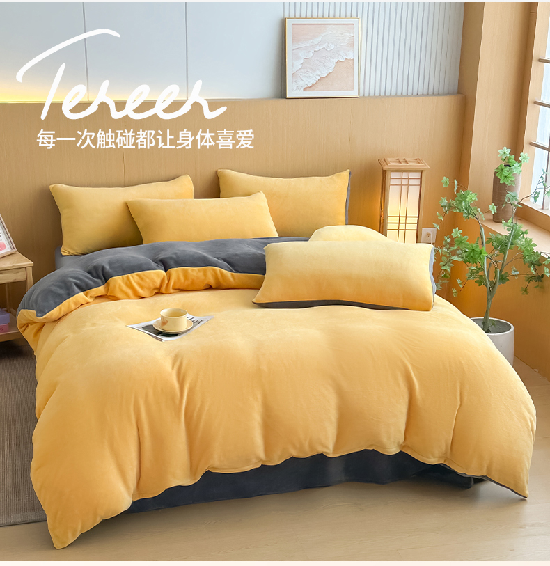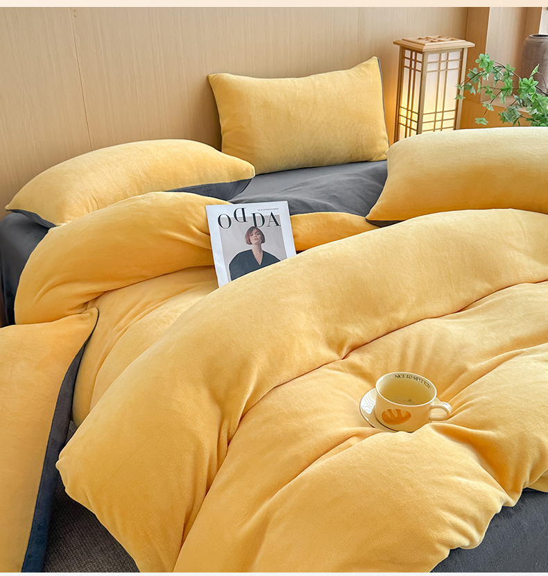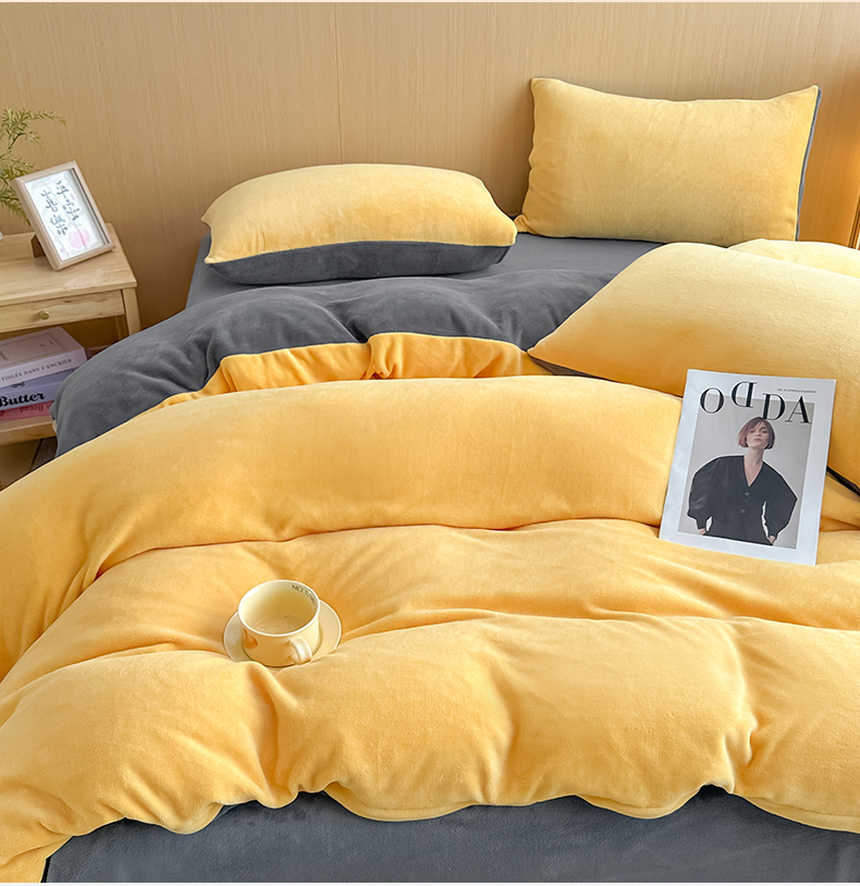 商品名称:小懒猪 2025新款220克A类牛奶绒纯色双拼四件套(提供买家秀) 芒果灰