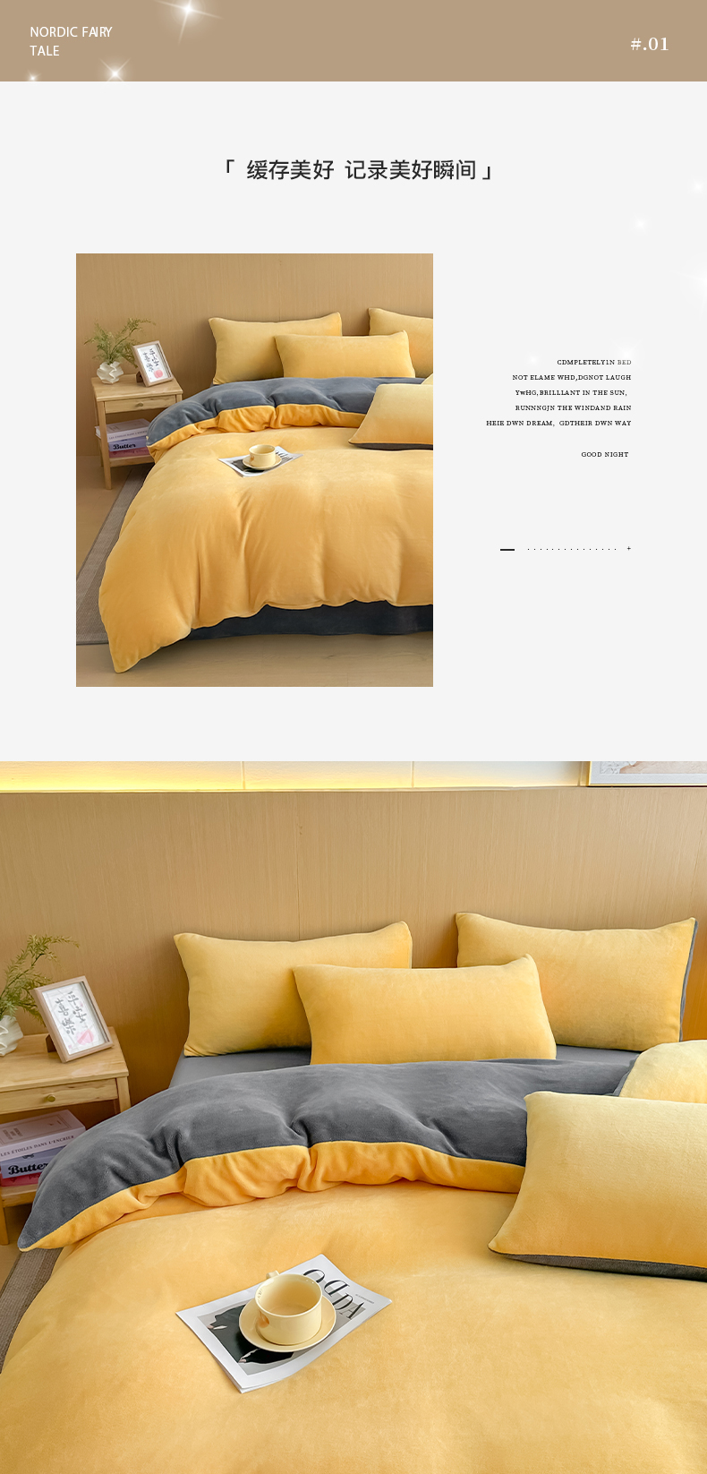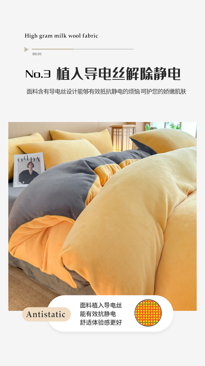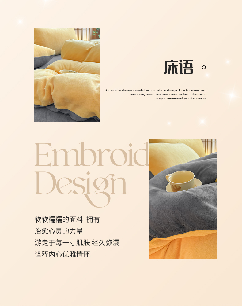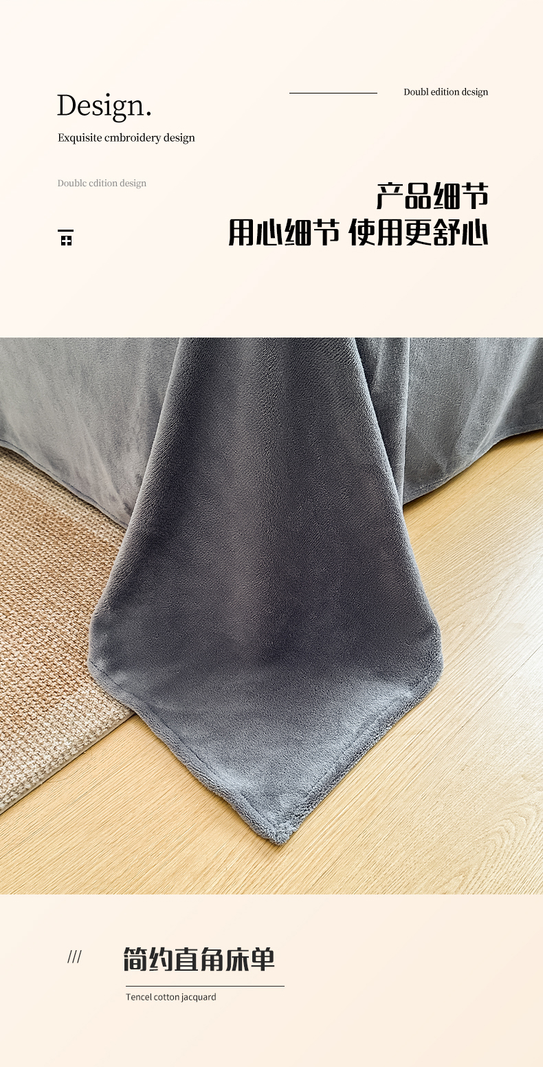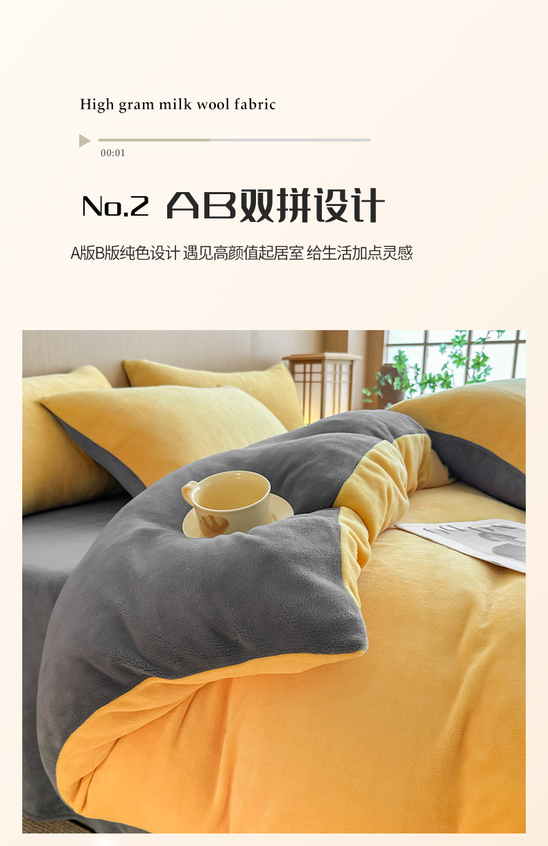 商品名称:小懒猪 2025新款220克A类牛奶绒纯色双拼四件套(提供买家秀) 芒果灰