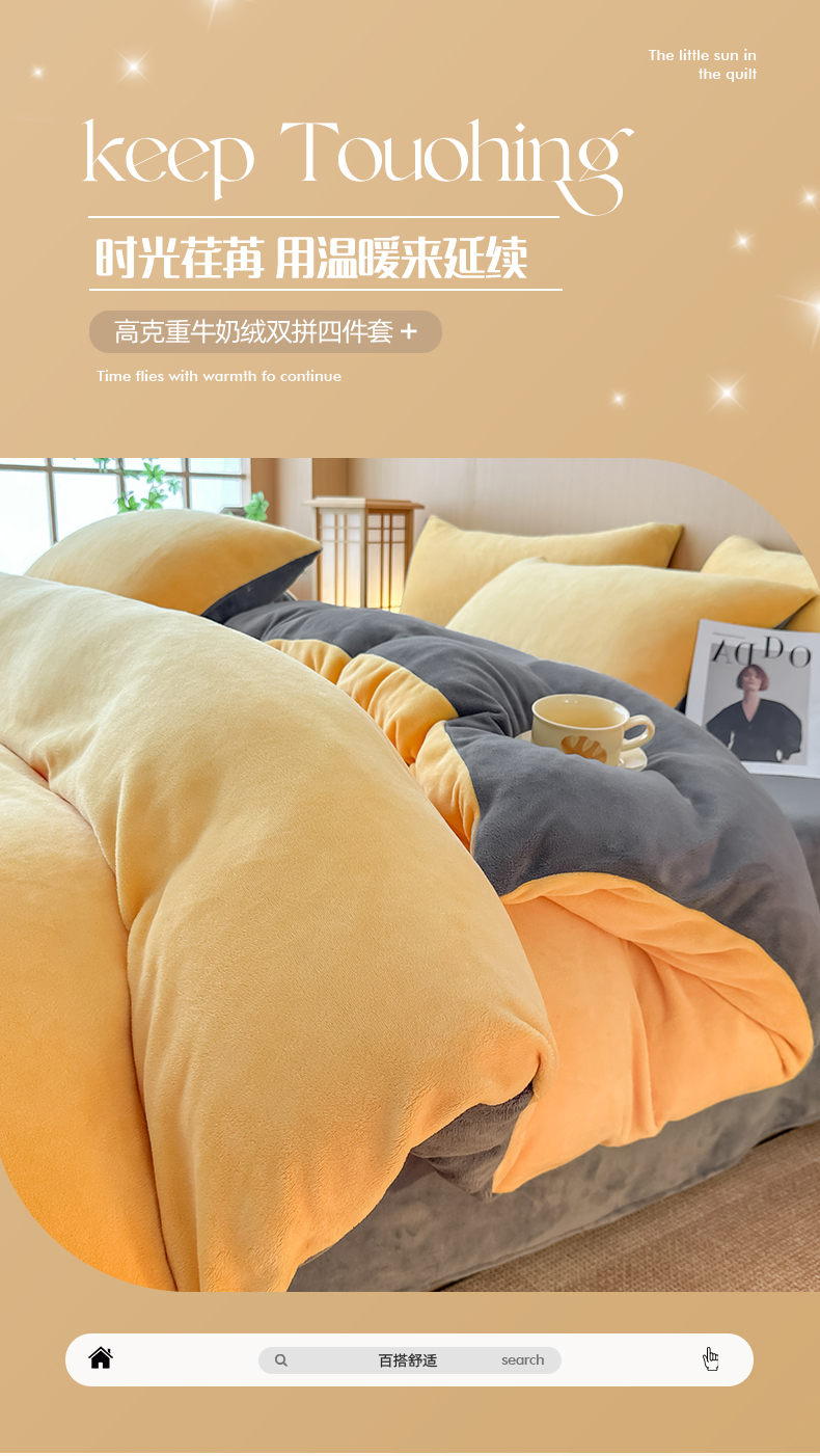 小懒猪 2025新款220克A类牛奶绒纯色双拼四件套(提供买家秀) 芒果灰