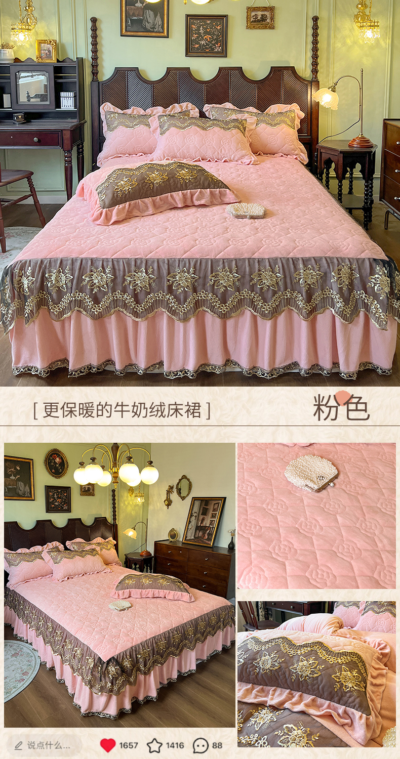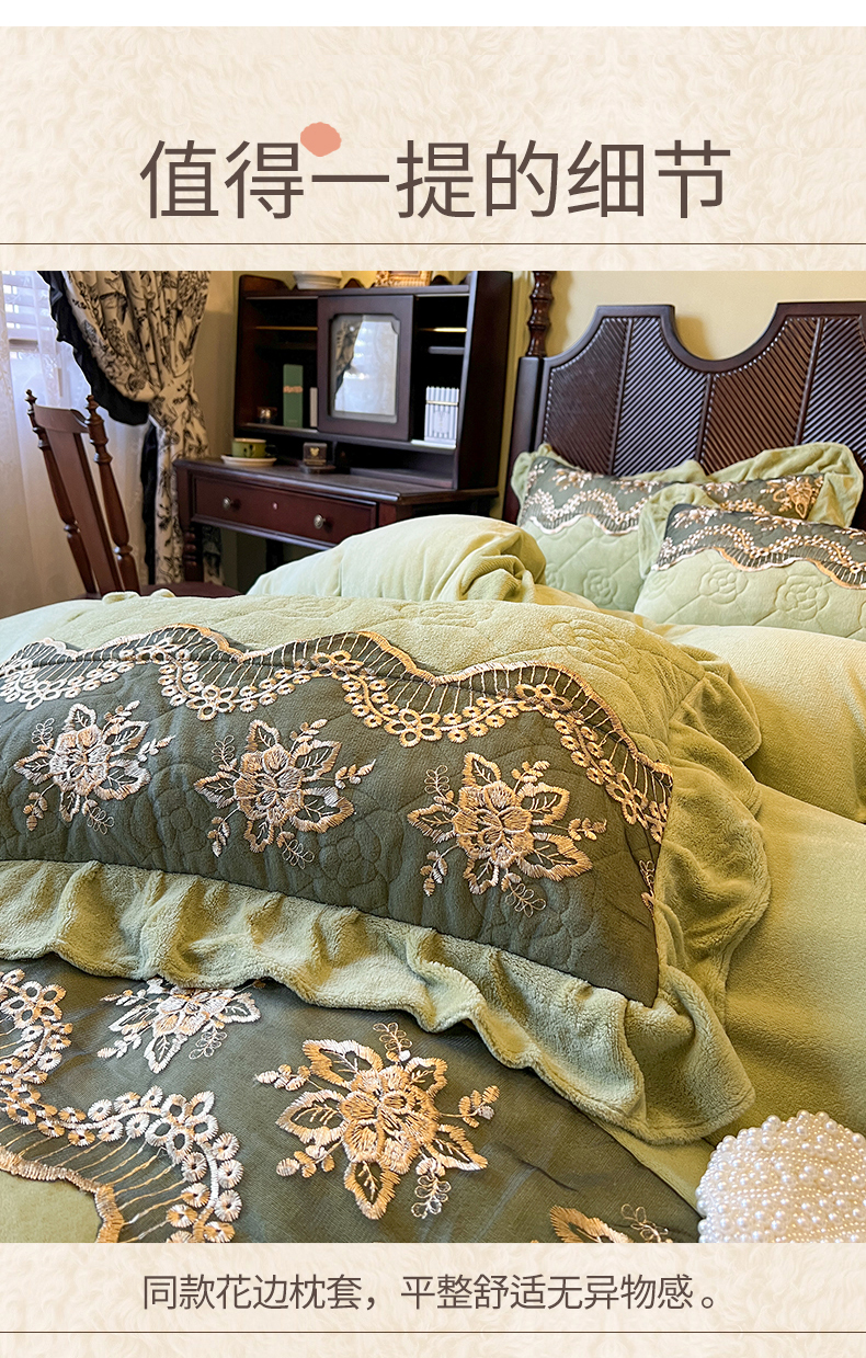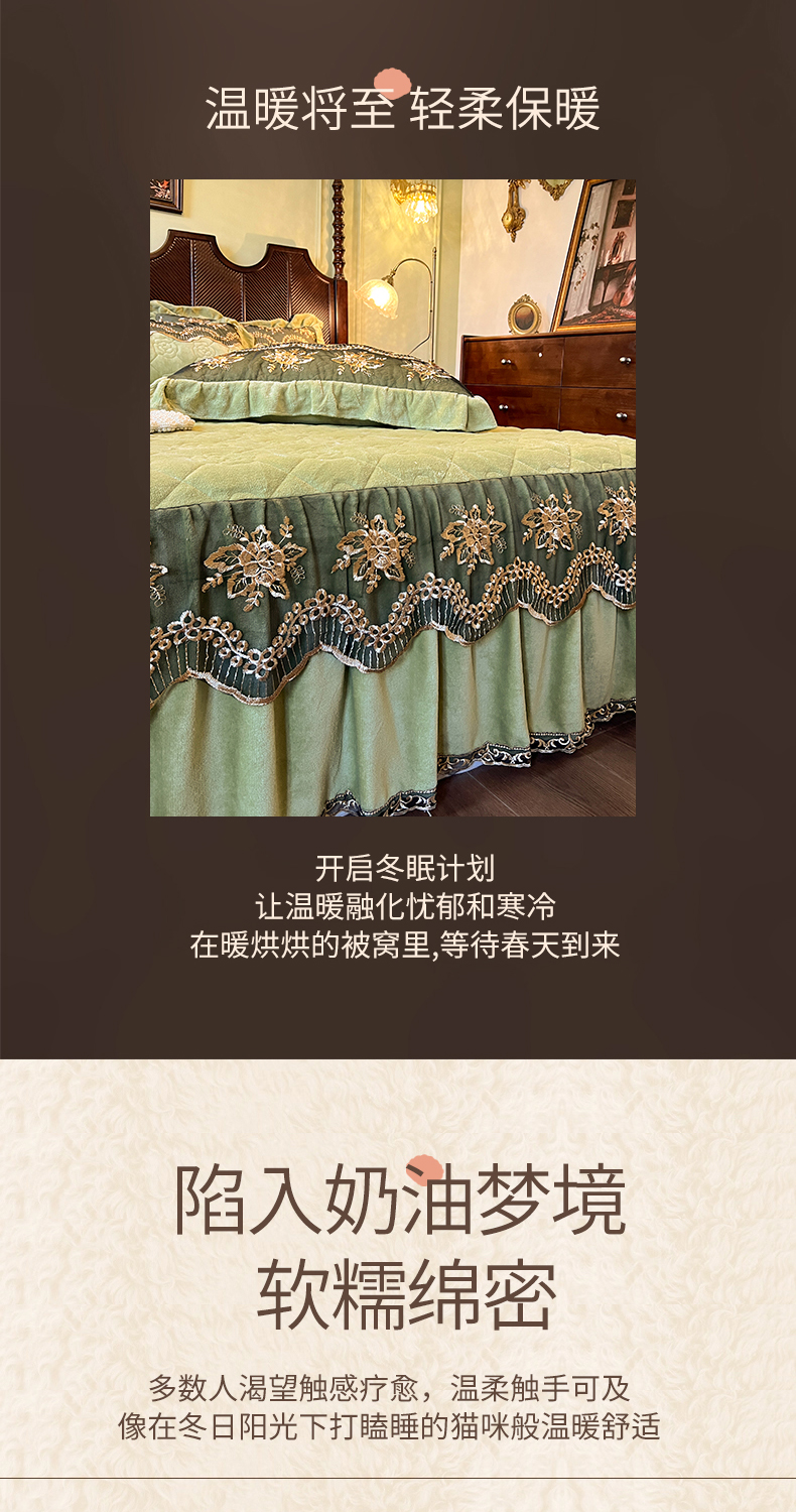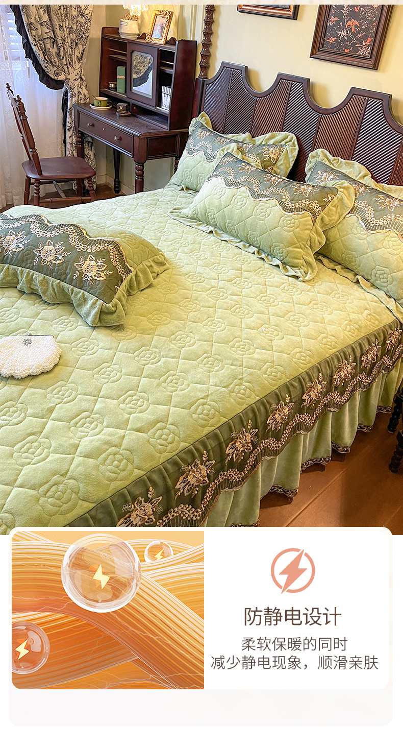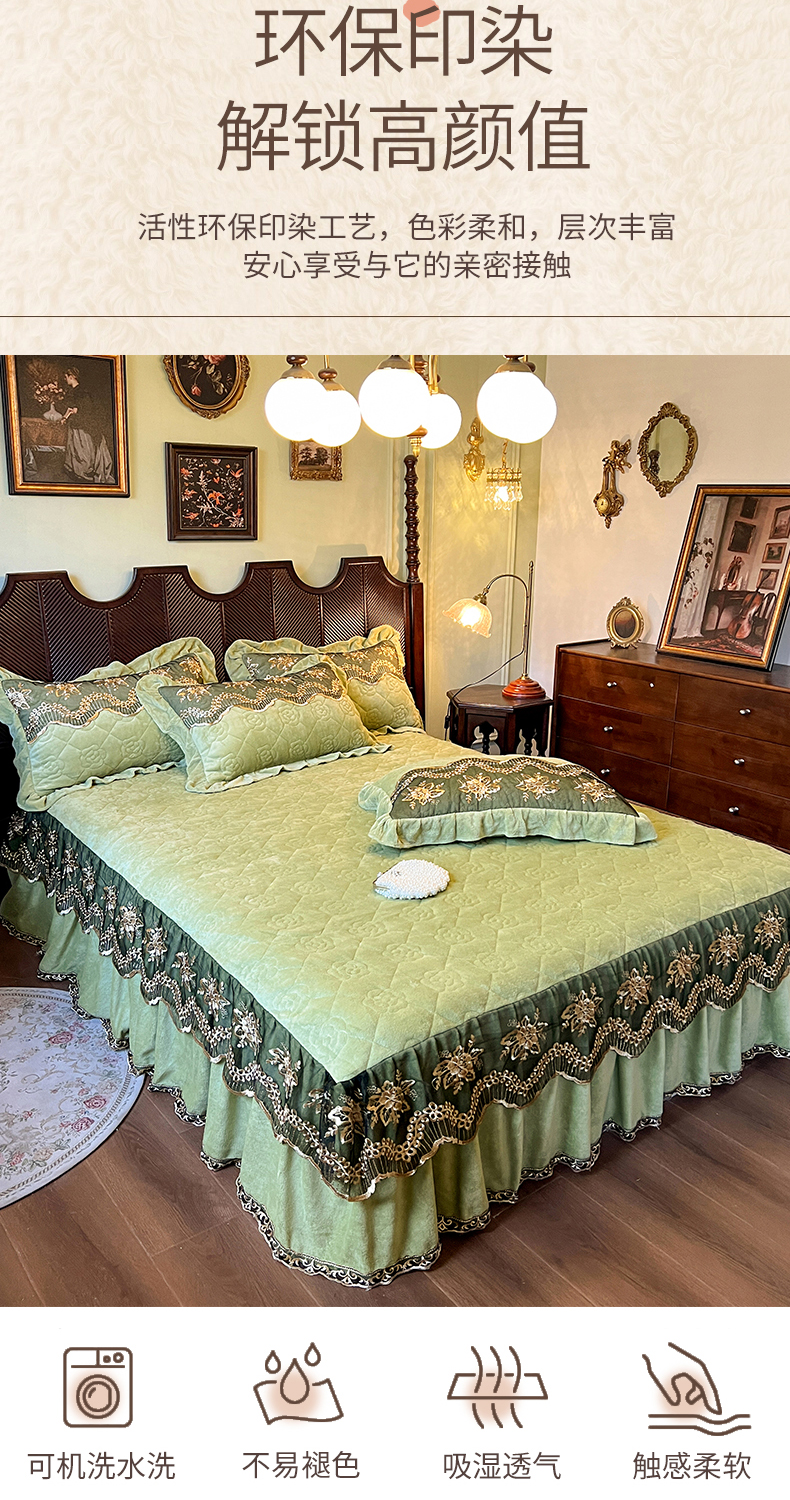 • 91家纺网 家纺一手货源 找家纺 网红馆(ck家纺) 2025新款高克重牛奶绒单床裙 床裙单件卡妮娜系列 卡妮娜-绿色