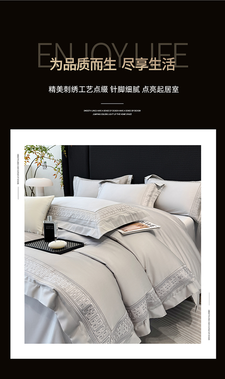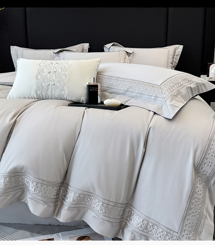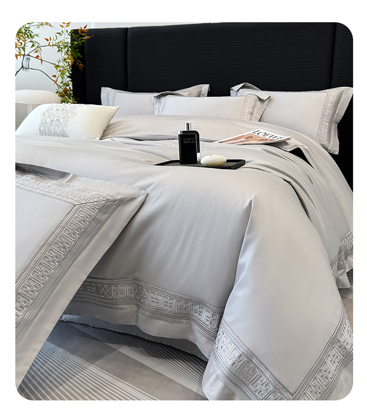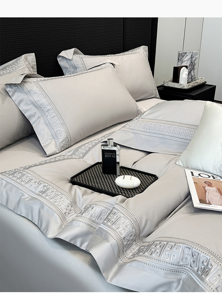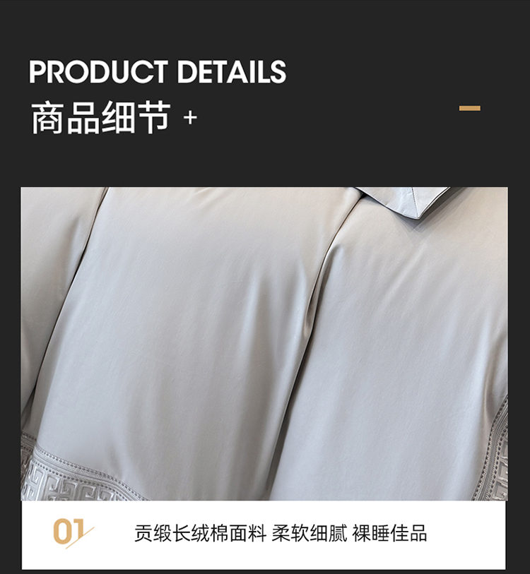 当前位置: 91家纺网 > 商品网购 > 床品套件 > 四件套 > 长绒棉四件套 > 高档礼盒装50*50S贡缎长绒棉刺绣花四件套100%纯棉全棉床单床笠款量大价优 太空灰-丽思兰顿-A类贡缎长绒棉