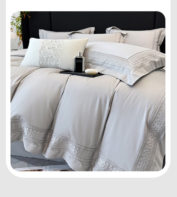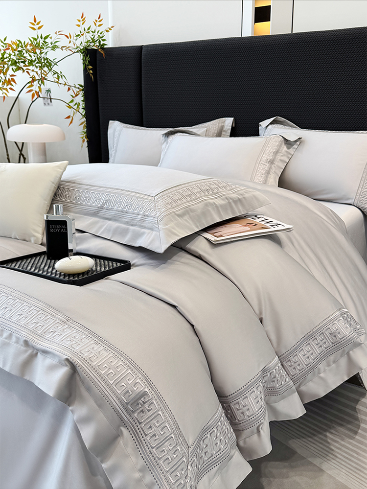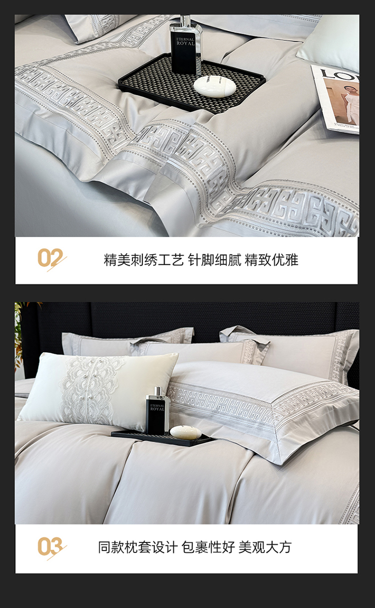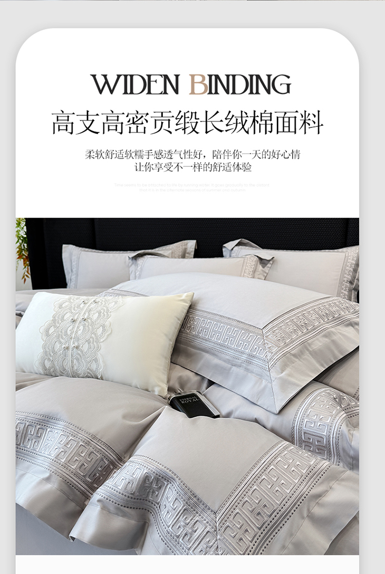 当前位置: 91家纺网 > 商品网购 > 床品套件 > 四件套 > 长绒棉四件套 > 高档礼盒装50*50S贡缎长绒棉刺绣花四件套100%纯棉全棉床单床笠款量大价优 太空灰-丽思兰顿-A类贡缎长绒棉