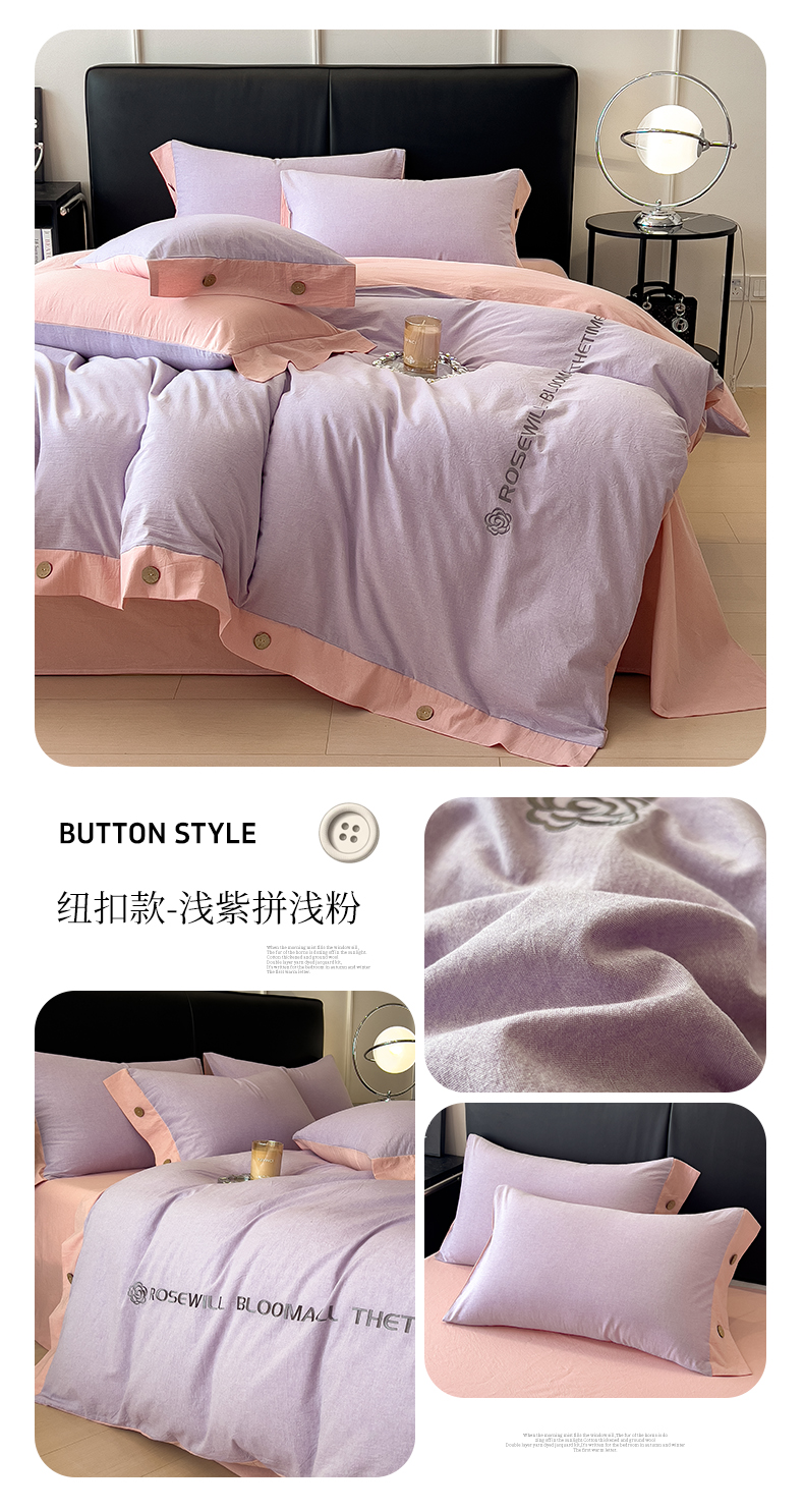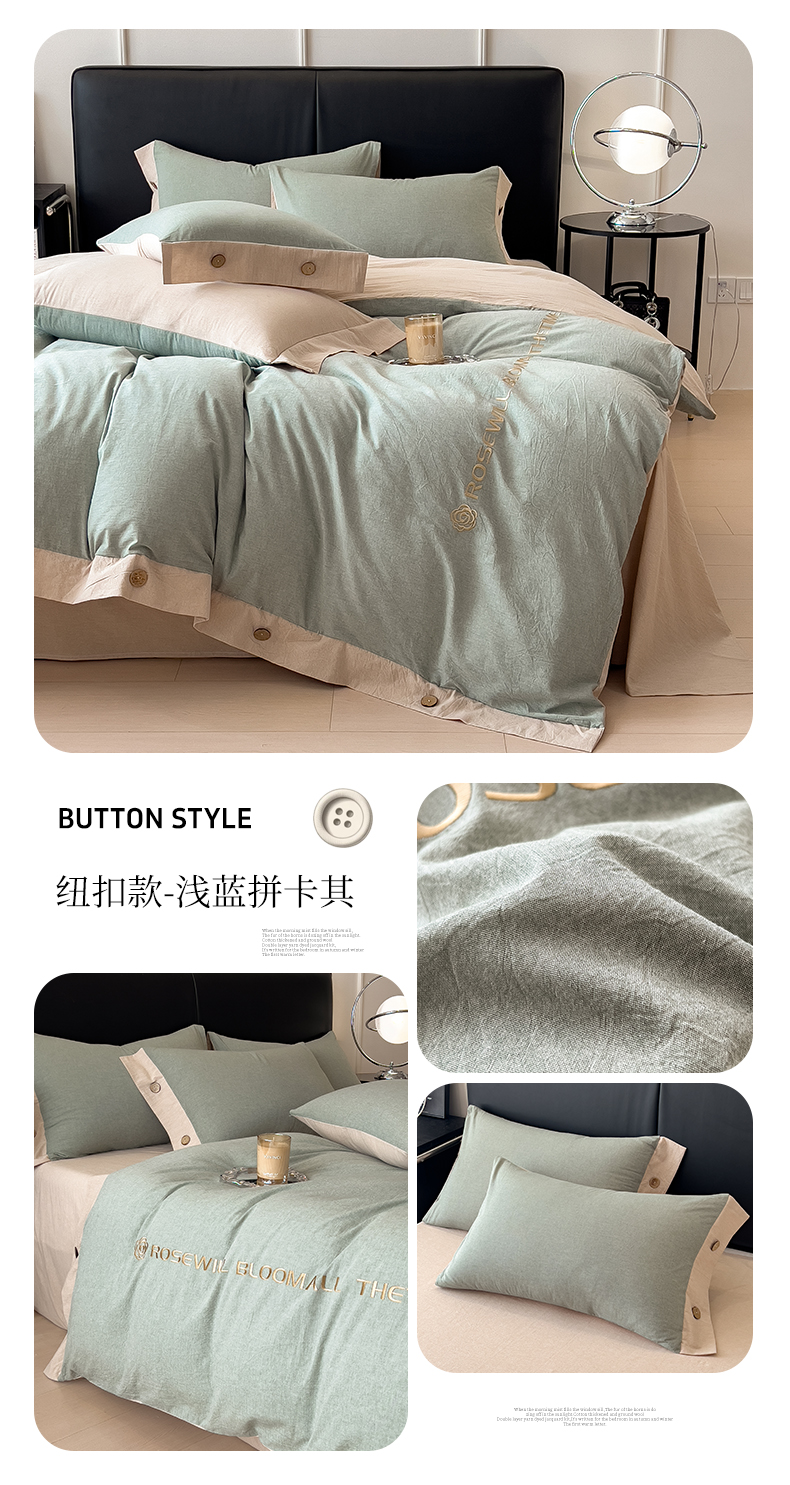 (总)芃成家纺 2025新款A类全棉色织水洗棉纽扣绣花四件套,纽扣款-白色拼浅绿,纽扣款-豆沙拼深灰,纽扣款-卡其拼浅绿,纽扣款-蓝灰拼浅灰,纽扣款-浅粉拼浅灰,纽扣款-浅灰拼卡其,纽扣款-浅蓝拼卡其,纽扣款-浅绿拼浅灰,纽扣款-浅紫拼浅粉,纽扣款-深灰拼浅灰