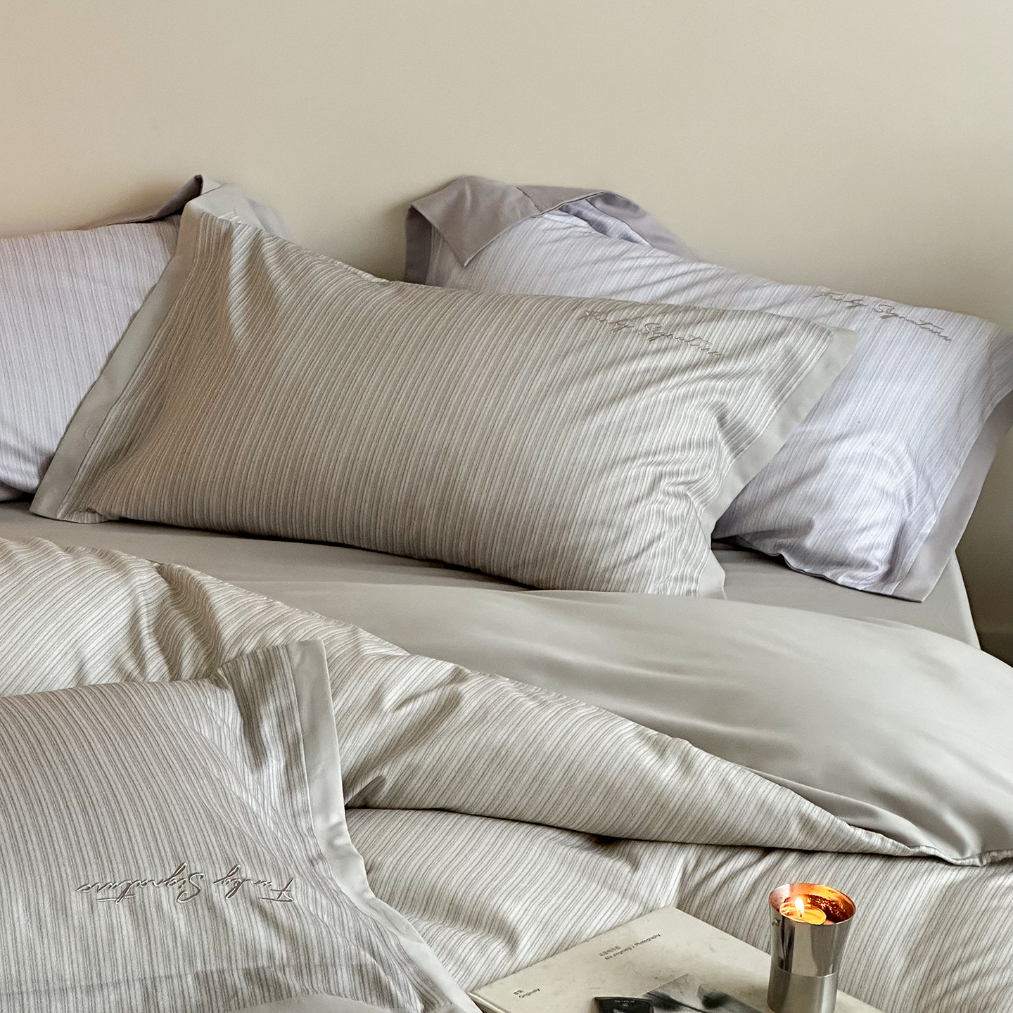 黛舒家居 2025新款天丝棉磨毛字母刺绣小宽边四件套-纪梵希 纪梵希-灰