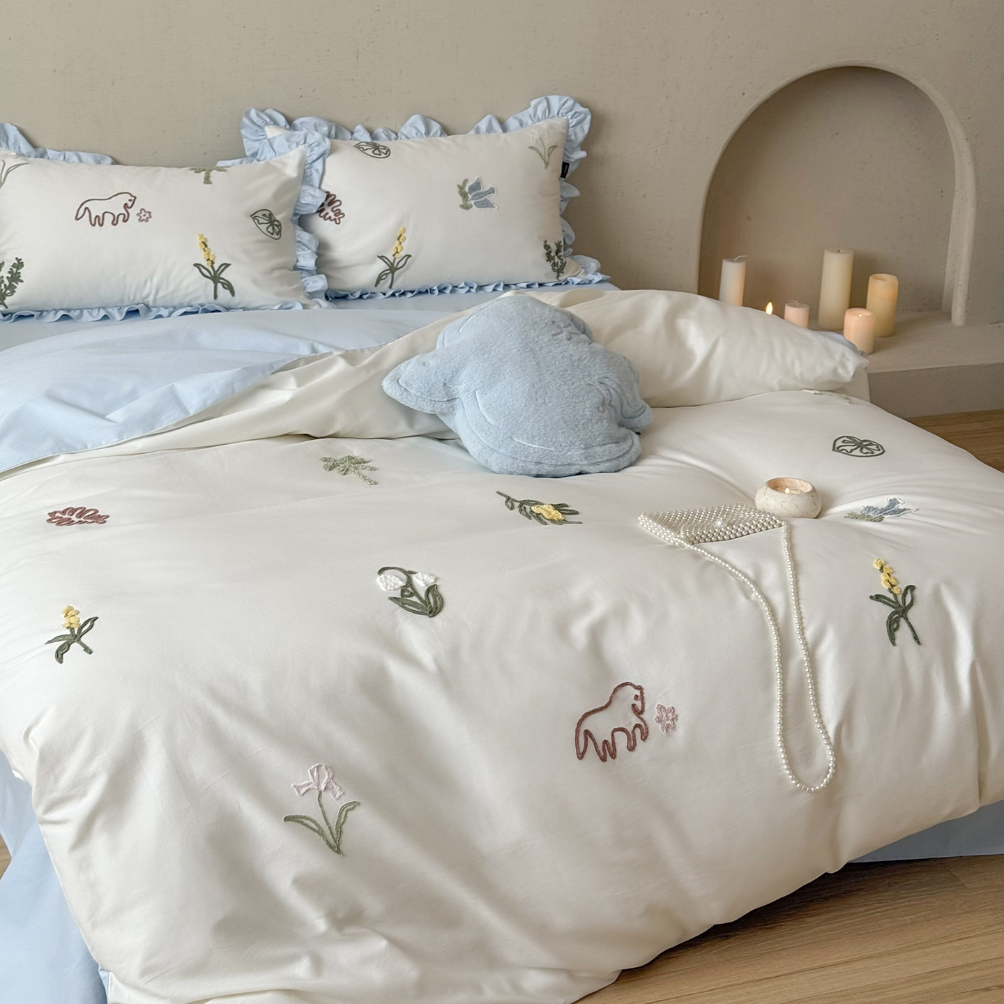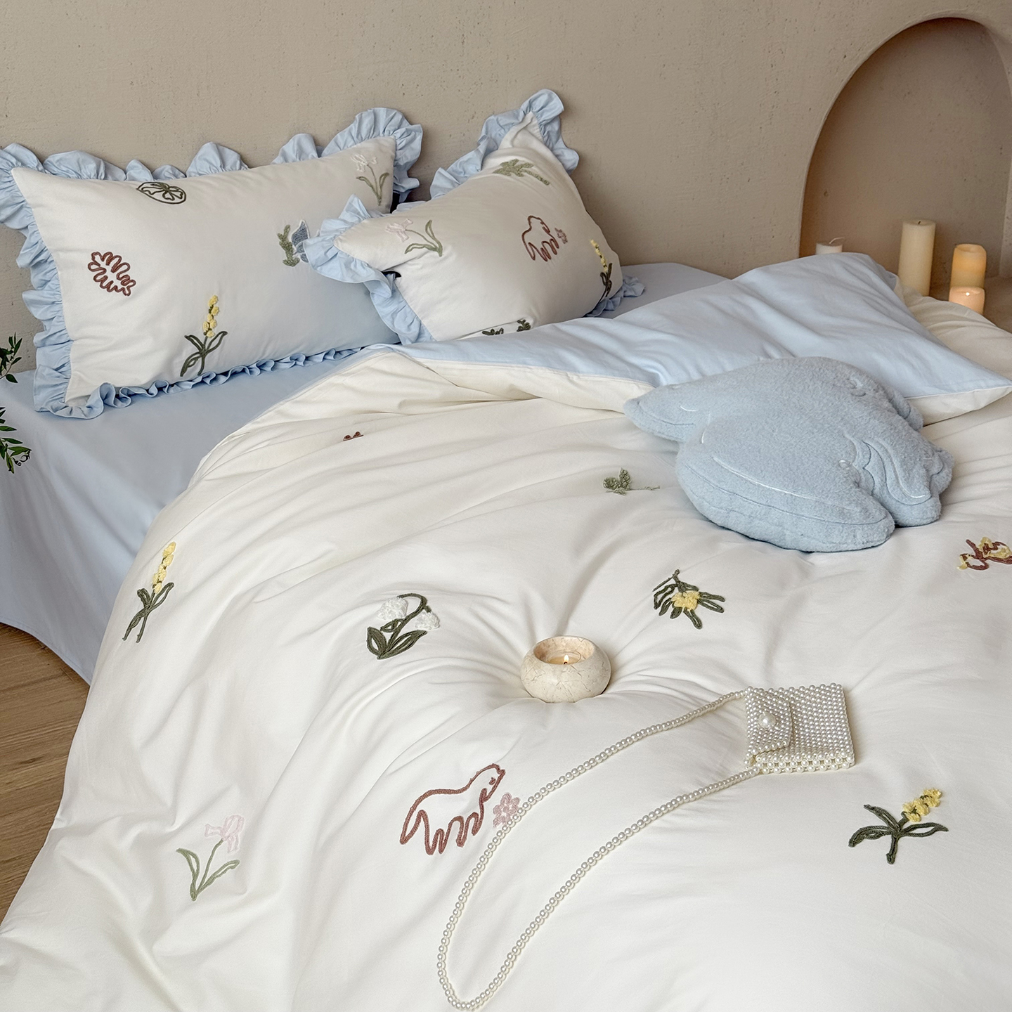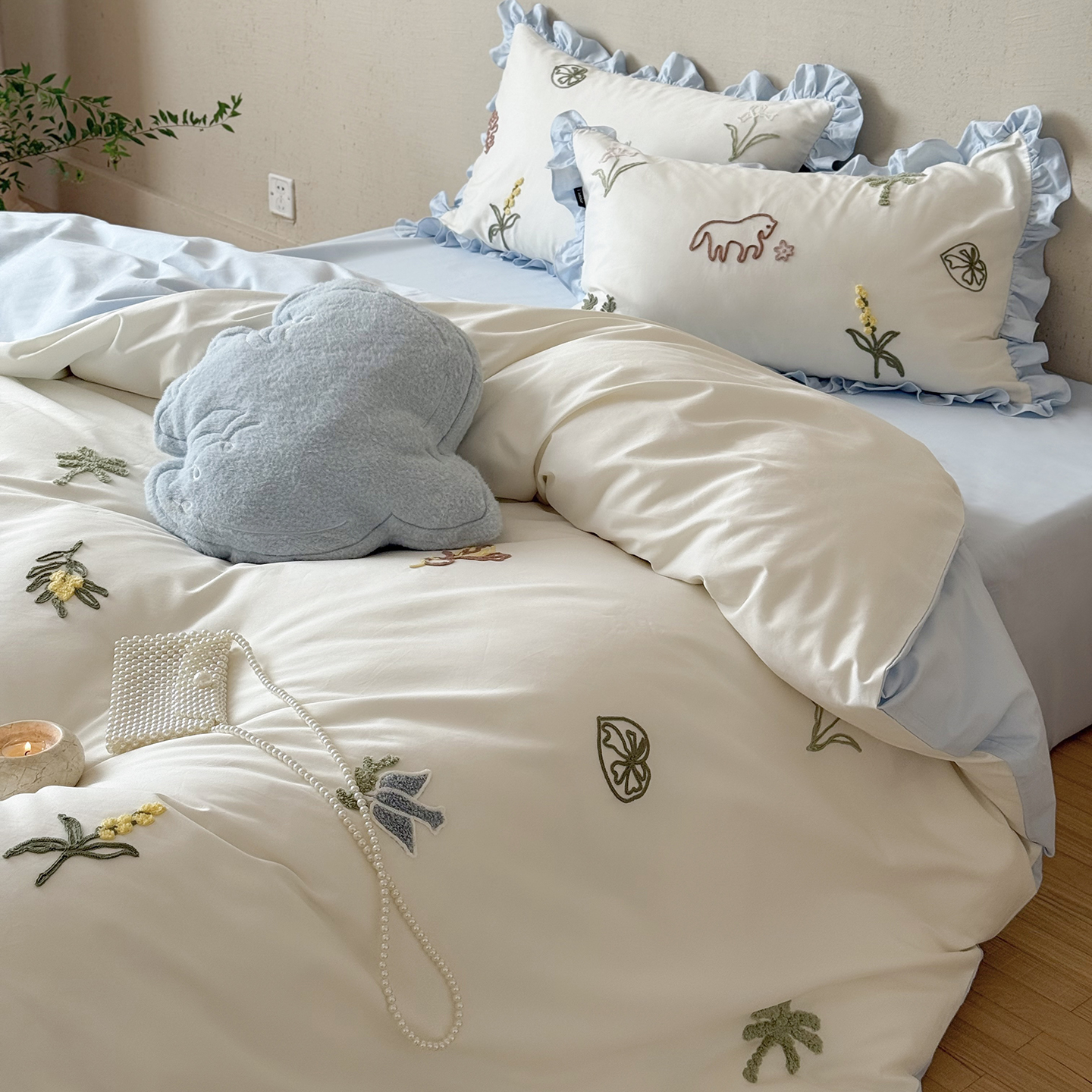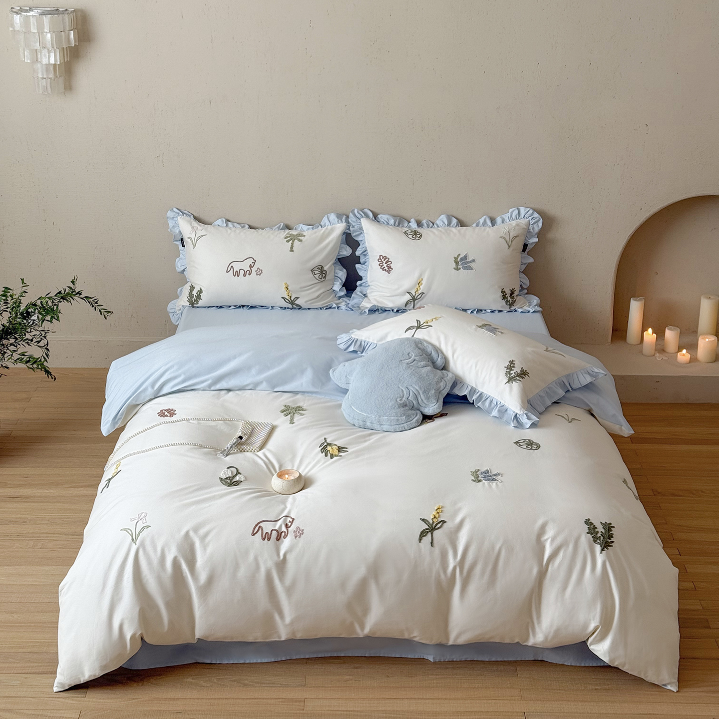 当前位置: 91家纺网 > 商品网购 > 床品套件 > 四件套 > 普通磨毛四件套 > 鹿班家居 2025新款秋冬款100S全棉磨毛毛巾绣系列四件套-海盐梦境-场景二(标准会员-20元) 海盐梦境-蓝色