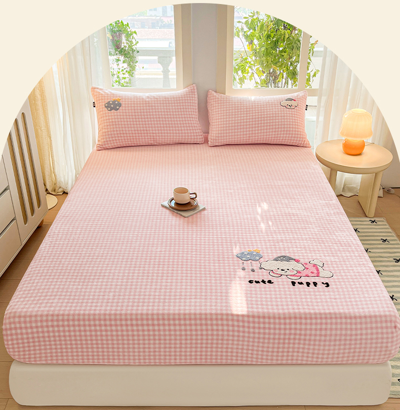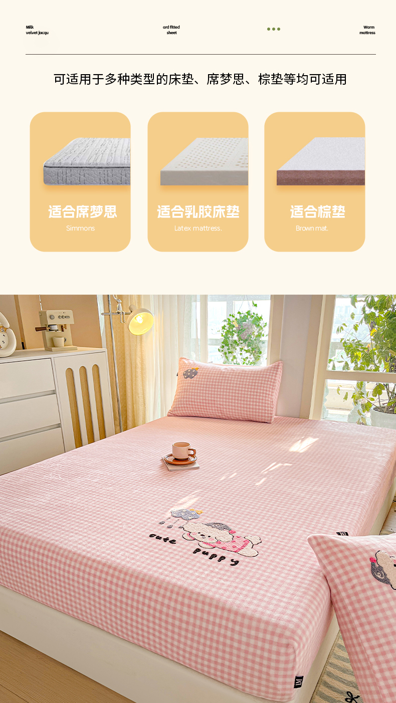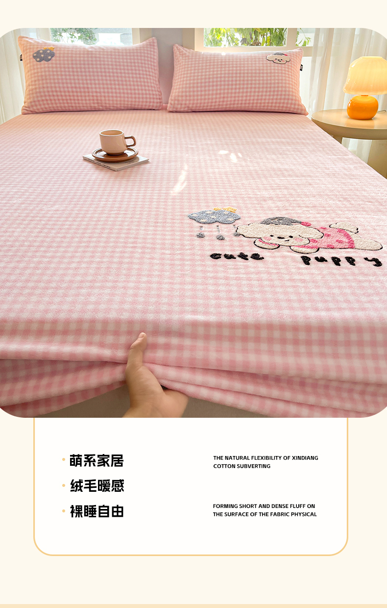 佳汐蓝家纺 2025新款秋冬220克毛巾绣绣牛奶绒床笠三件套 云朵比熊