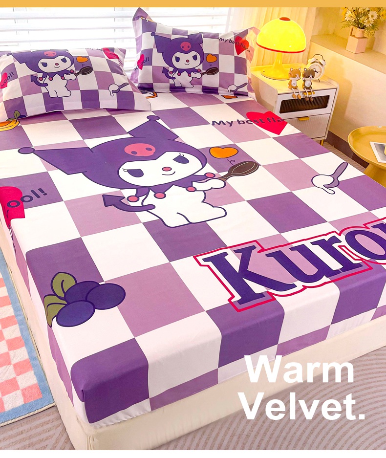 (总)一电 2025新款冬季双面牛奶珊瑚绒床上四件套法兰绒床品加绒被套床单三件套-第三批,公主库洛米,天使库洛米,甜筒库洛米,小兔子,圆点库洛米