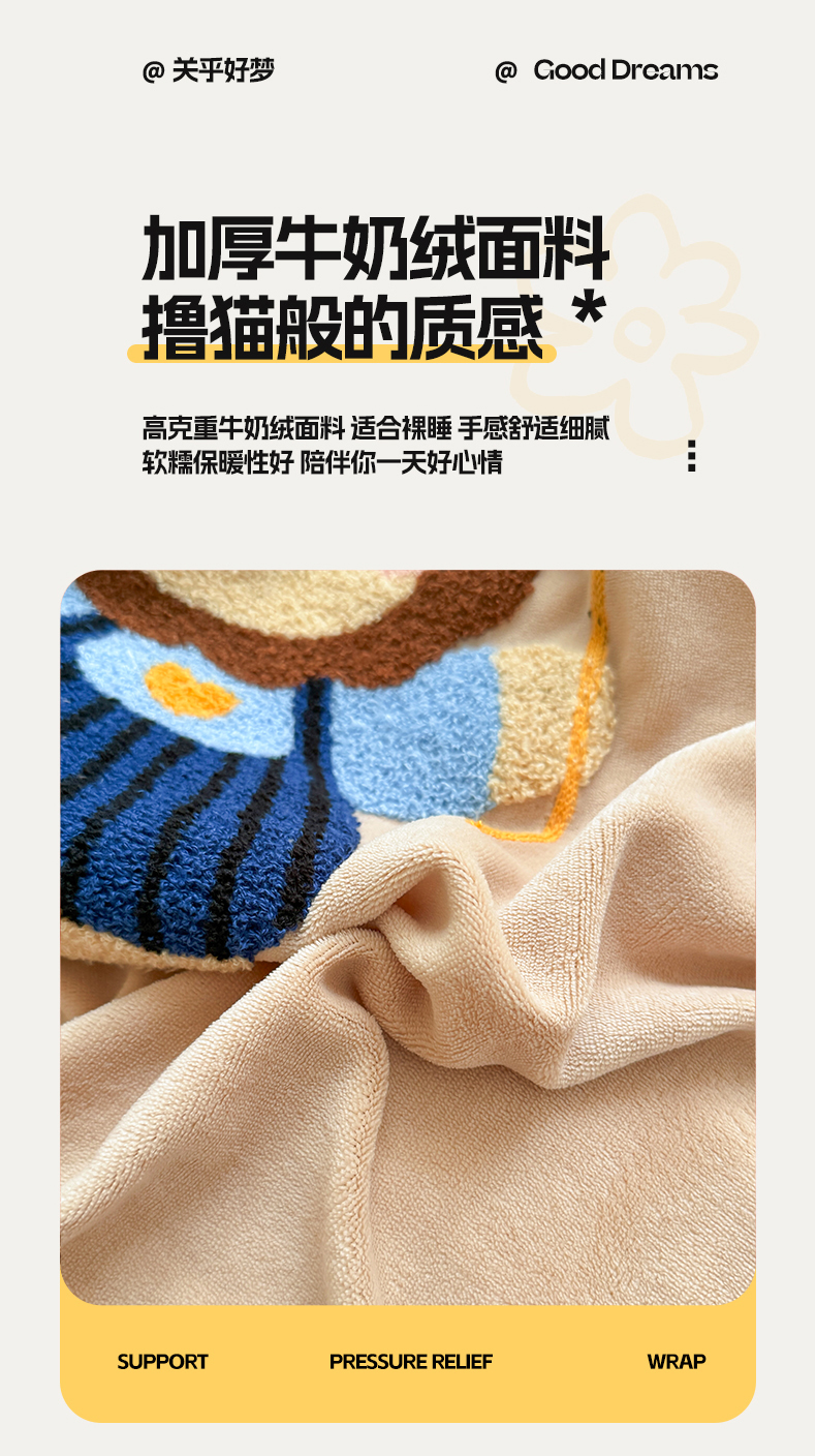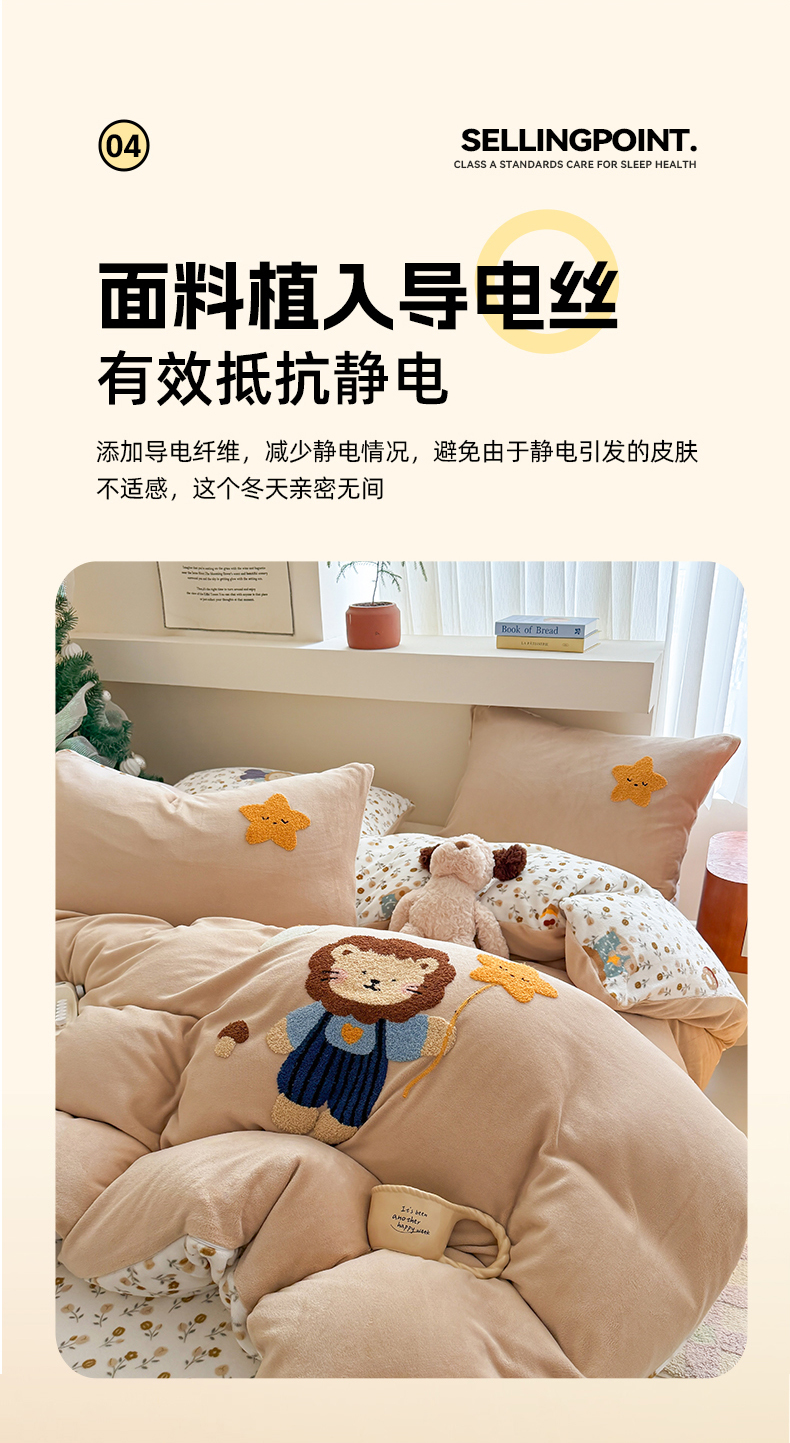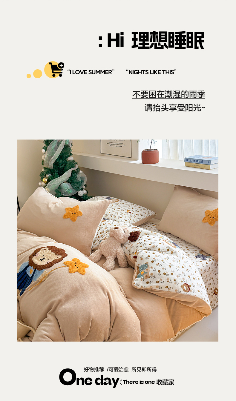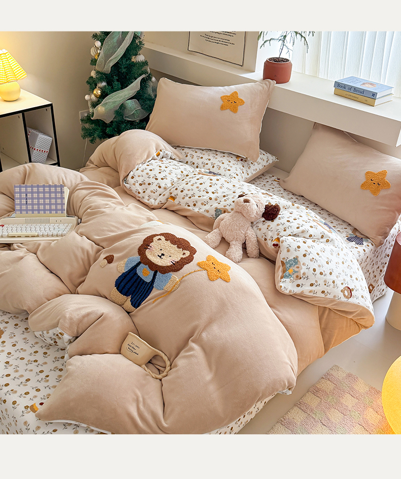 商品名称:艾特你 2025新款毛巾绣200克牛奶绒卡通毛巾绣四件套 小狮子