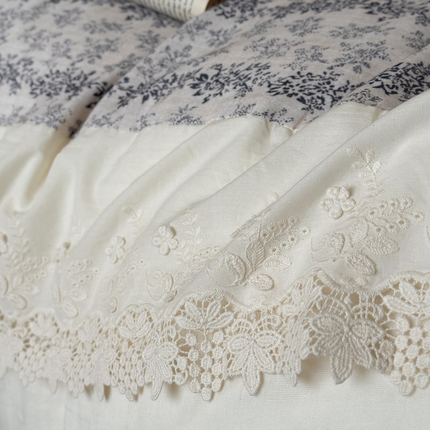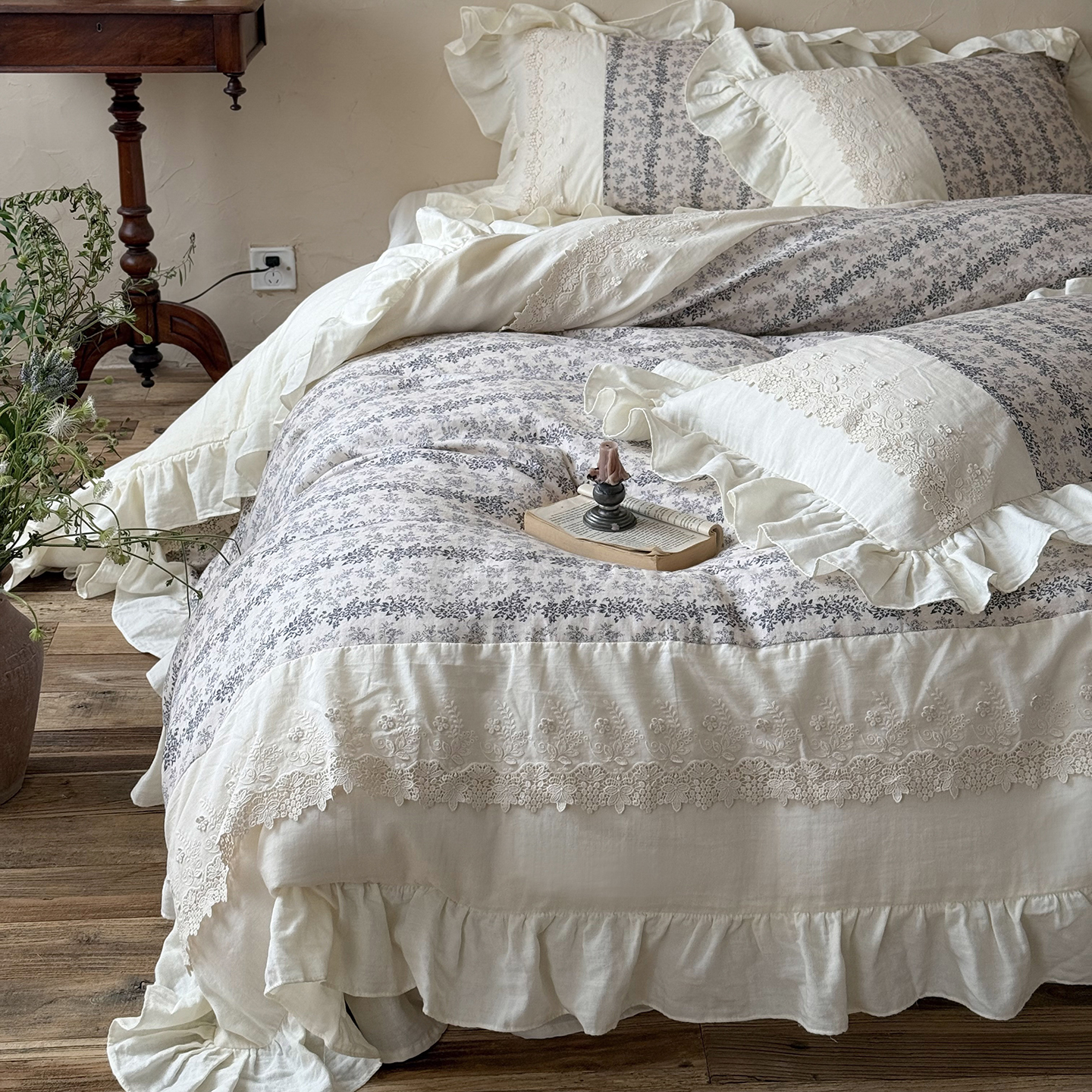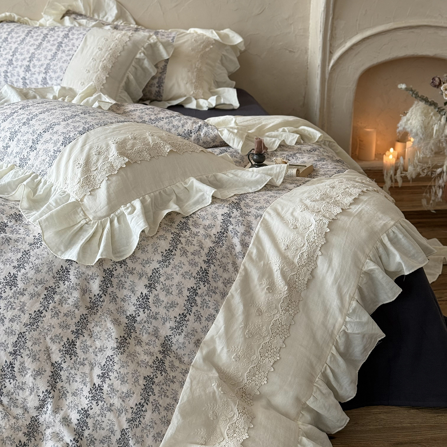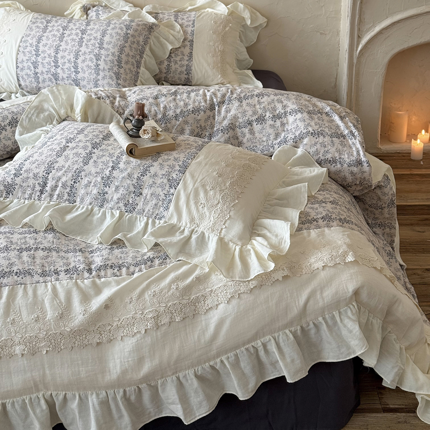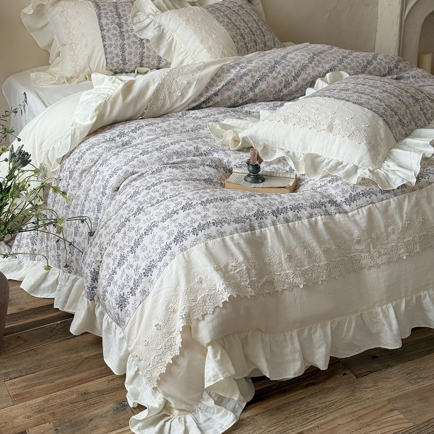 (总)佳汐蓝 2025春夏新品双层皱皱纱刺绣+荷叶边四件套--花与浔,奶白,天蓝