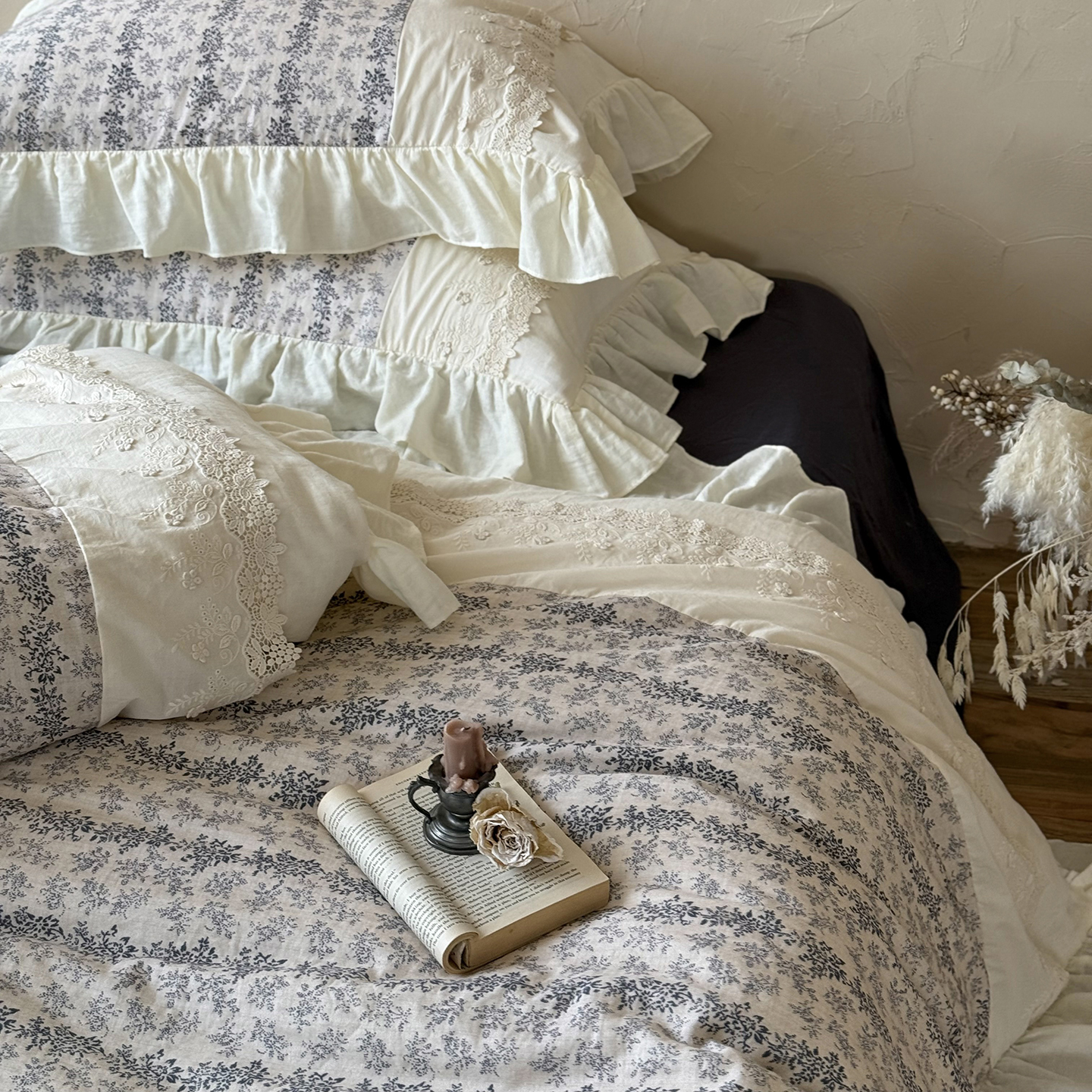 (总)佳汐蓝家纺 2025秋冬新品双层皱皱纱定制花边+打褶+荷叶边四件套--露丝