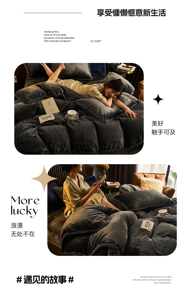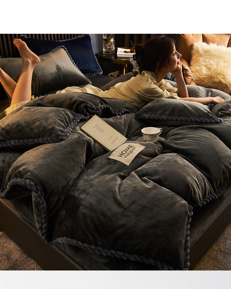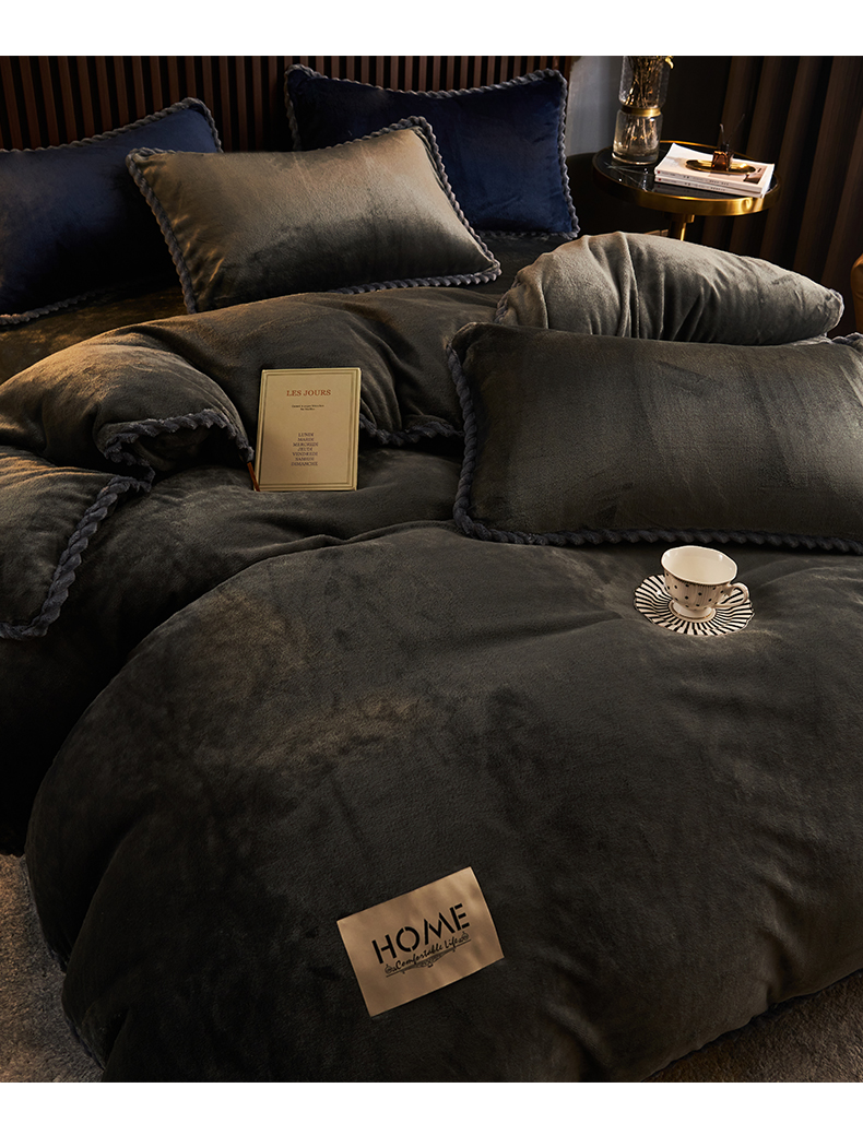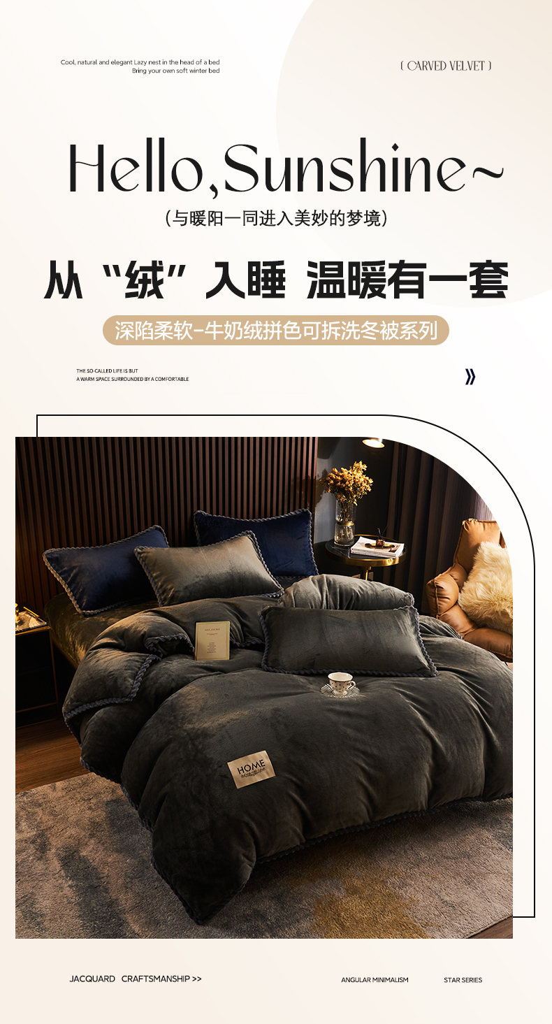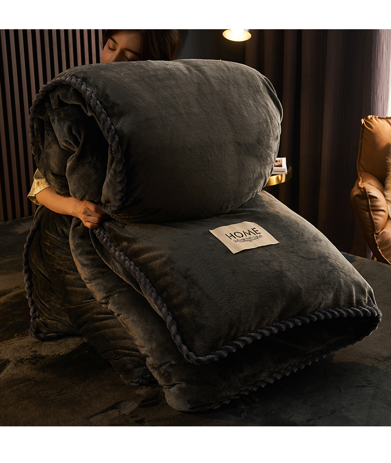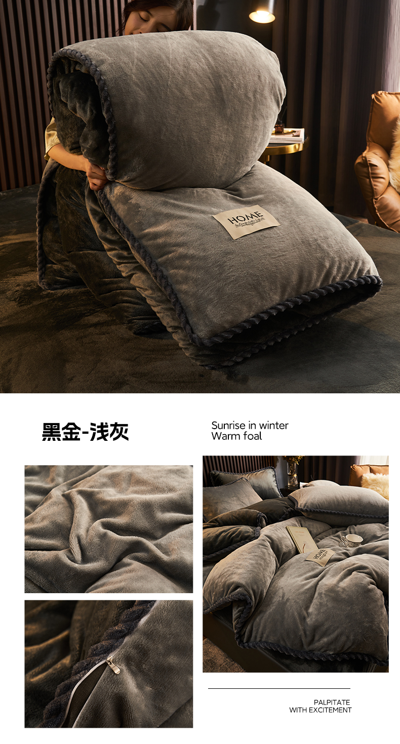 • 91家纺网 家纺一手货源 找家纺 早晨家纺 2025新款黑金牛奶绒纯色可拆洗冬被风格2 黑金-深灰