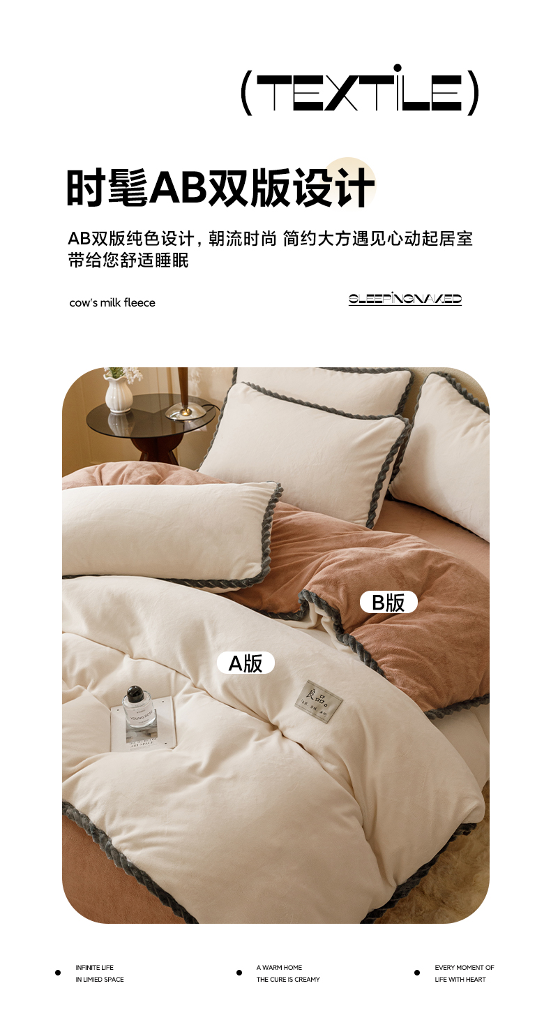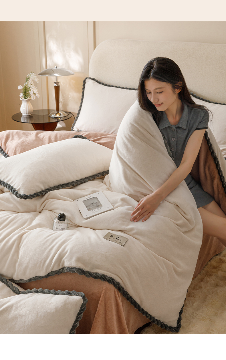 • 91家纺网 家纺一手货源 找家纺 早晨家纺 2025新款纯色双拼牛奶绒-可拆卸冬被 双拼奶白+奶茶咖