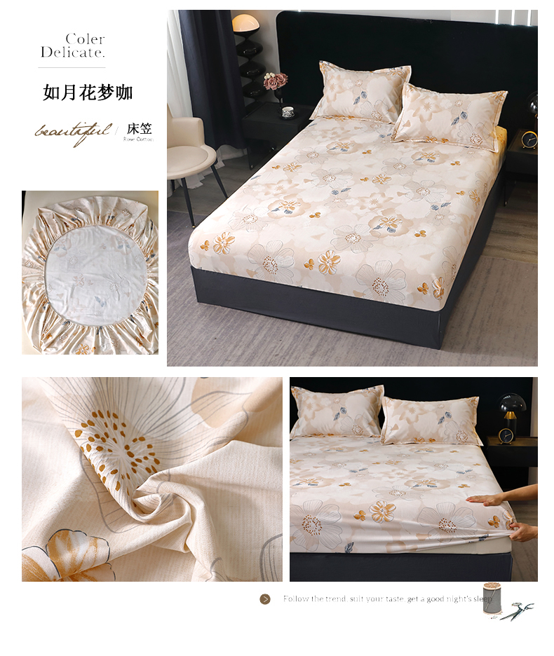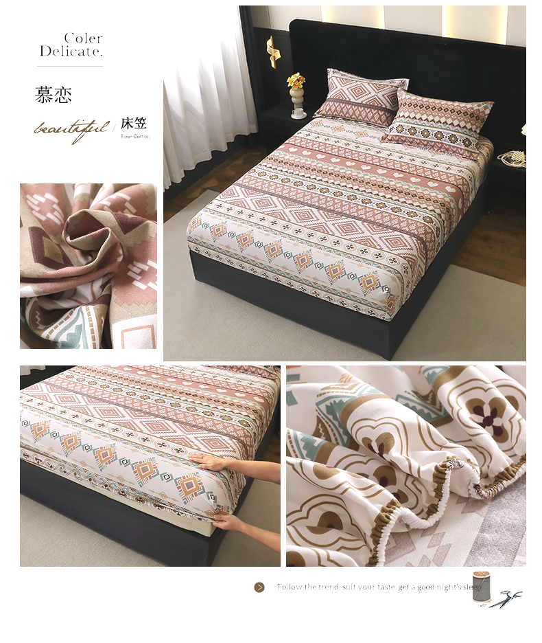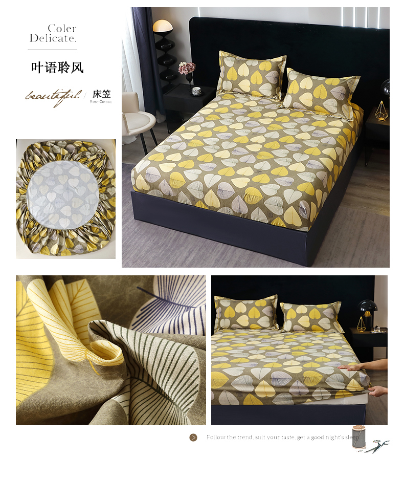 晶缦家纺 2025叶语系·纯棉活性全棉磨毛单笠单品床笠床笠单件 情怀粉