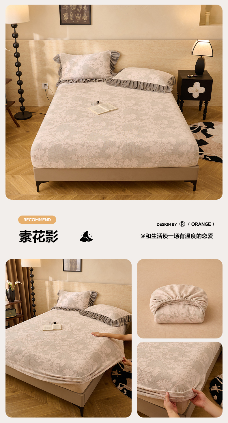 • 91家纺网 家纺一手货源 找家纺 早晨家纺 2025新款高克重牛奶绒烂花单床笠 叶语灰