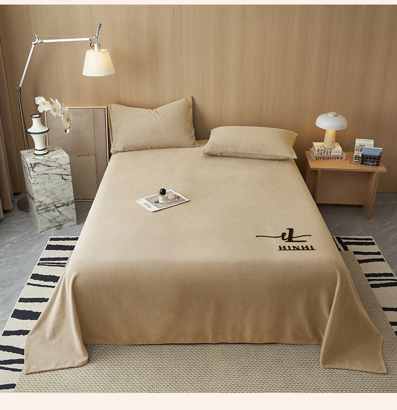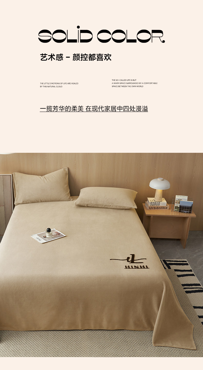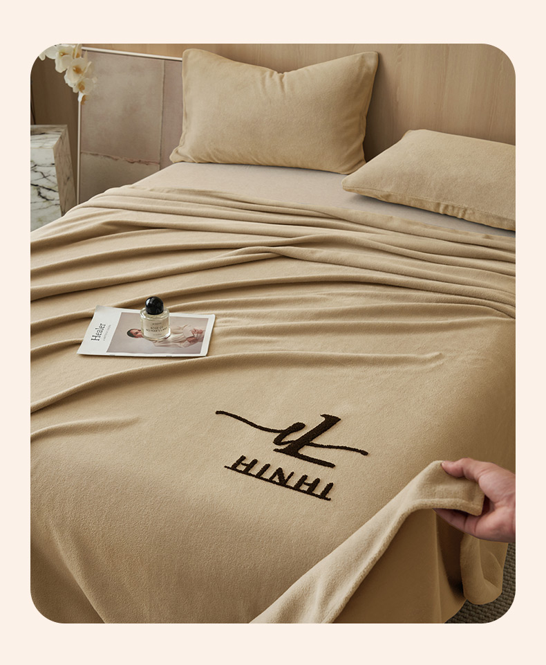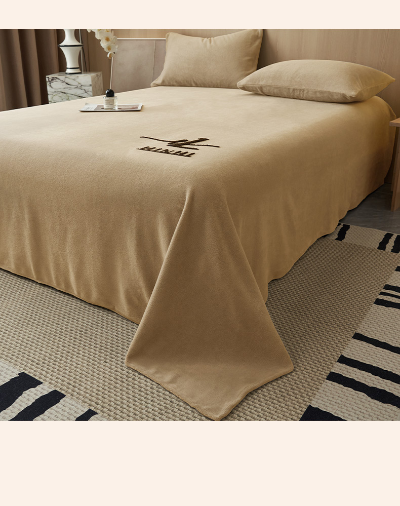 • 91家纺网 家纺一手货源 找家纺 早晨家纺 2025新款牛奶绒纯色毛巾绣暖绒床单 时尚-米驼