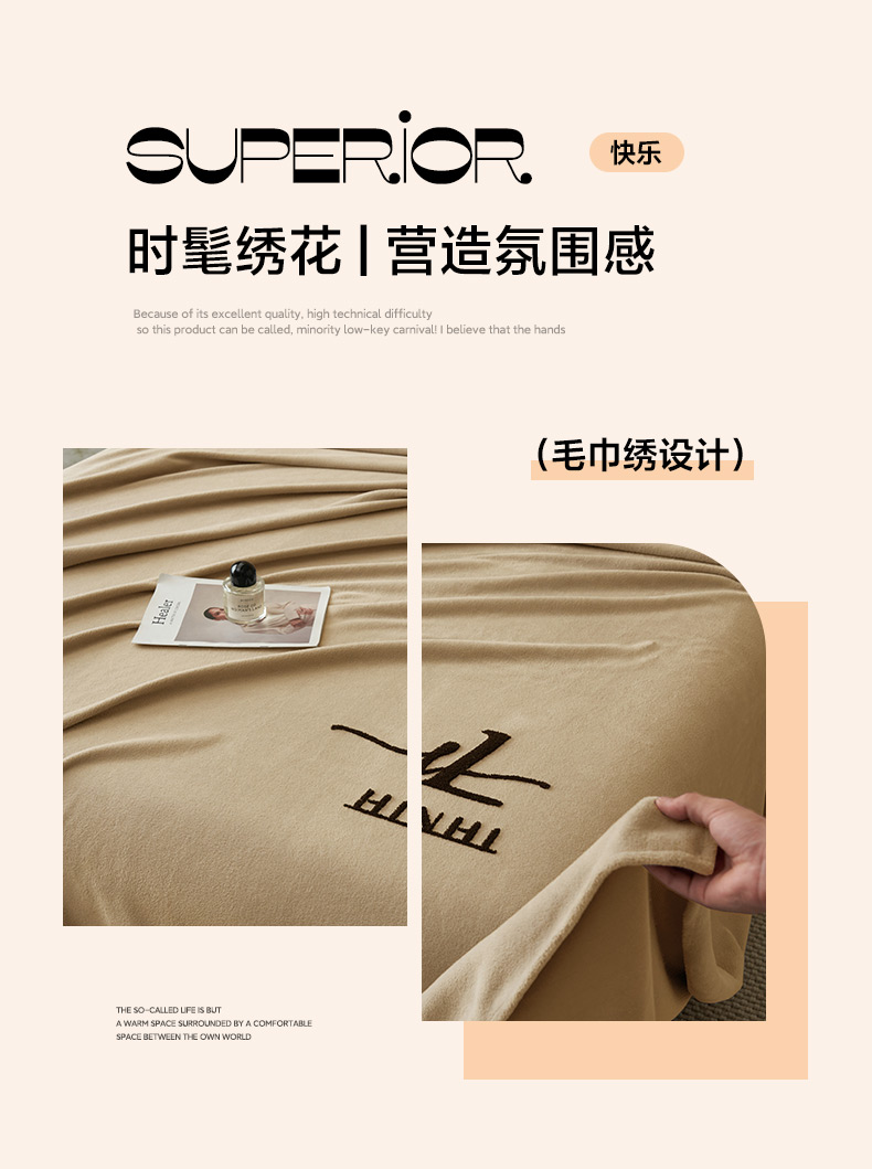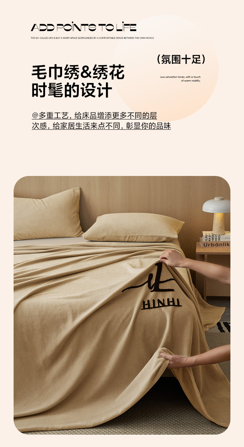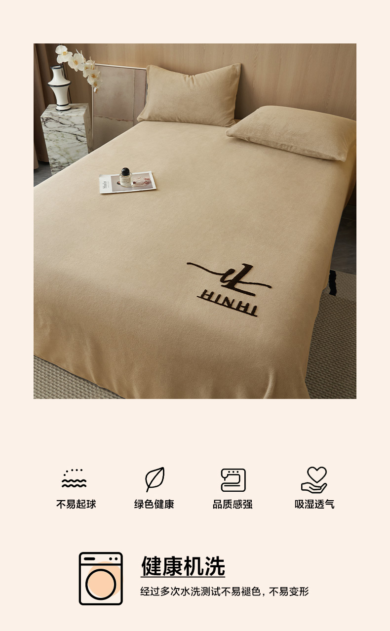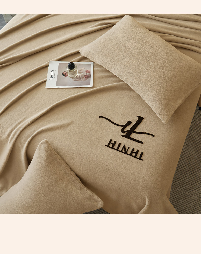 • 91家纺网 家纺一手货源 找家纺 早晨家纺 2025新款牛奶绒纯色毛巾绣暖绒床单 时尚-米驼