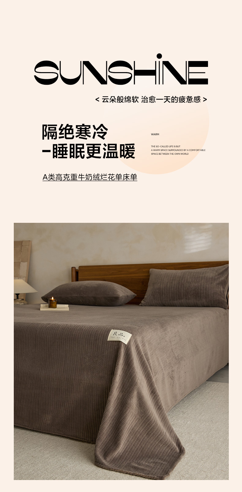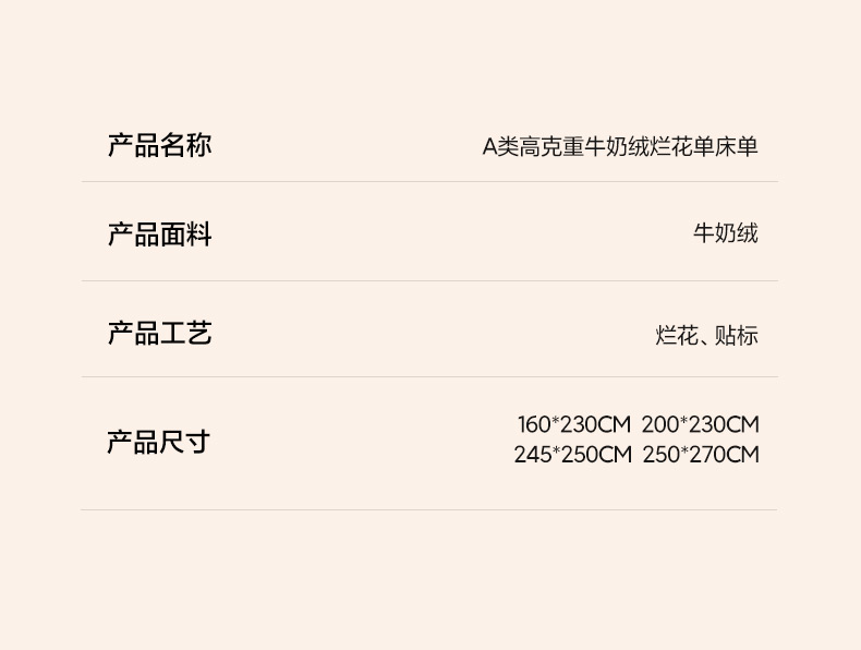 • 91家纺网 家纺一手货源 找家纺 早晨家纺 2025新款红金龙纯色烂花牛奶绒床单 恬憩-米驼