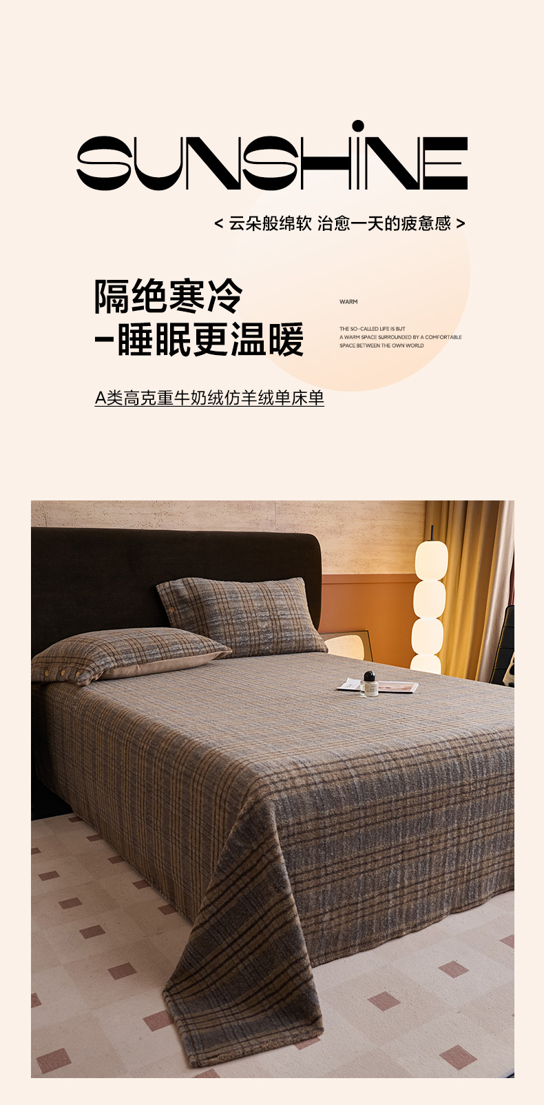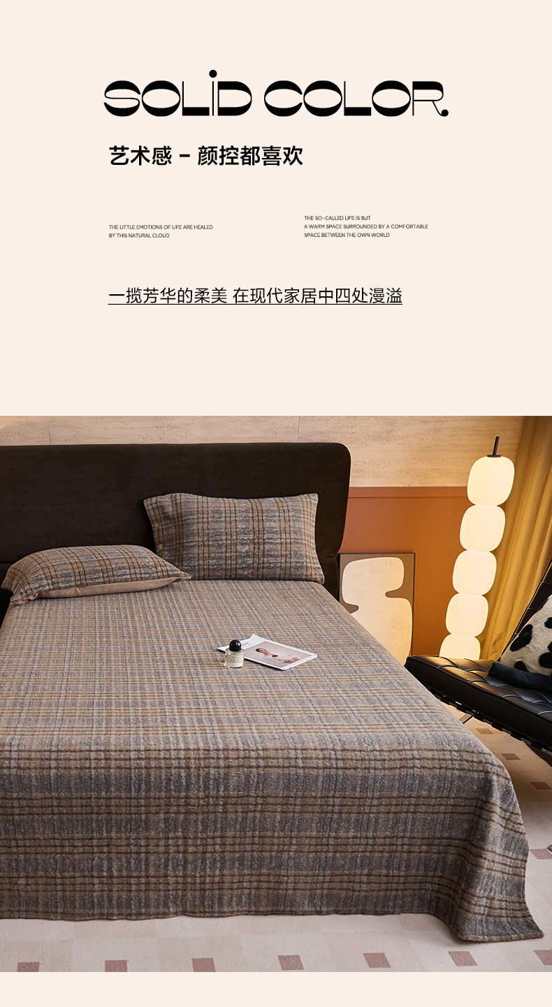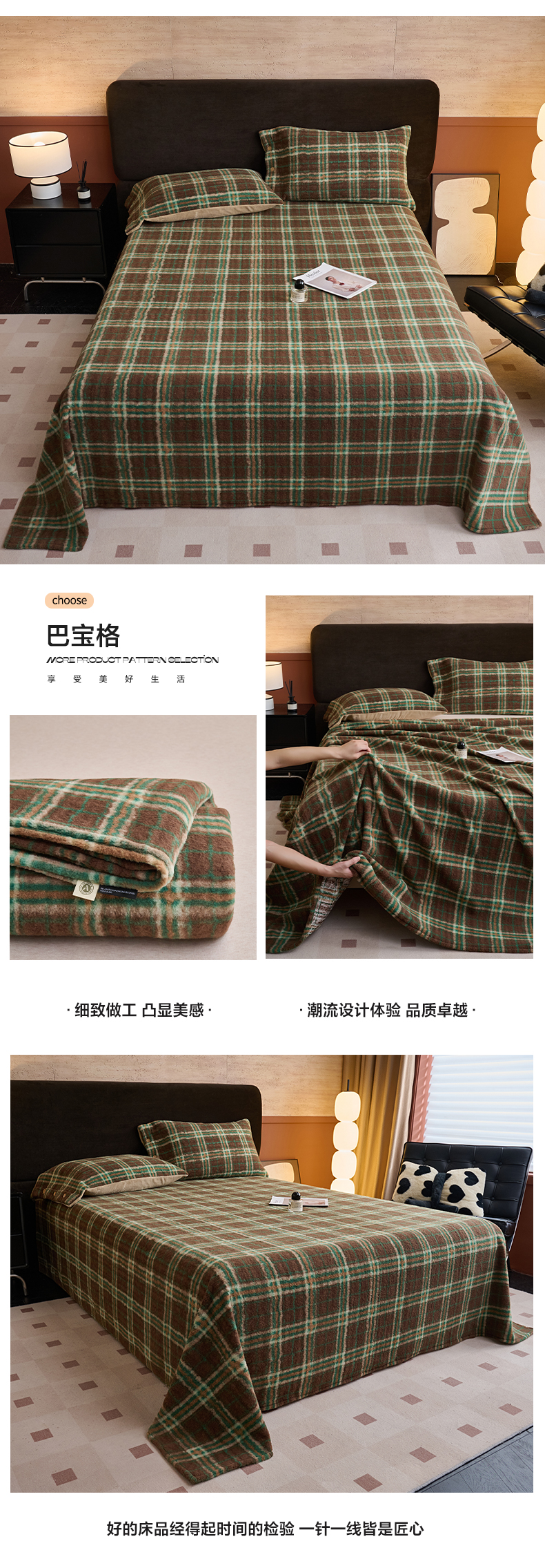 早晨家纺 2025新款230g羊驼绒复古格牛奶绒床单 牧羊格