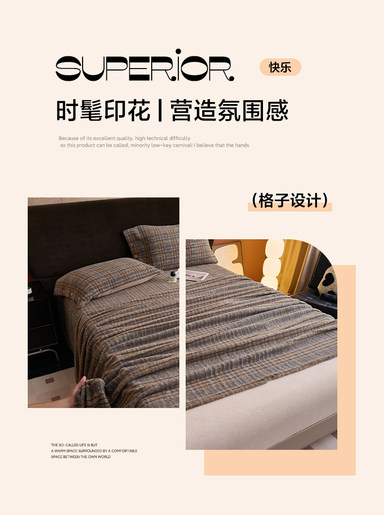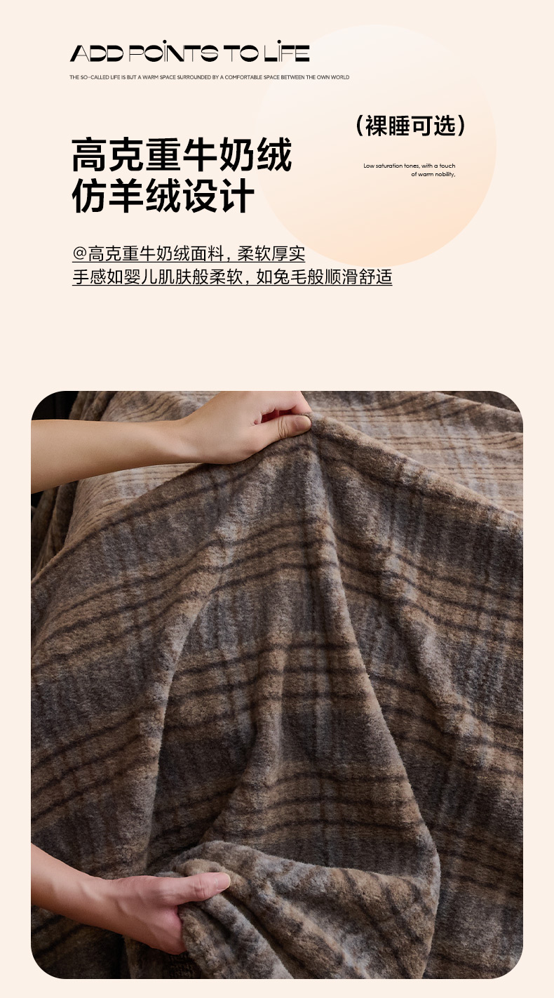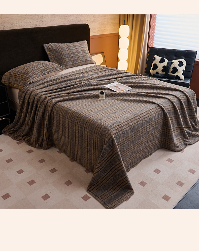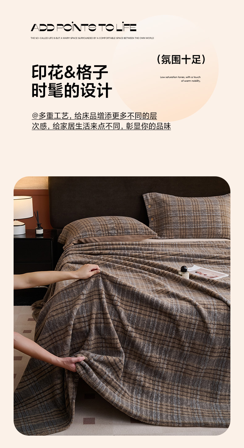 早晨家纺 2025新款230g羊驼绒复古格牛奶绒床单 牧羊格