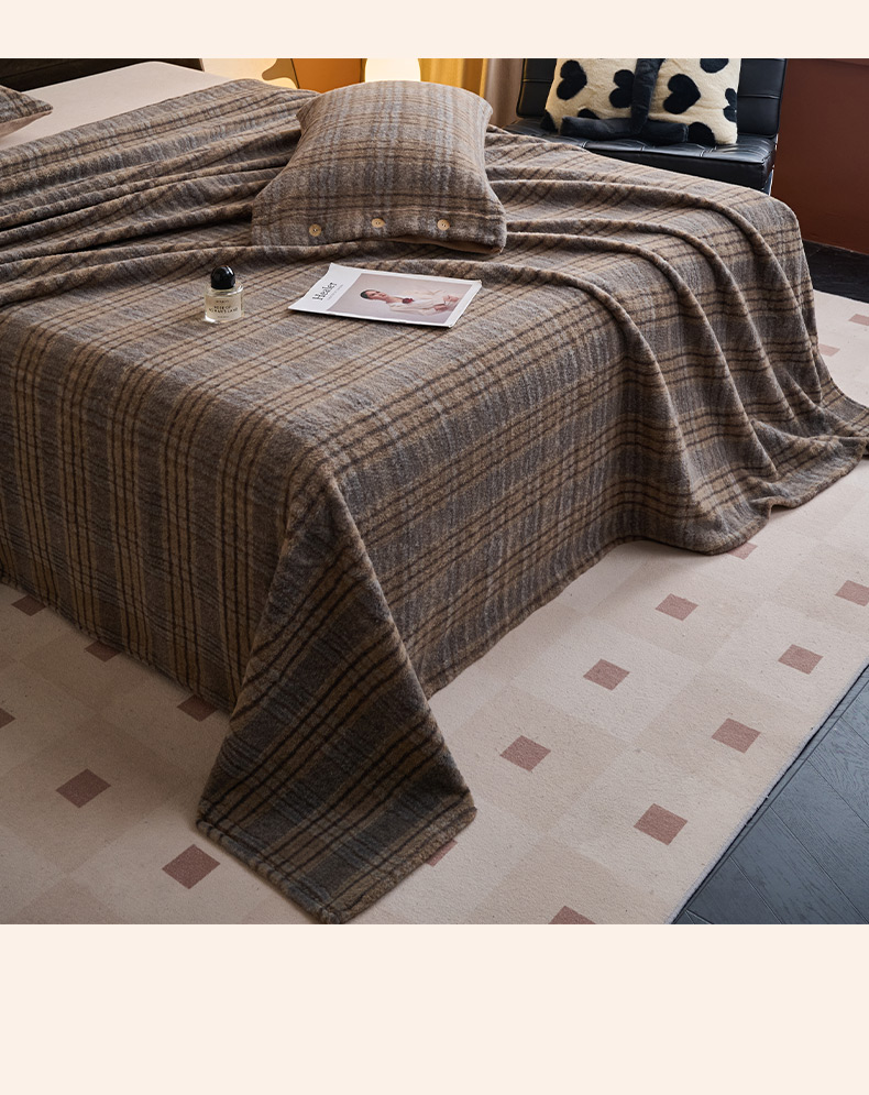 商品名称:早晨家纺 2025新款230g羊驼绒复古格牛奶绒床单 牧羊格