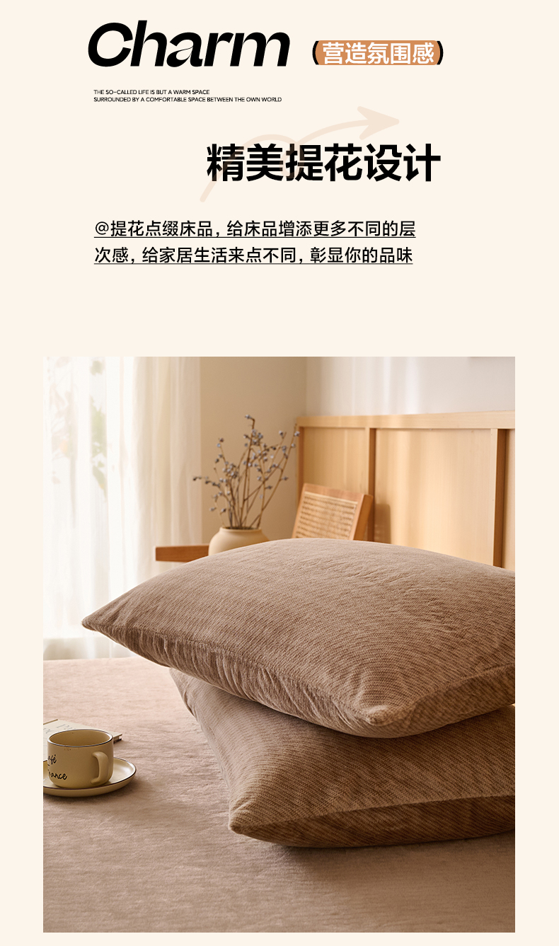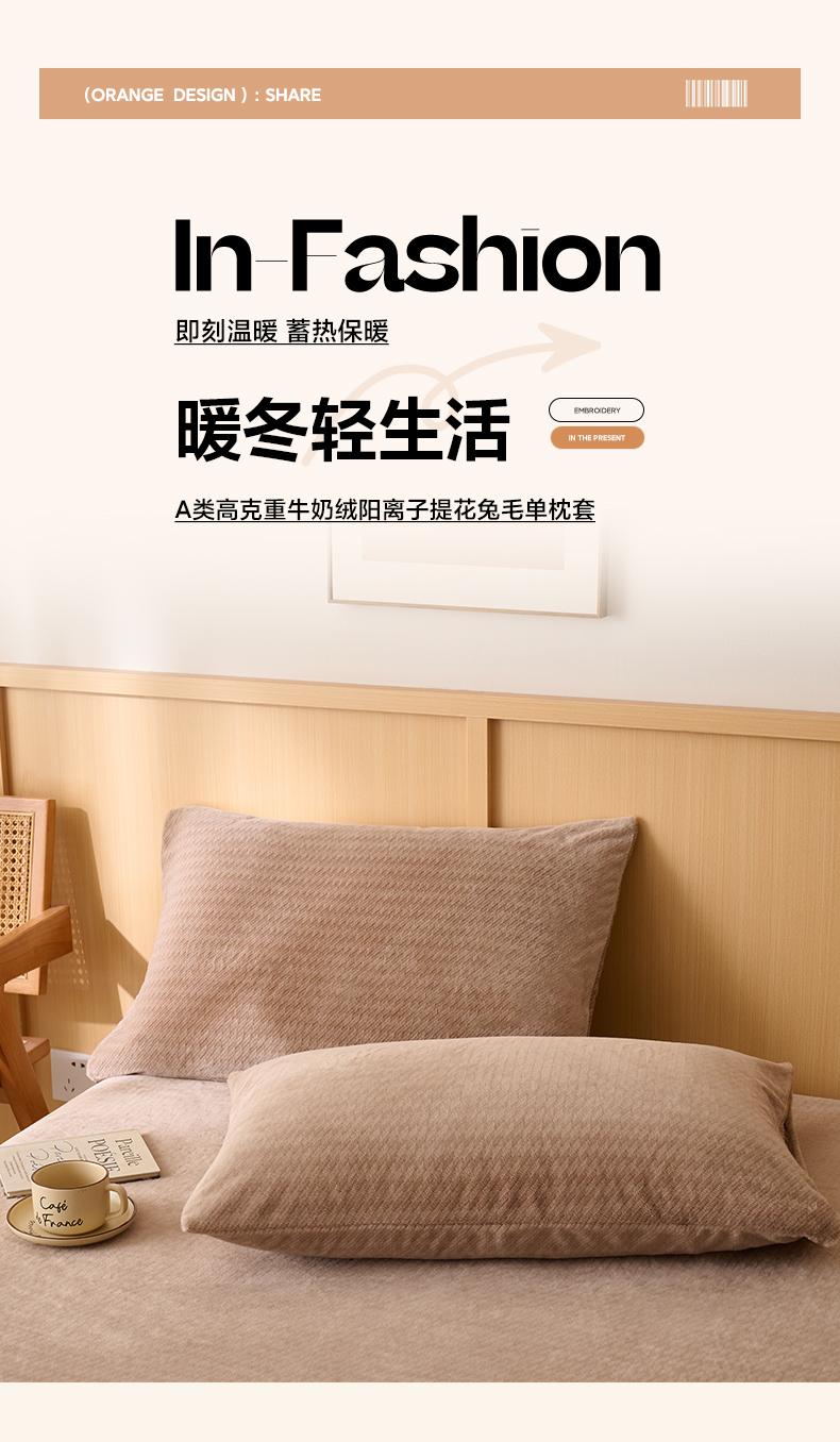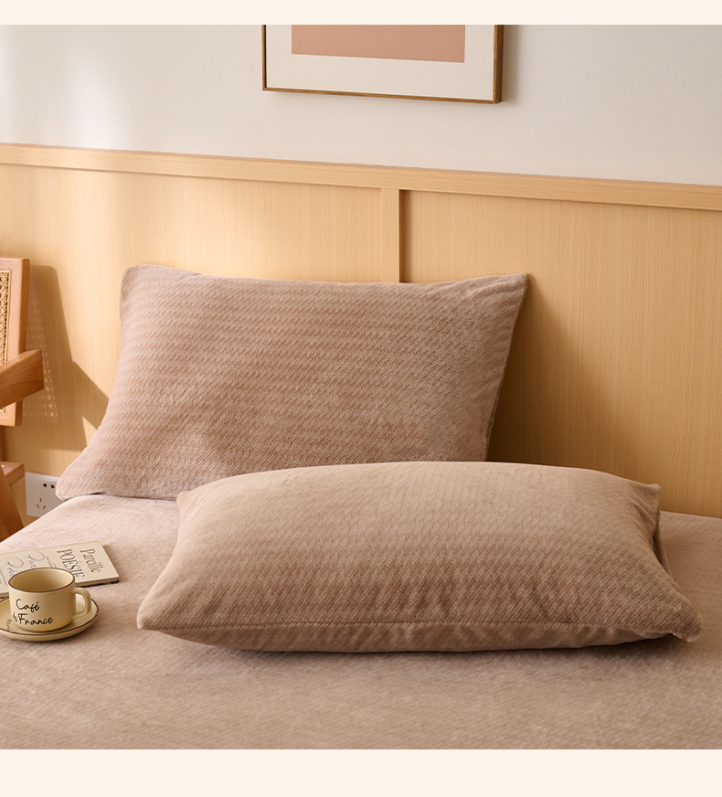 商品名称:早晨家纺 2025新款流星款高克重牛奶绒阳离子提花兔毛单枕套 流星-奶茶咖