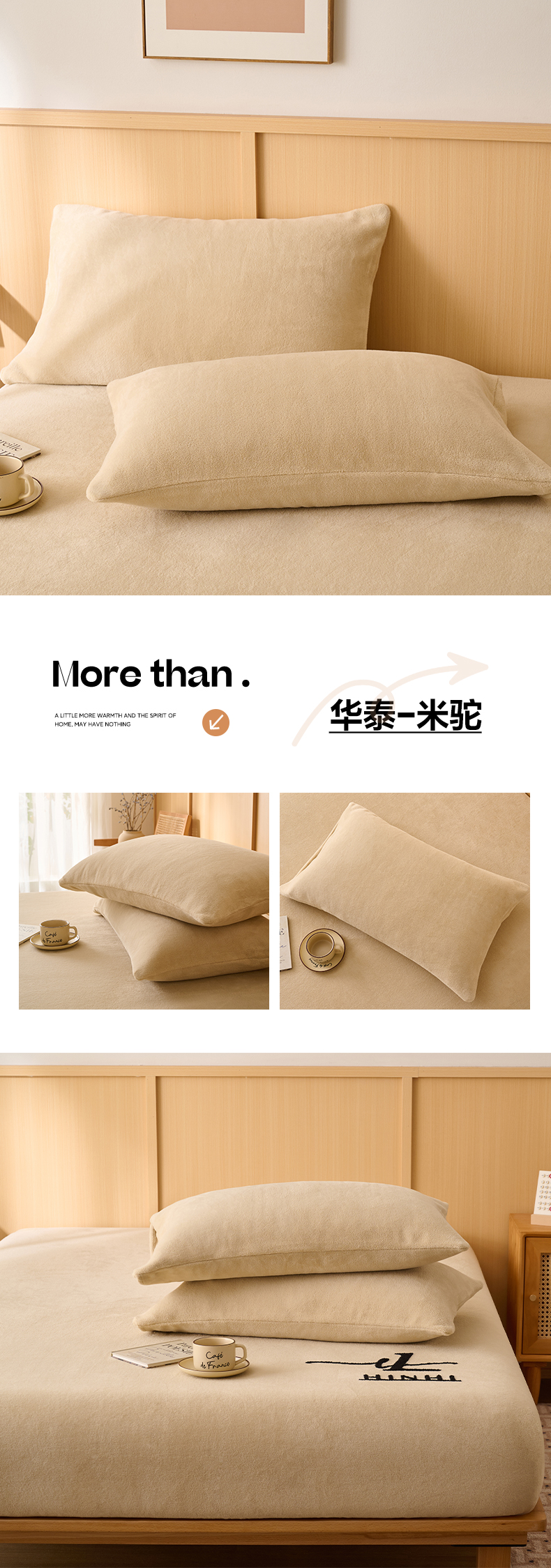早晨家纺 2025新款华泰款高克重牛奶绒仿羊绒单枕套 华泰-玉