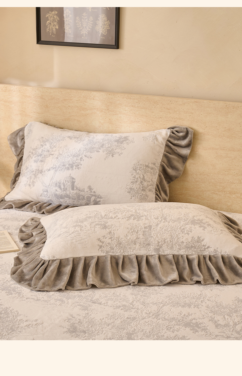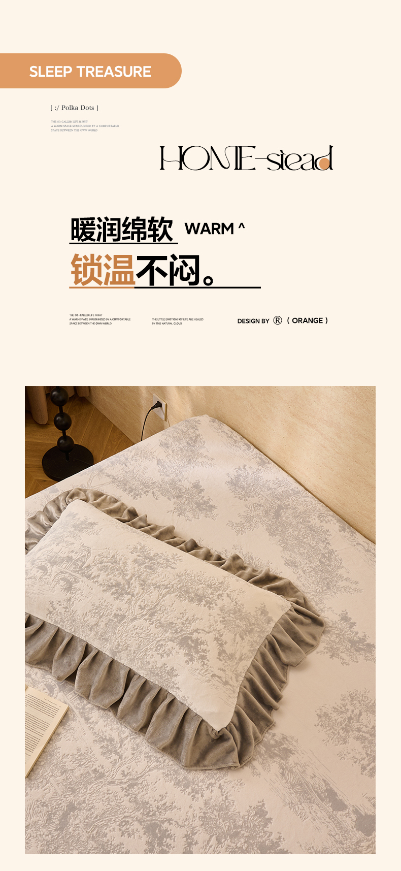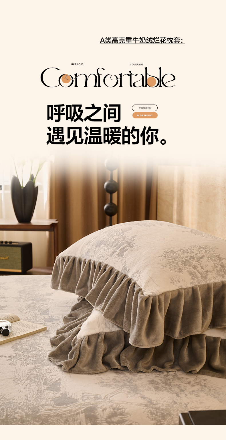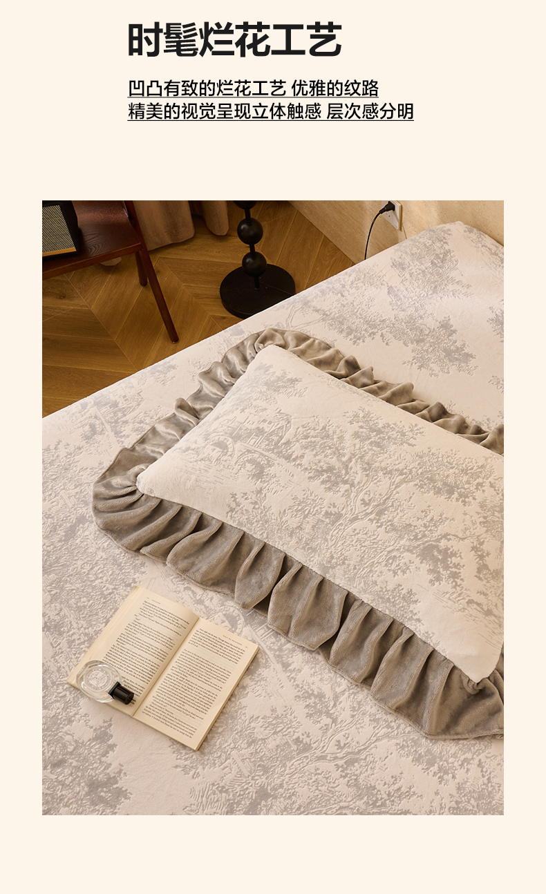早晨家纺 2025新款高克重牛奶绒烂花枕套 林影素韵