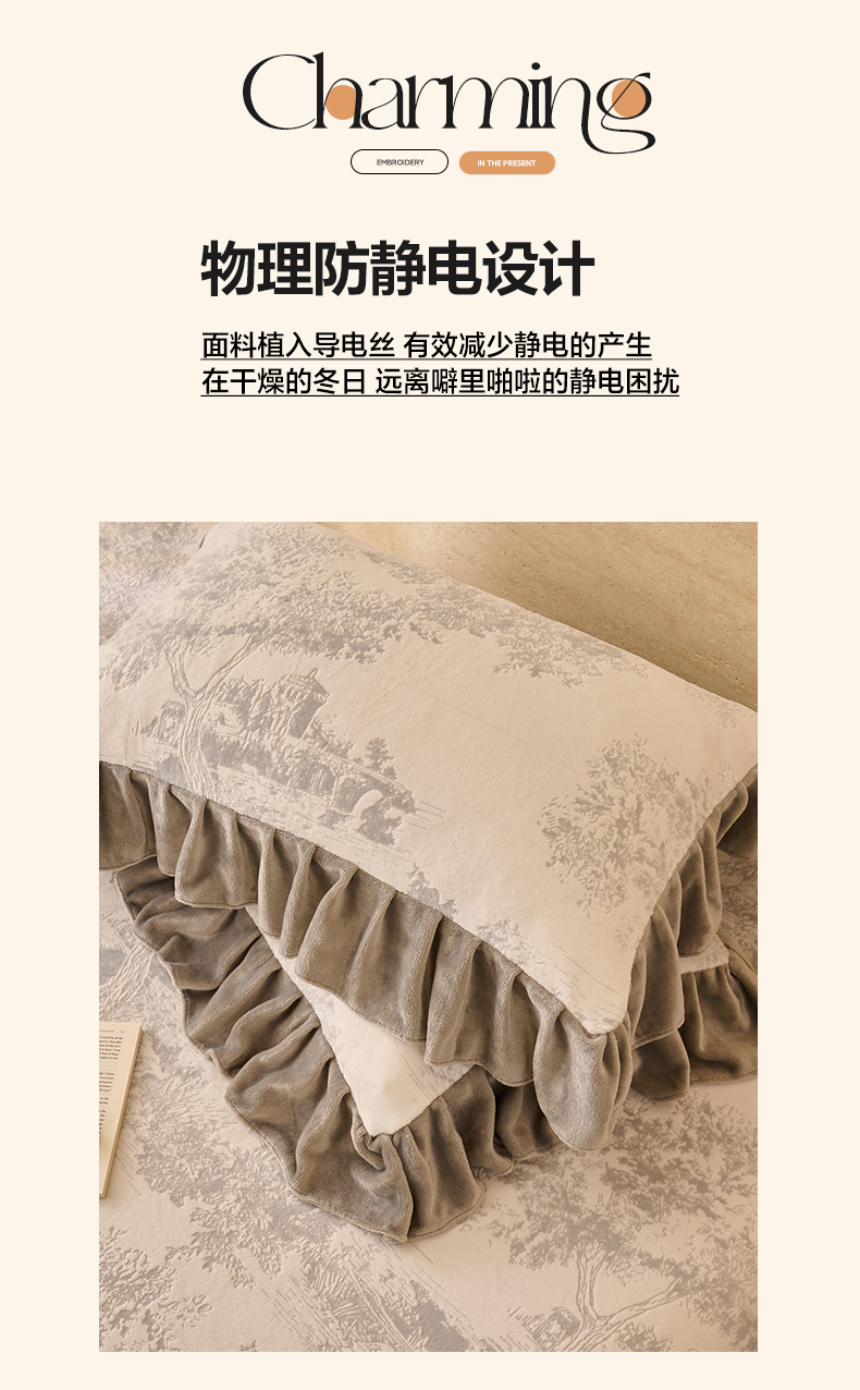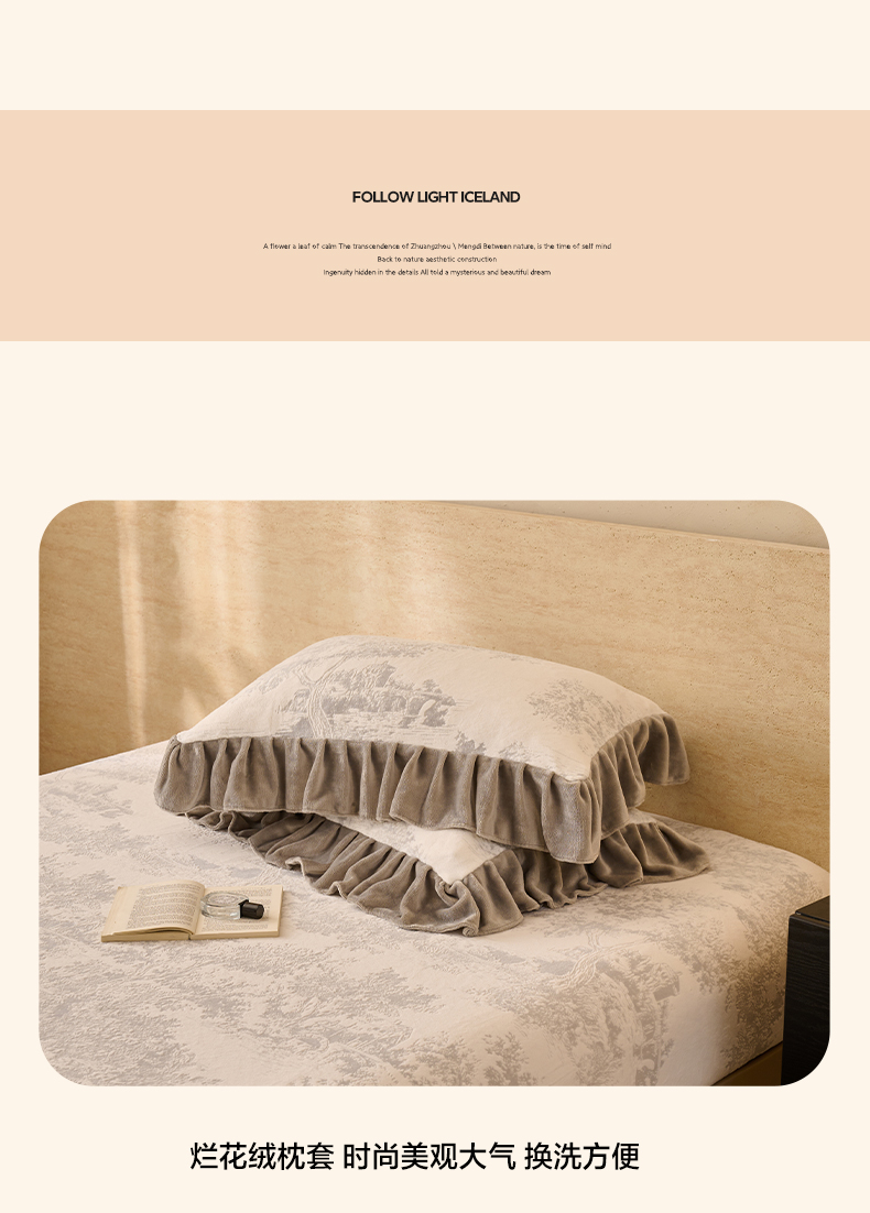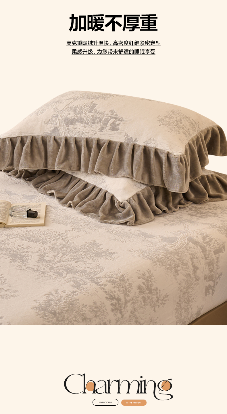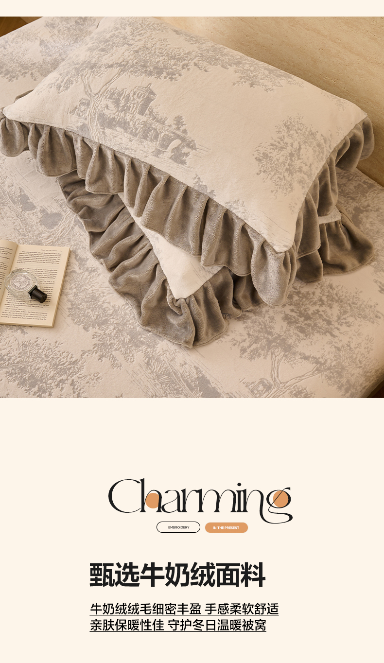 早晨家纺 2025新款高克重牛奶绒烂花枕套 林影素韵
