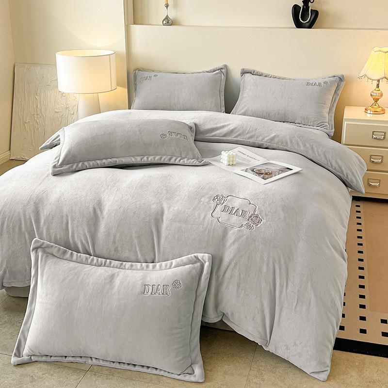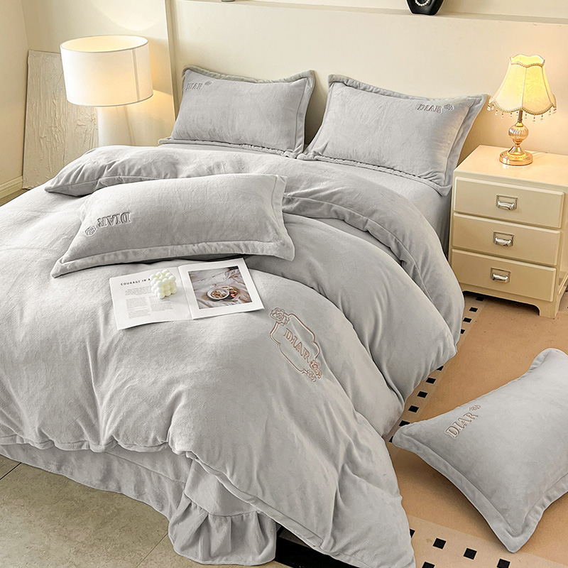 梦莱斯 2025全消光加厚牛奶绒四件套 - 山茶花系列 山茶花-浅灰
