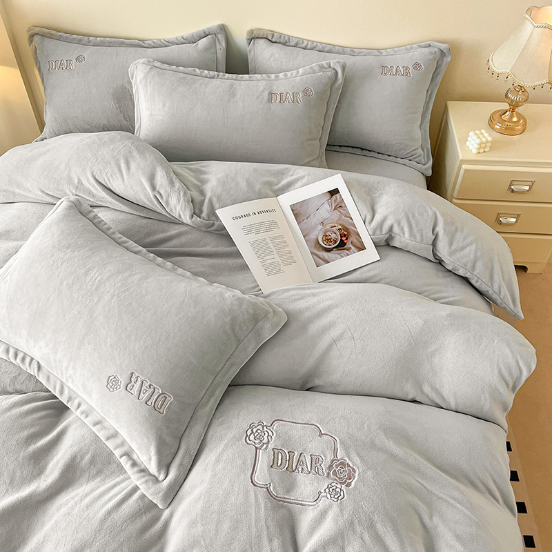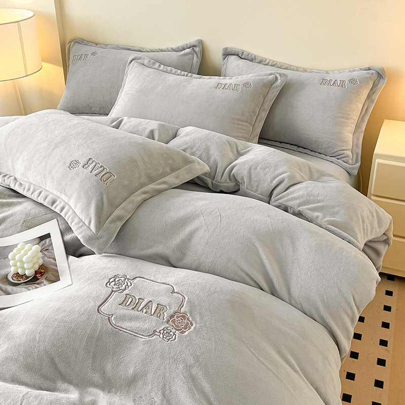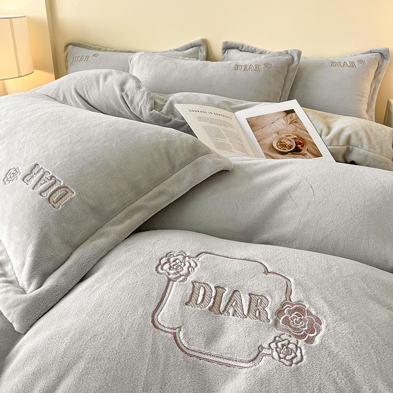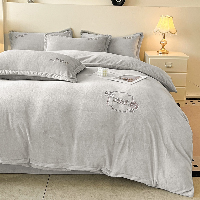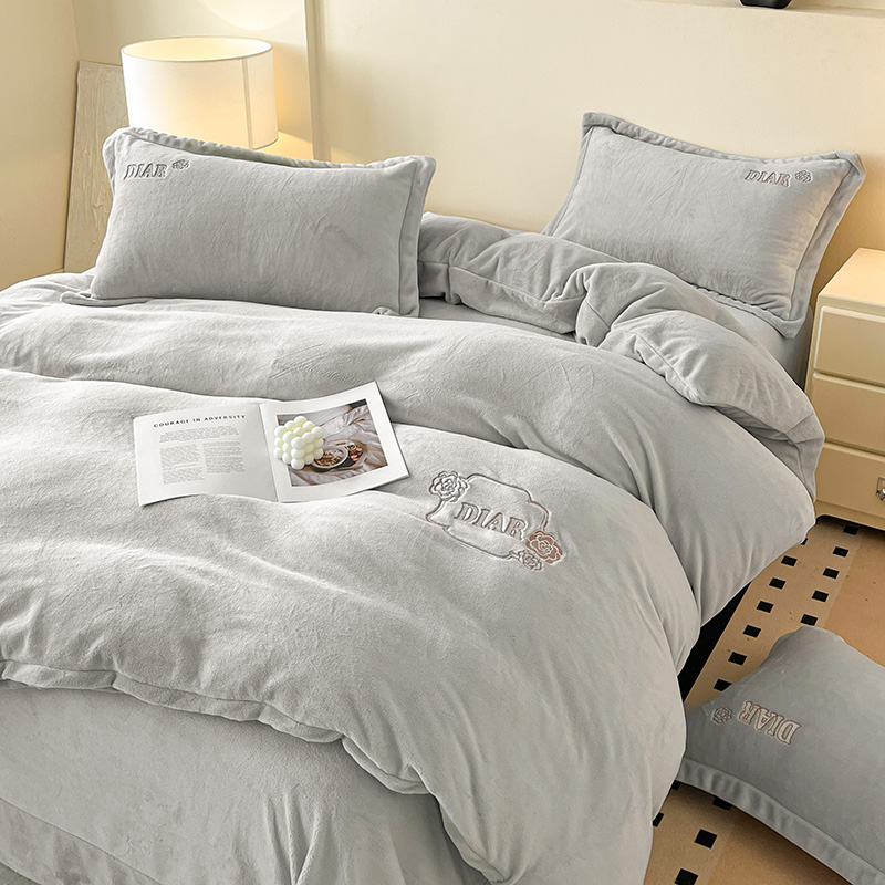 商品名称:梦莱斯 2025全消光加厚牛奶绒四件套 - 山茶花系列 山茶花-浅灰